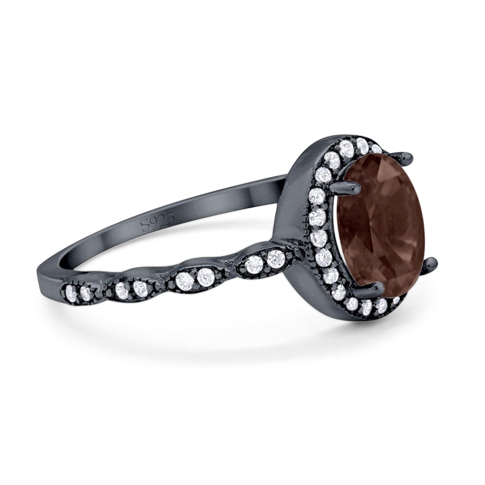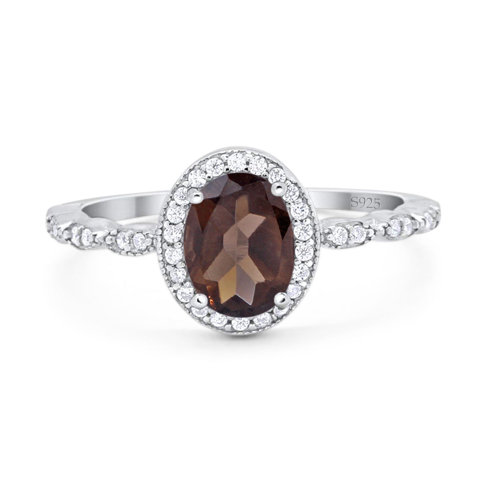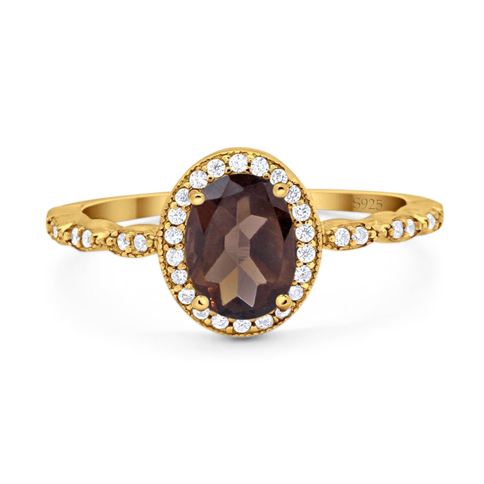 Art Deco Ring Oval Natural Chocolate Smoky Quartz Wedding Ring 925 Sterling Silver