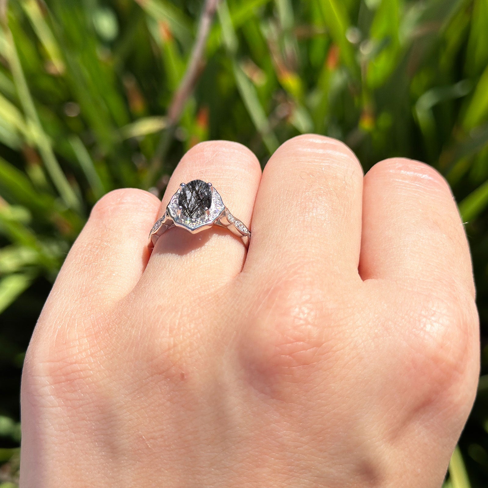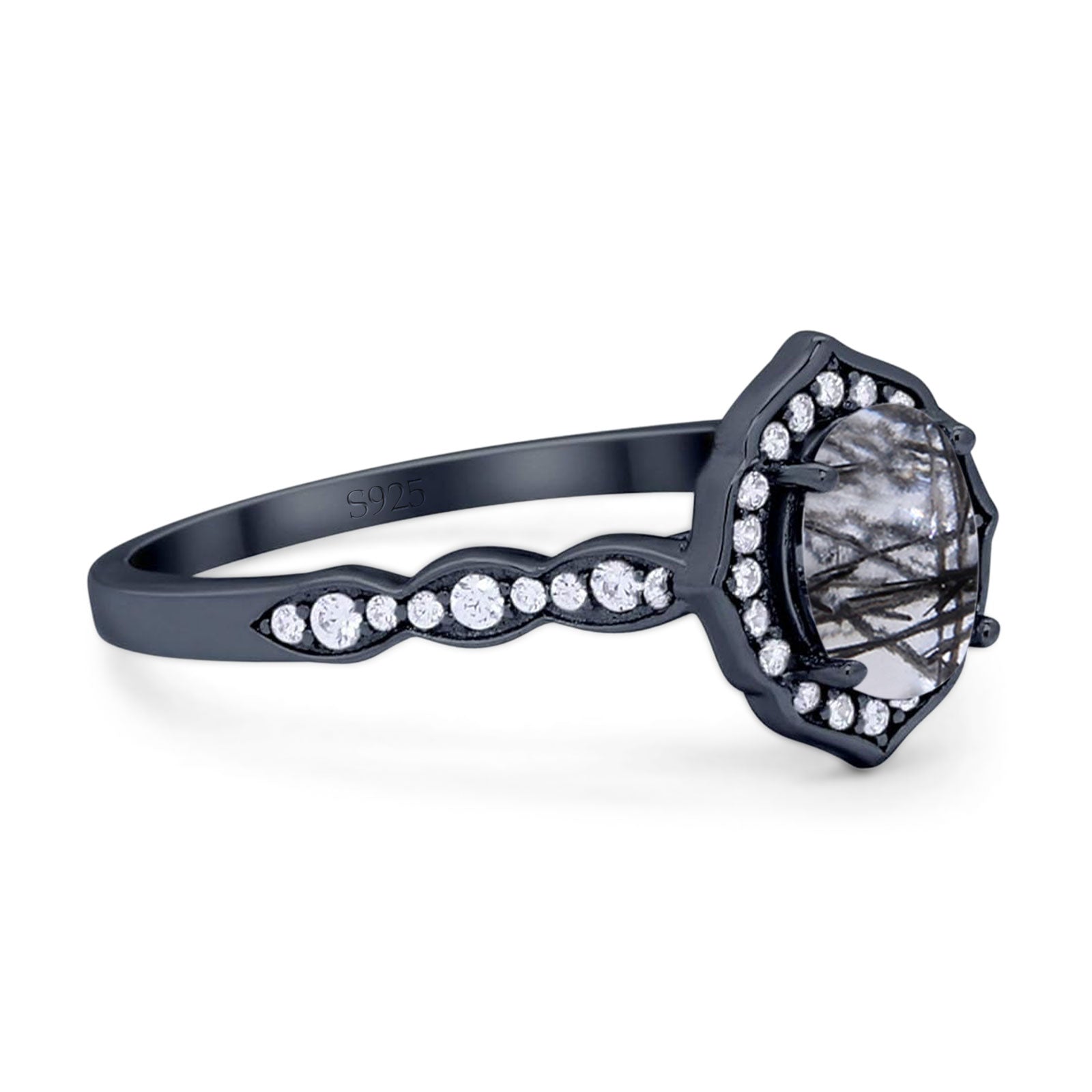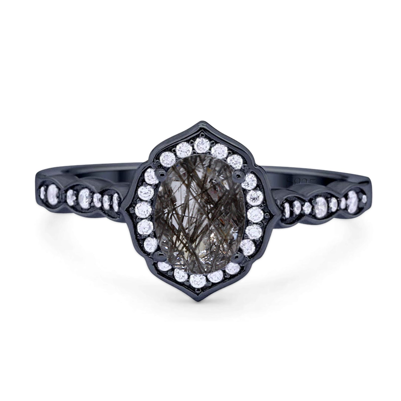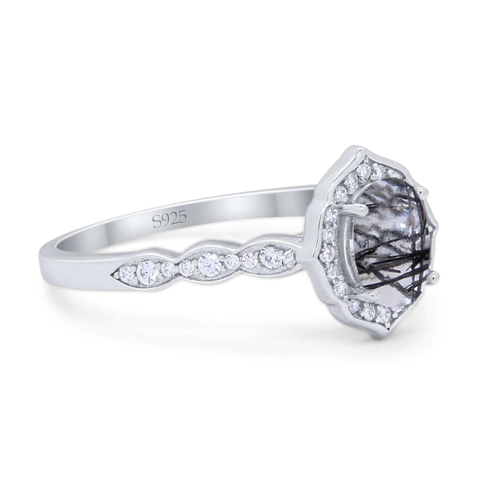Natural Rutilated Quartz Black Tone Silver