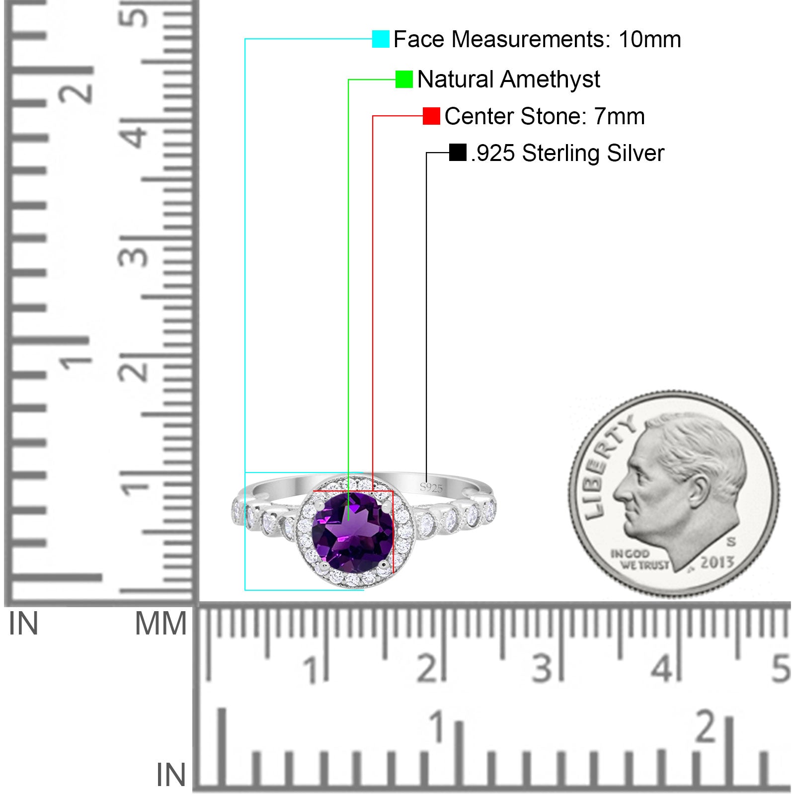 Center Stone Measurements: 7mm(0.27").