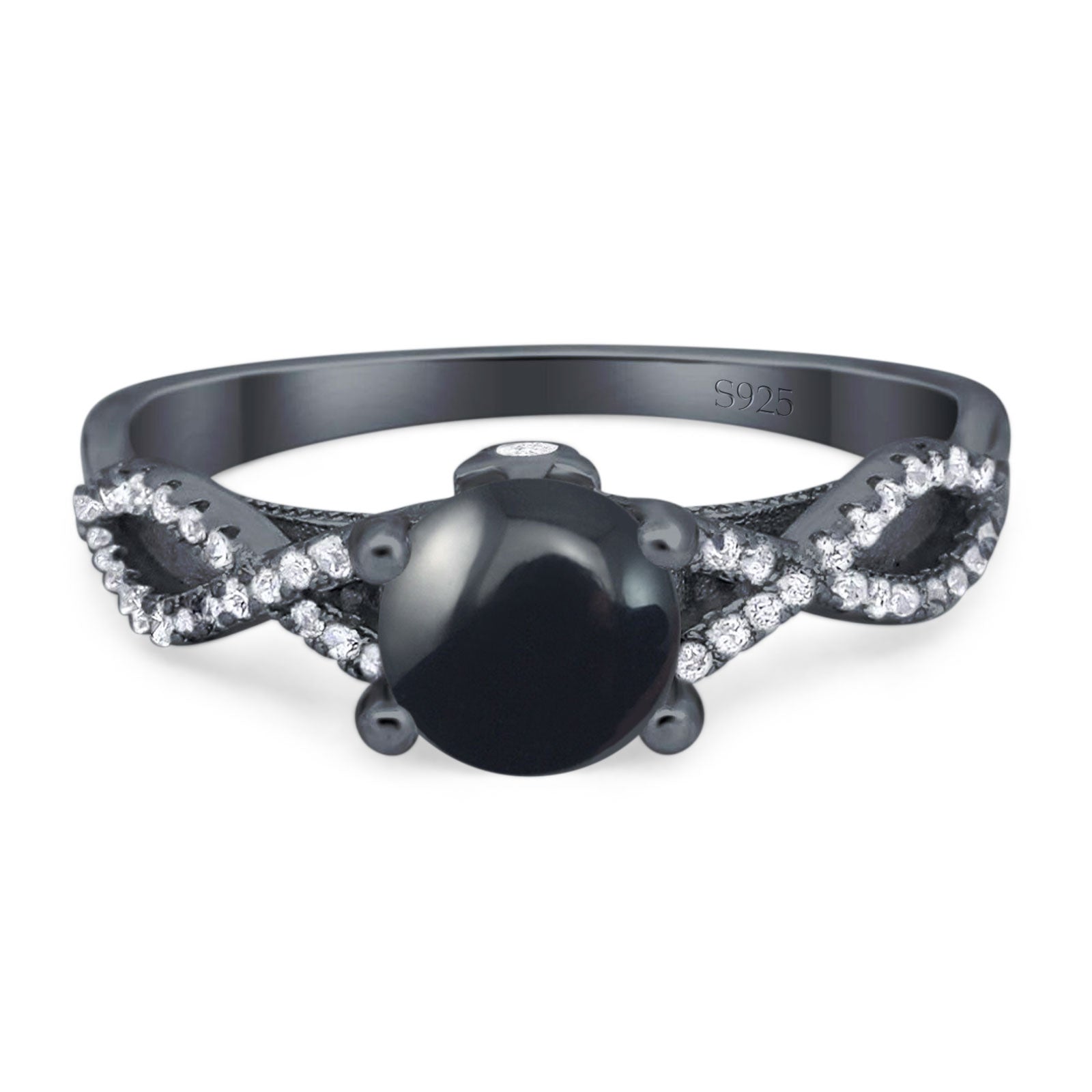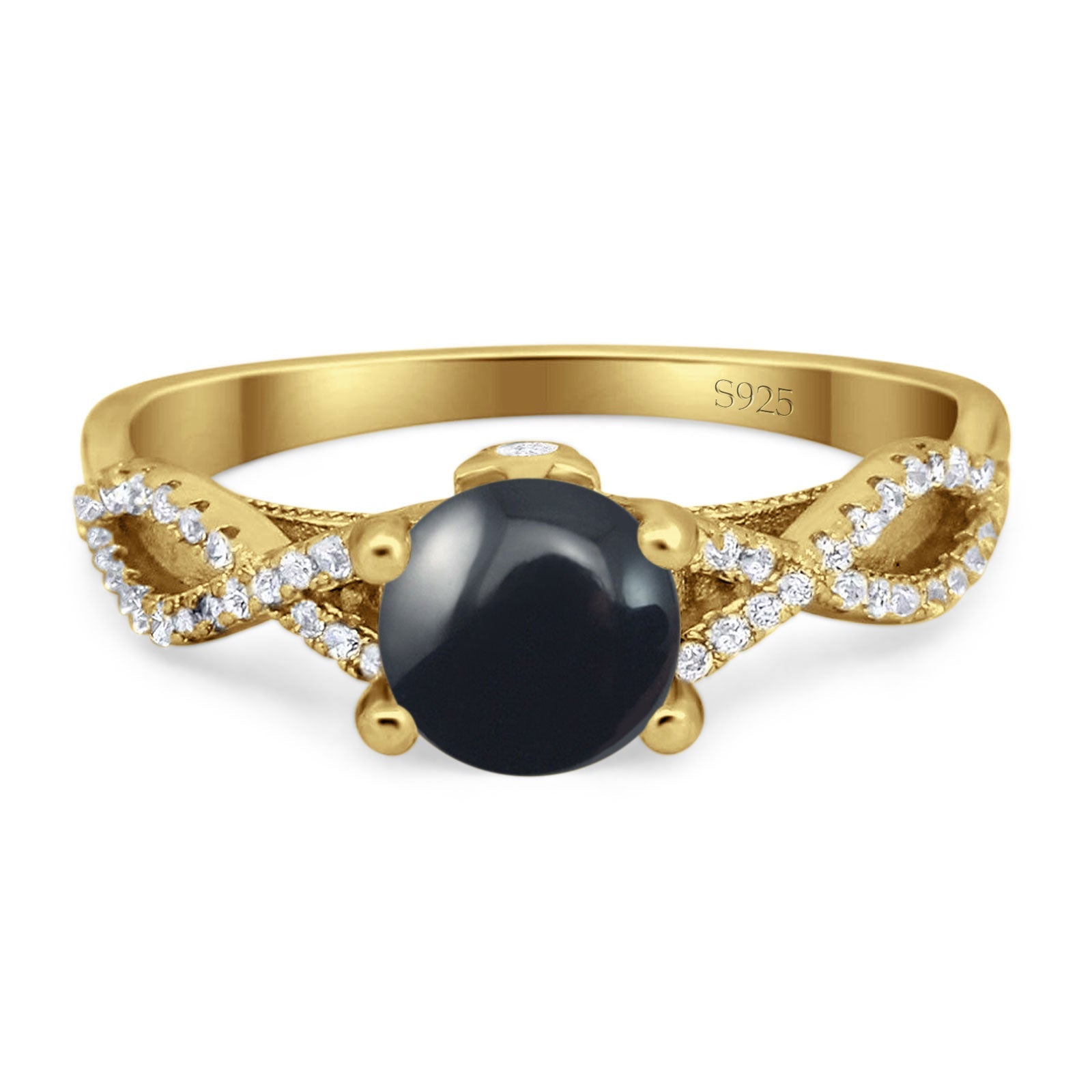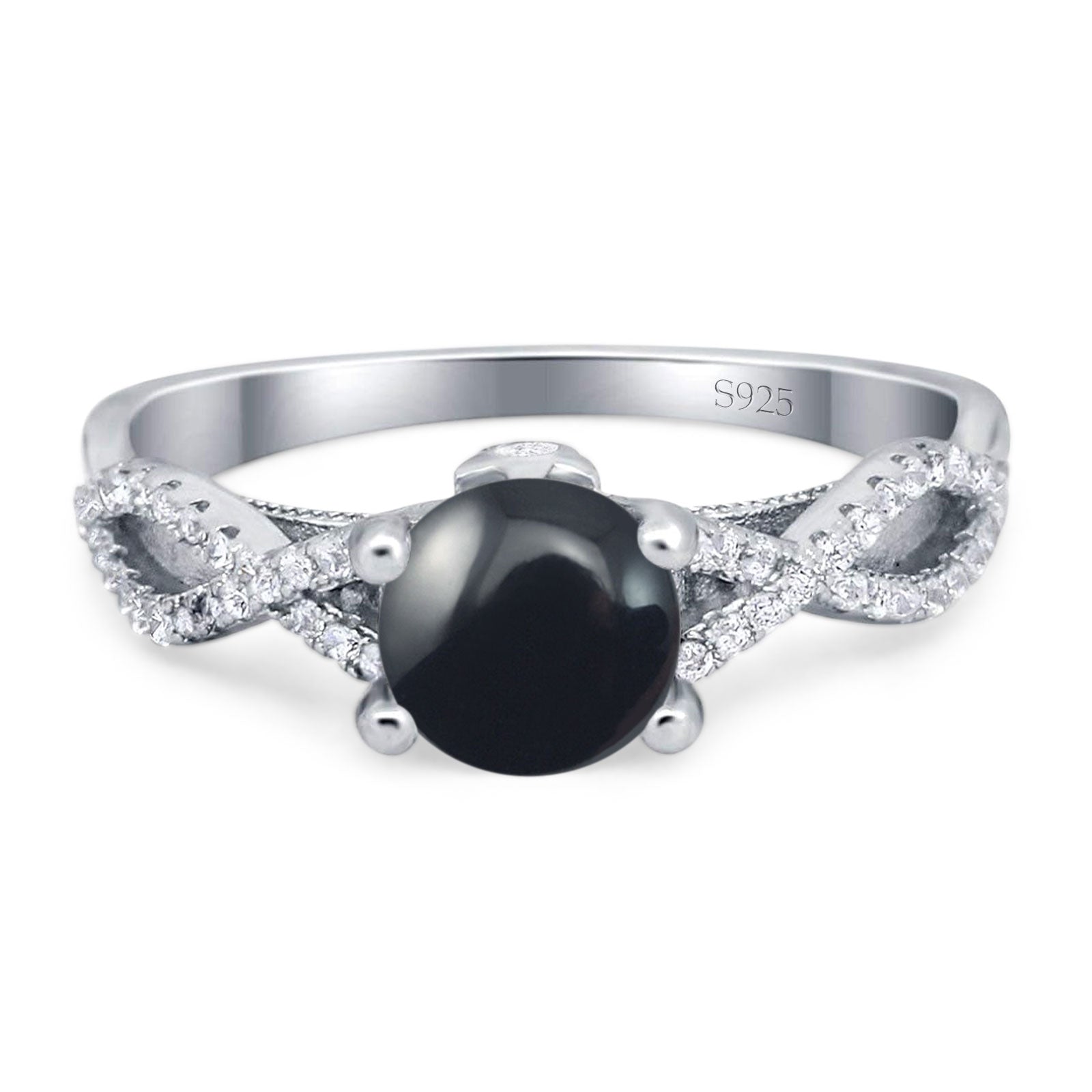 Art Deco Ring Round Natural Black Onyx Split Shank Ring 925 Sterling Silver
