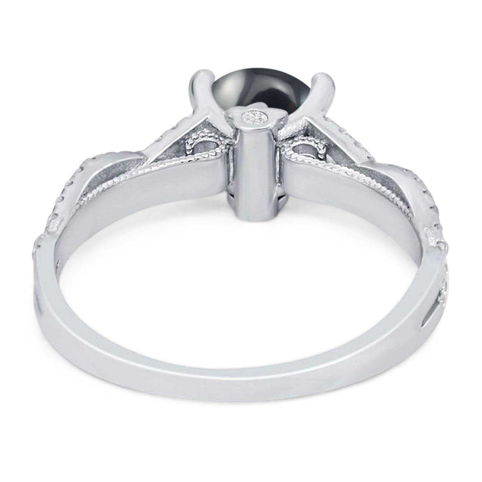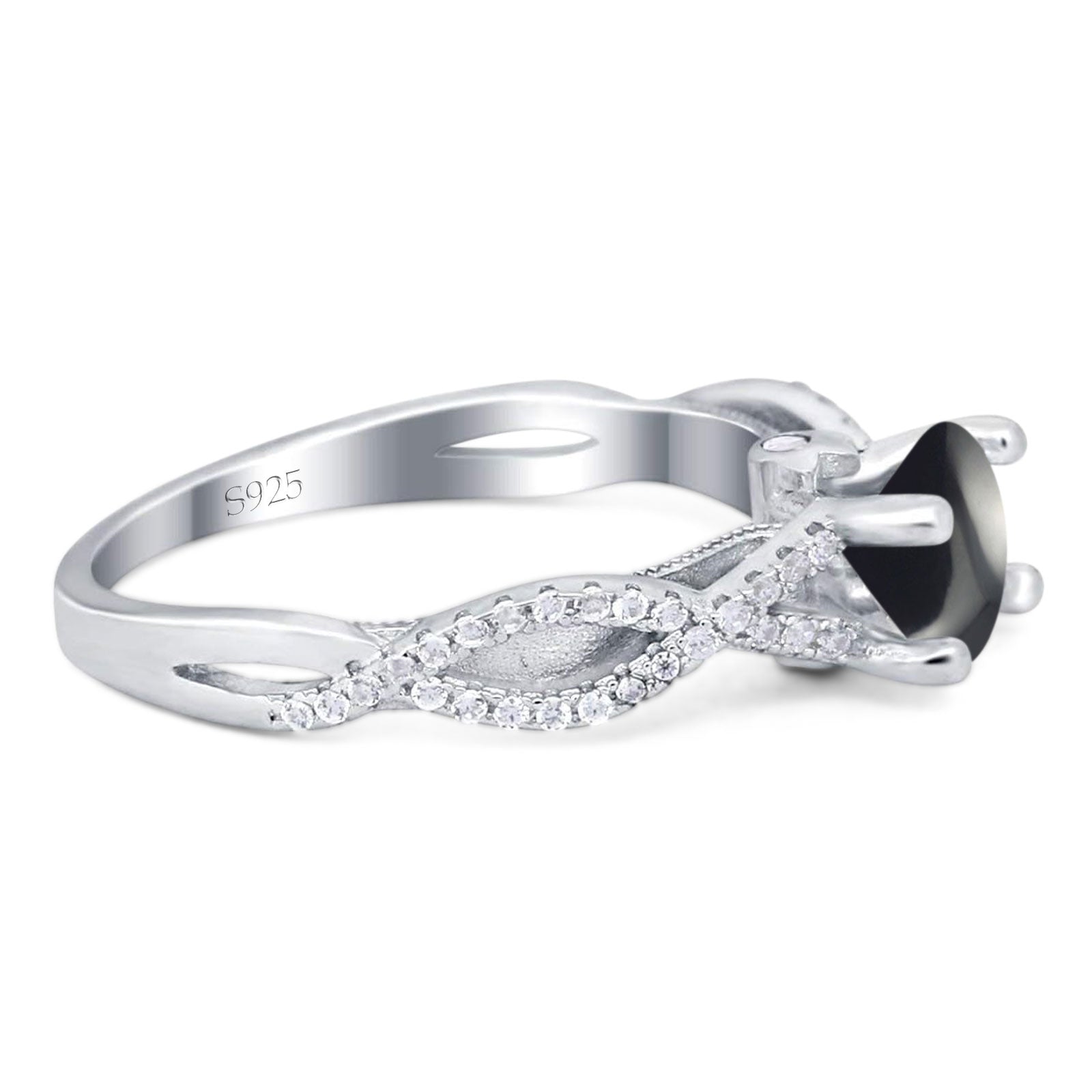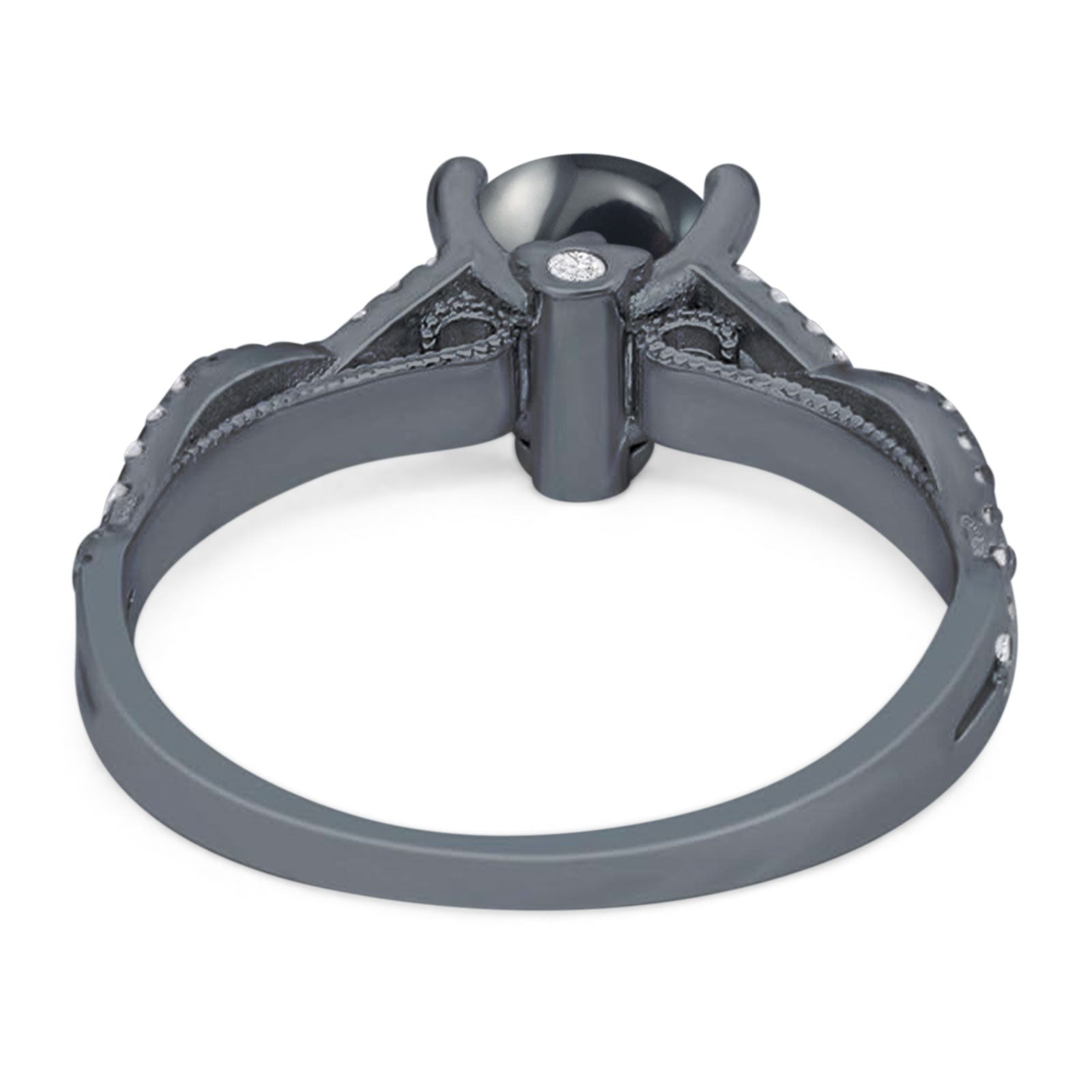 Art Deco Ring Round Natural Black Onyx Split Shank Ring 925 Sterling Silver