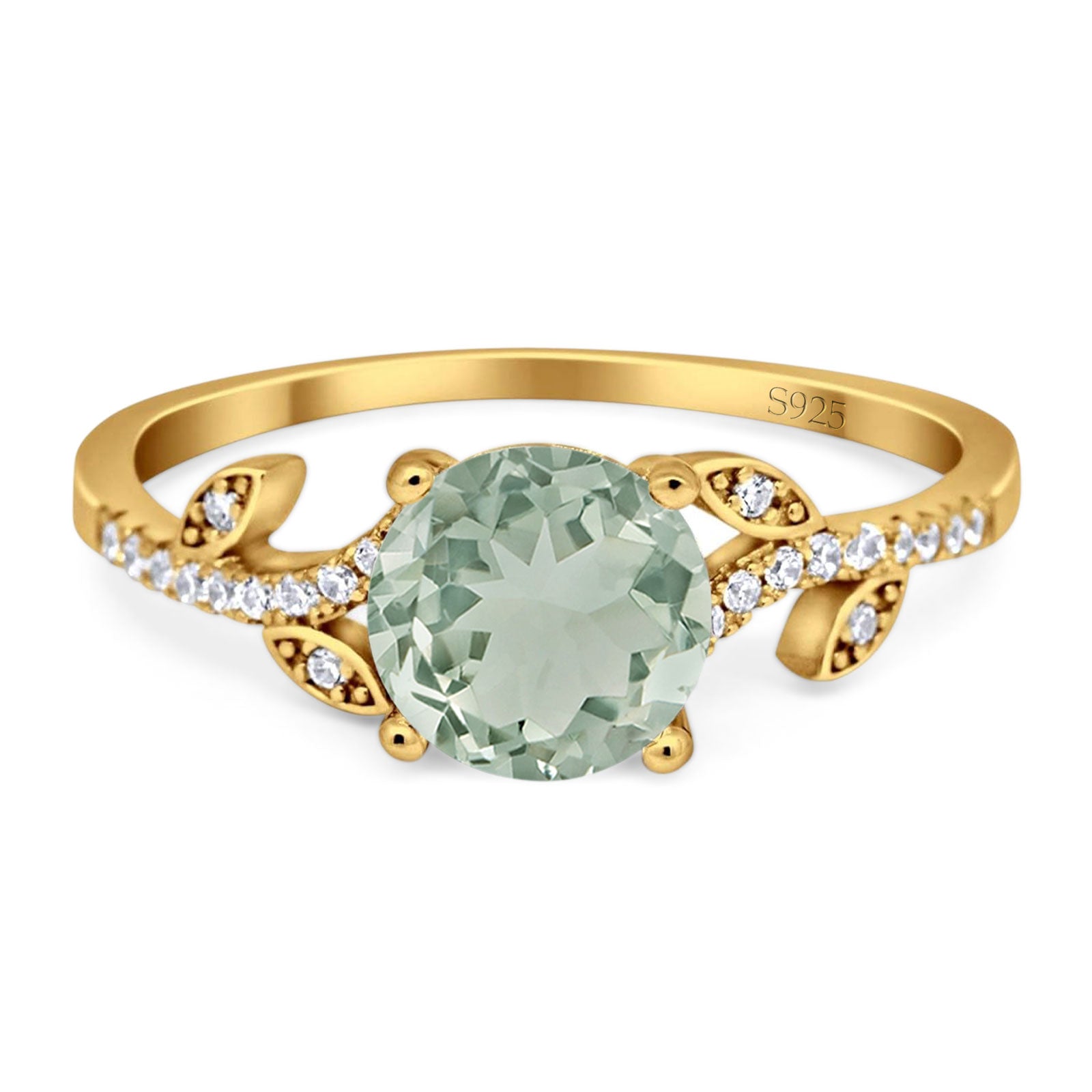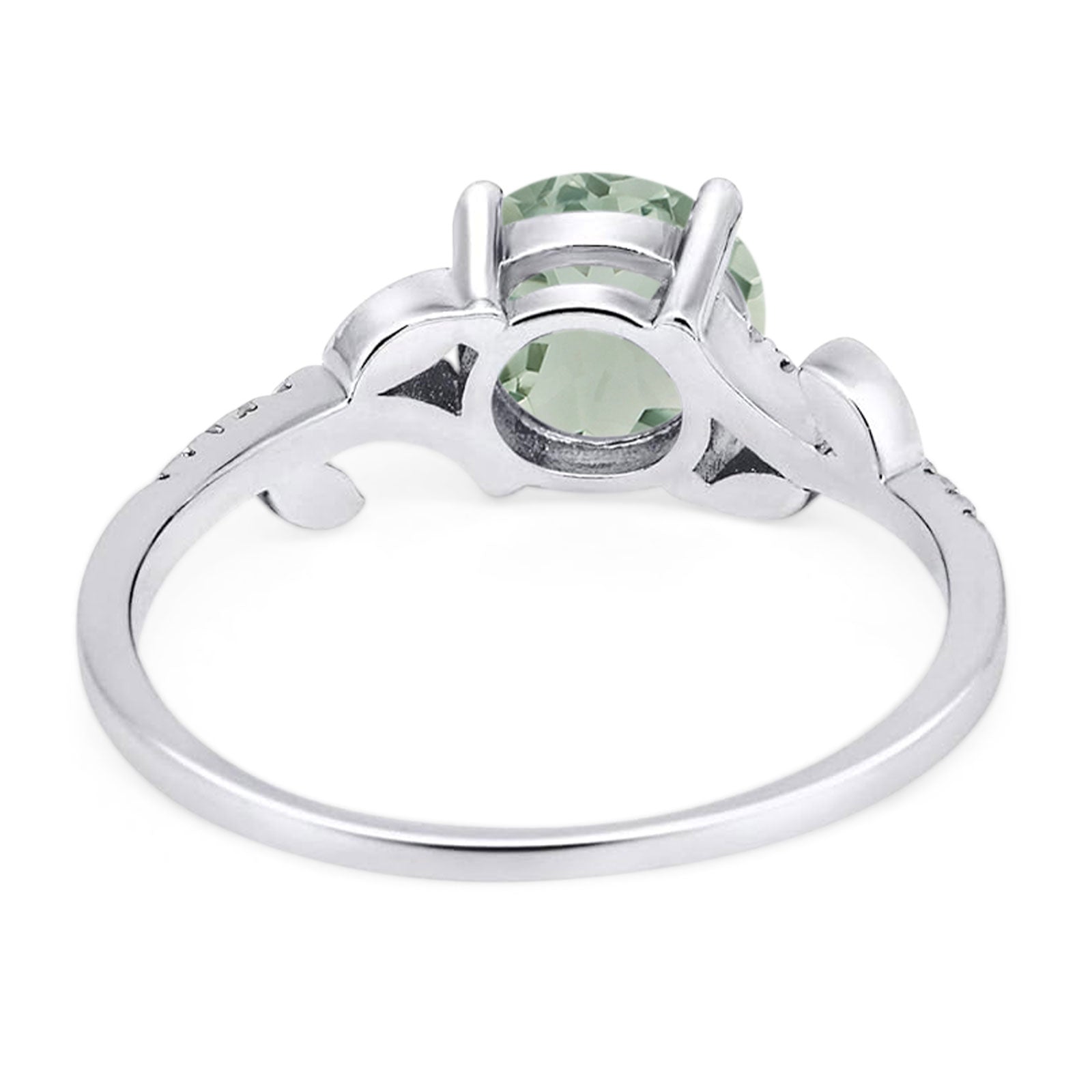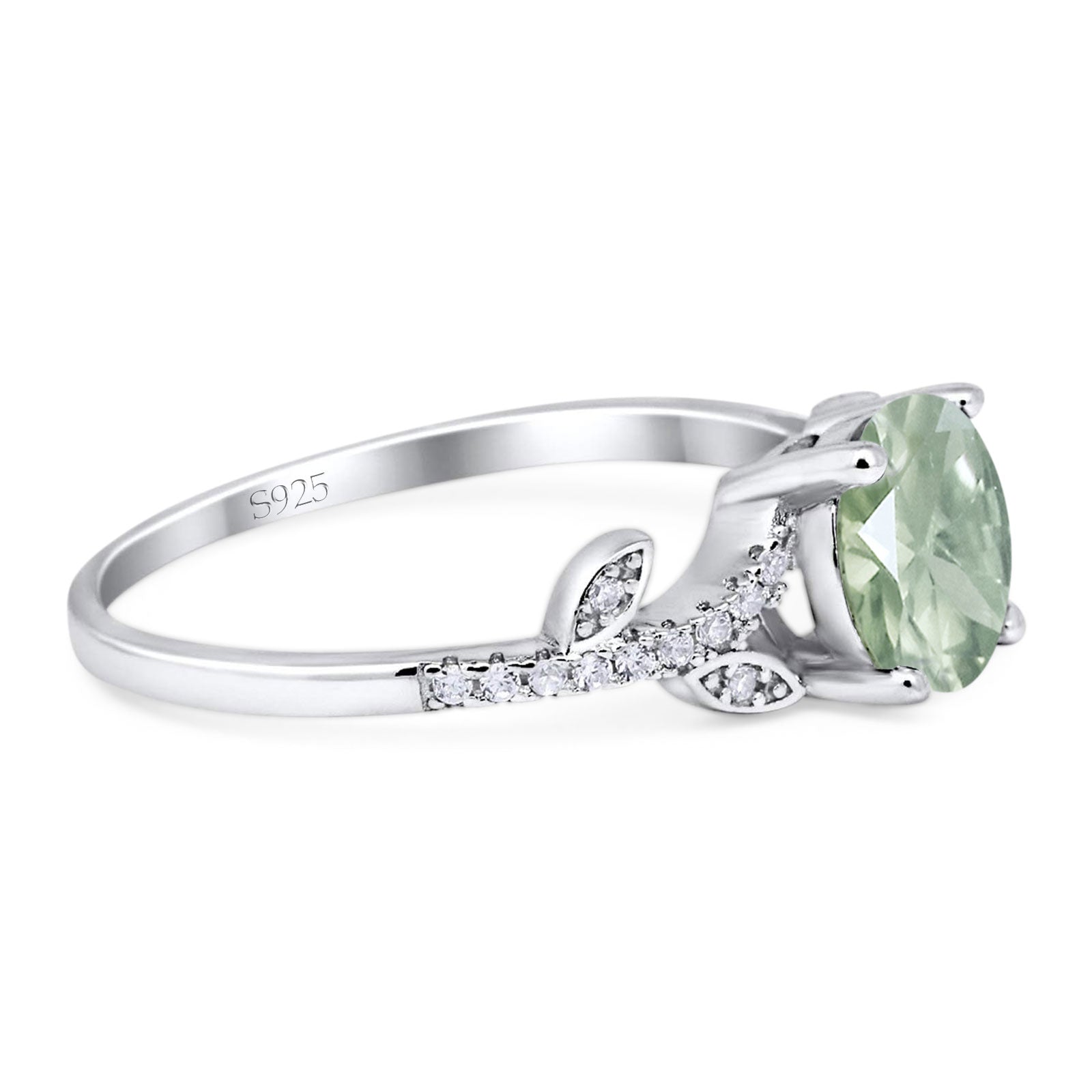 Art Deco Ring Round Natural Green Amethyst Prasiolite Leaf Style Ring 925 Sterling Silver