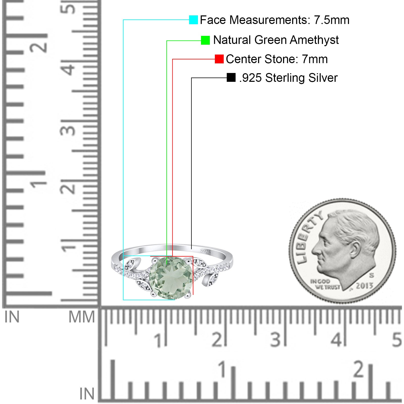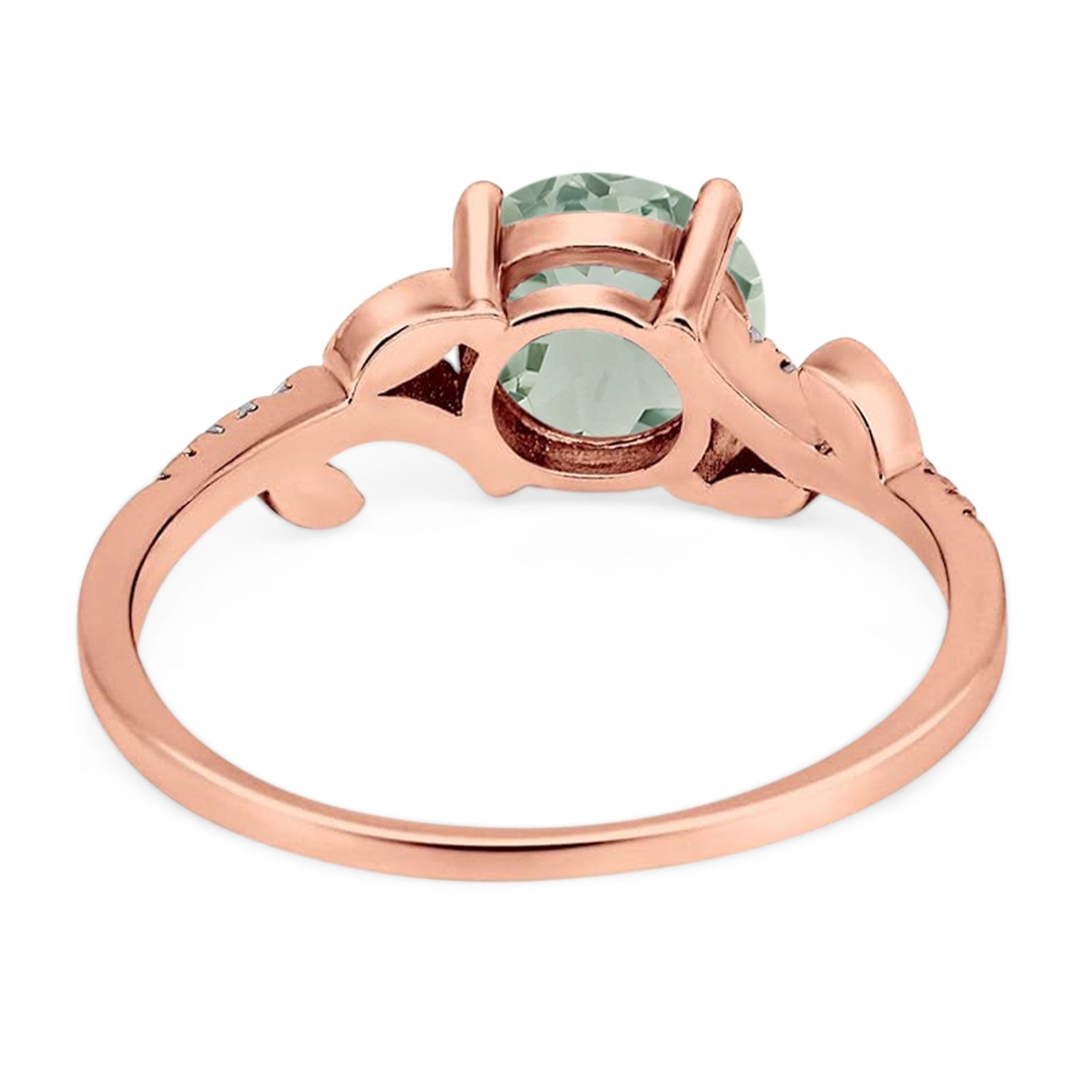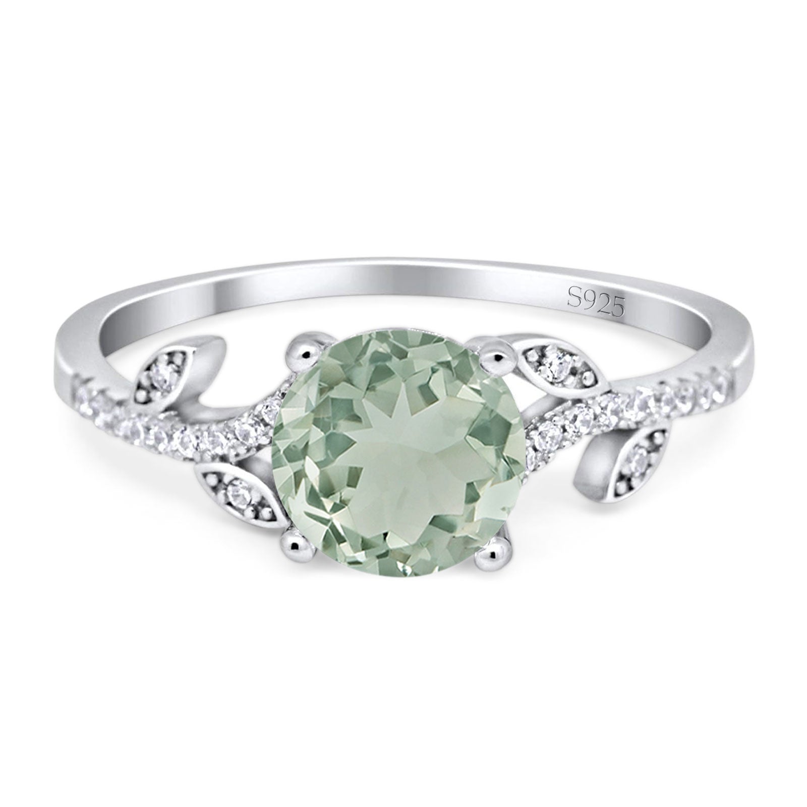 Art Deco Ring Round Natural Green Amethyst Prasiolite Leaf Style Ring 925 Sterling Silver