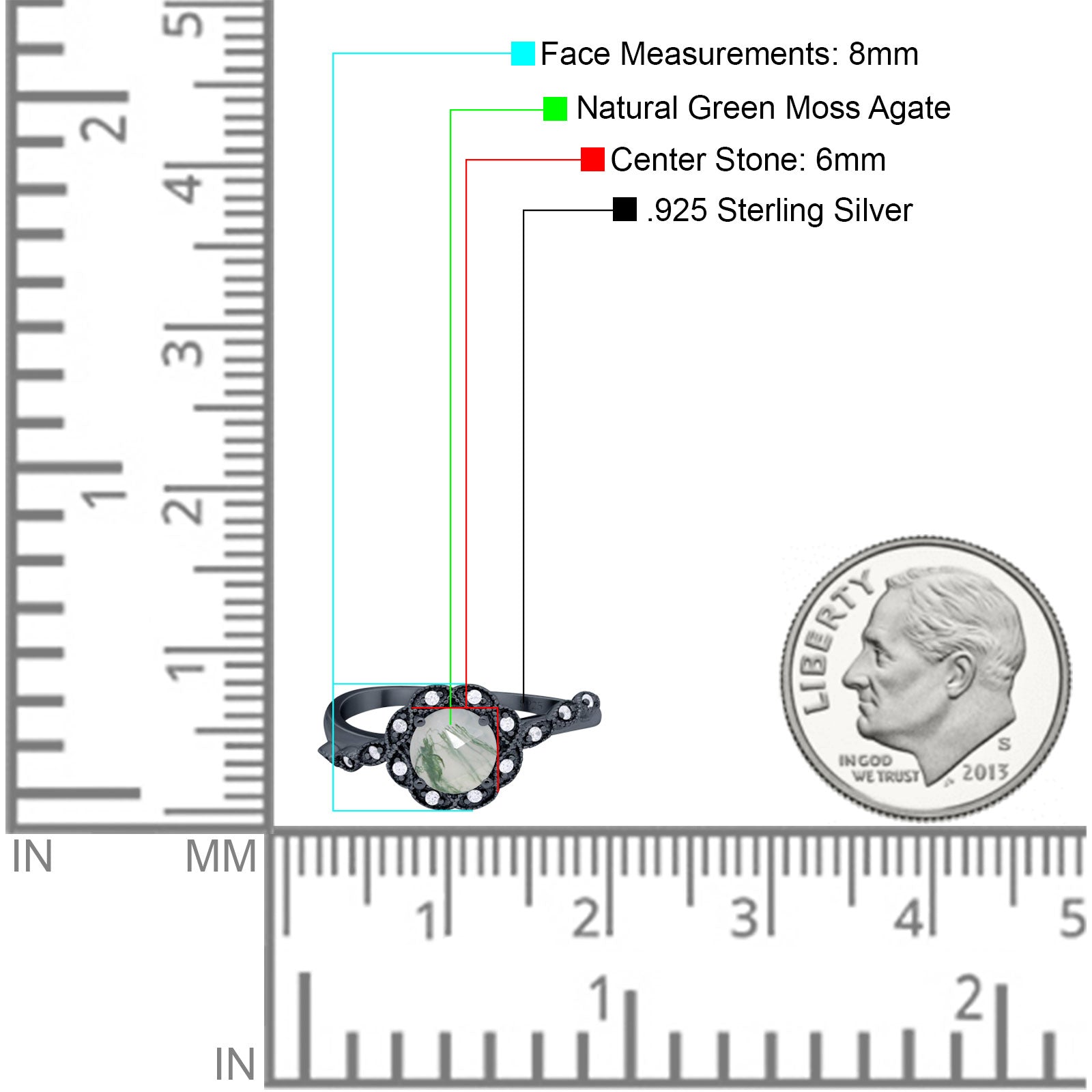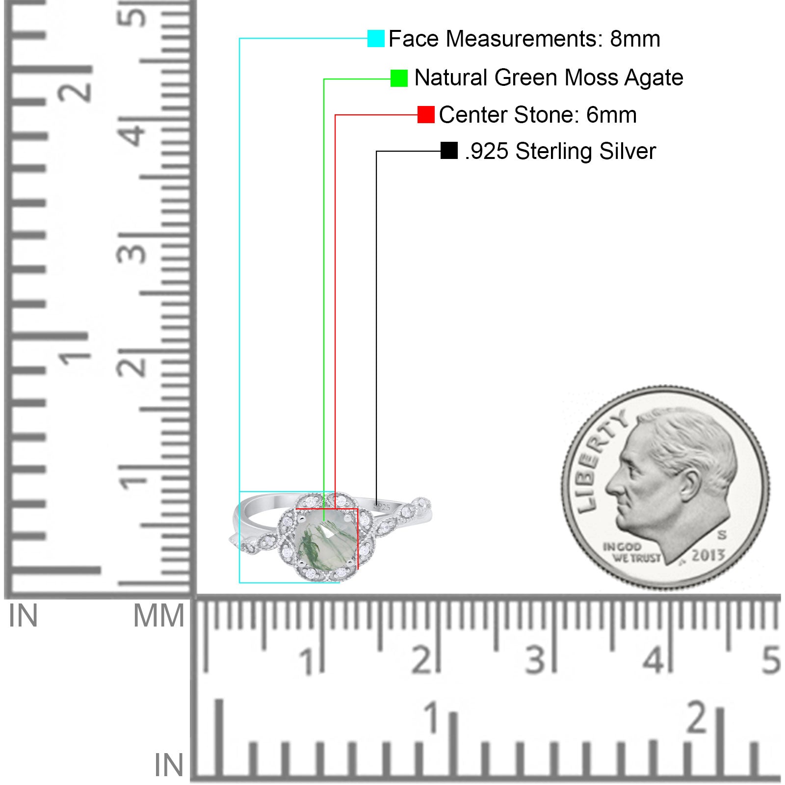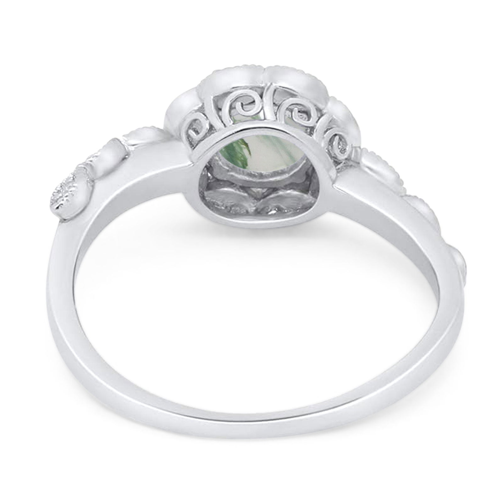 Art Deco Ring Round Natural Green Moss Agate Flower Ring 925 Sterling Silver