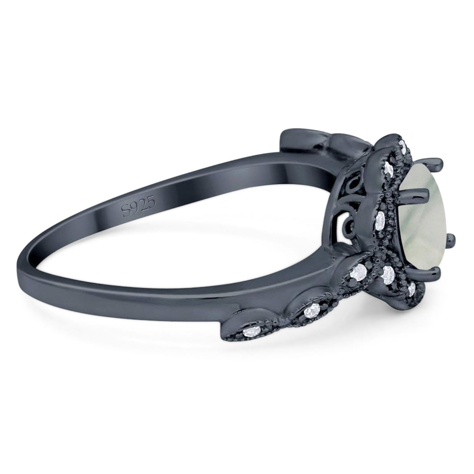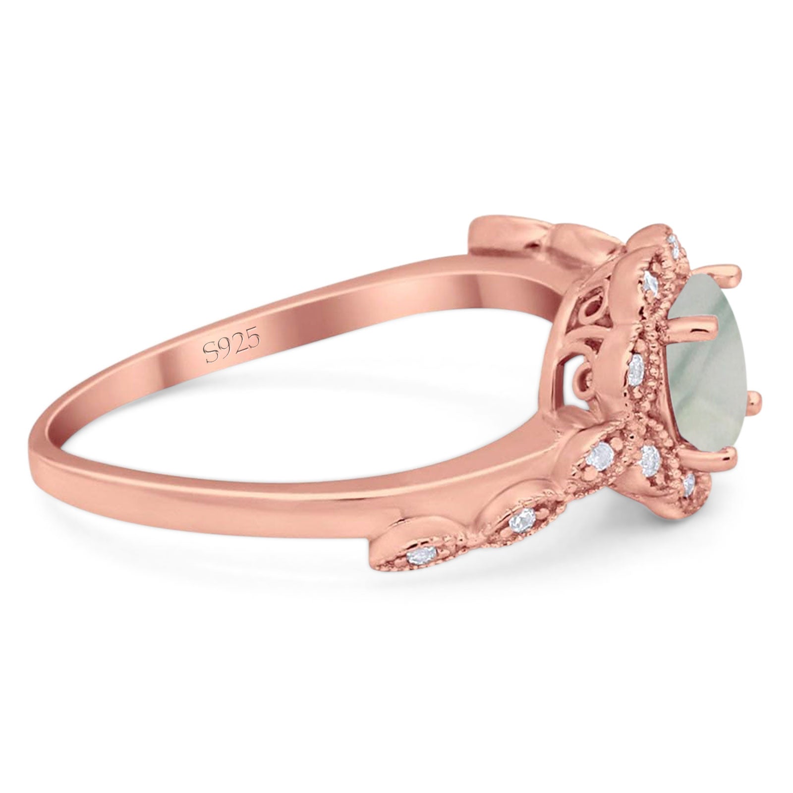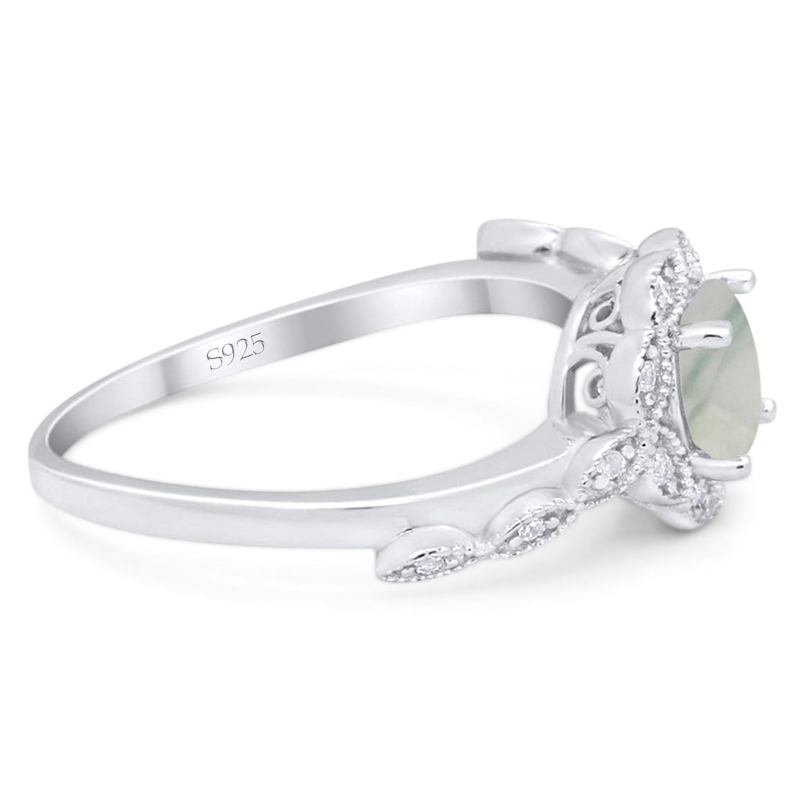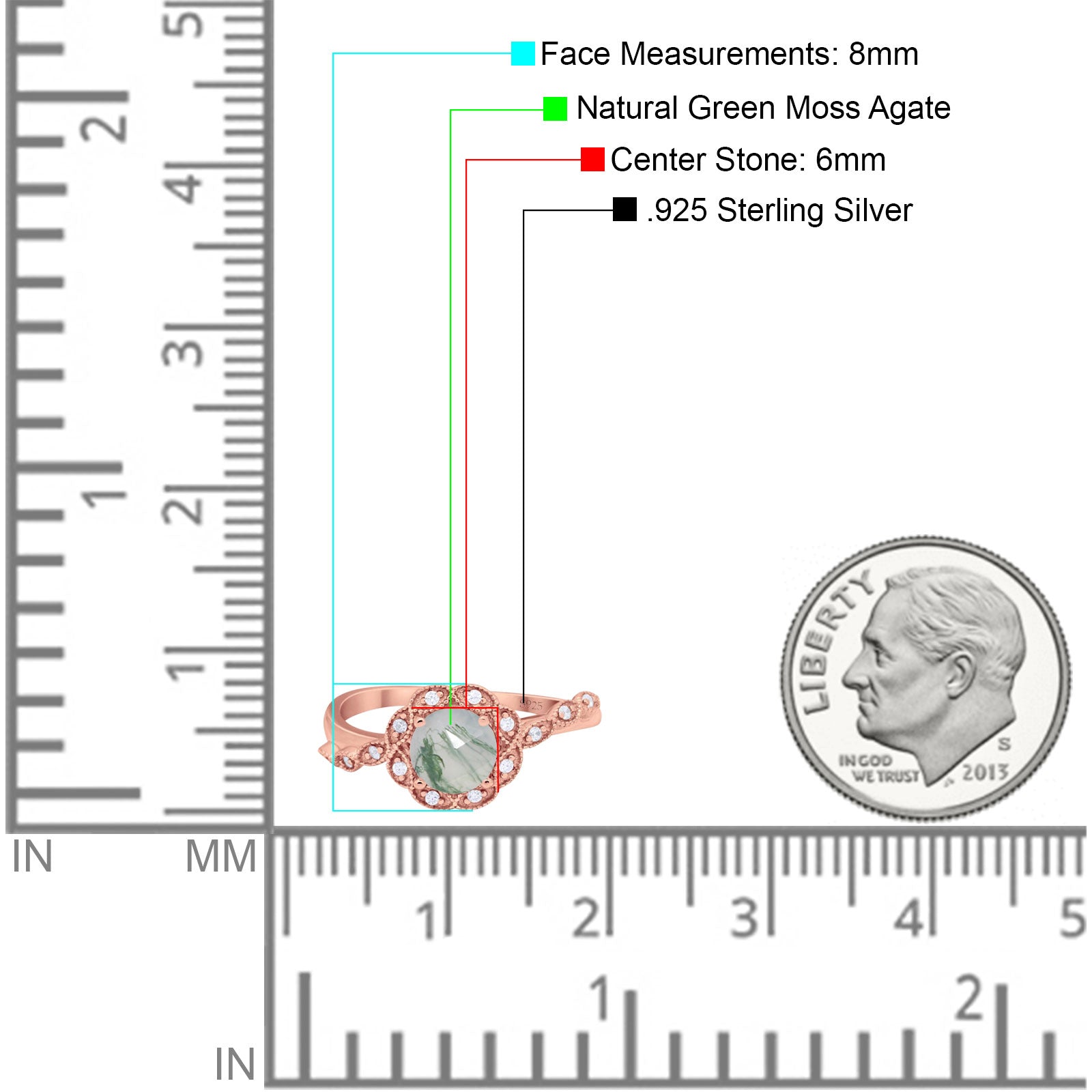 Art Deco Ring Round Natural Green Moss Agate Flower Ring 925 Sterling Silver