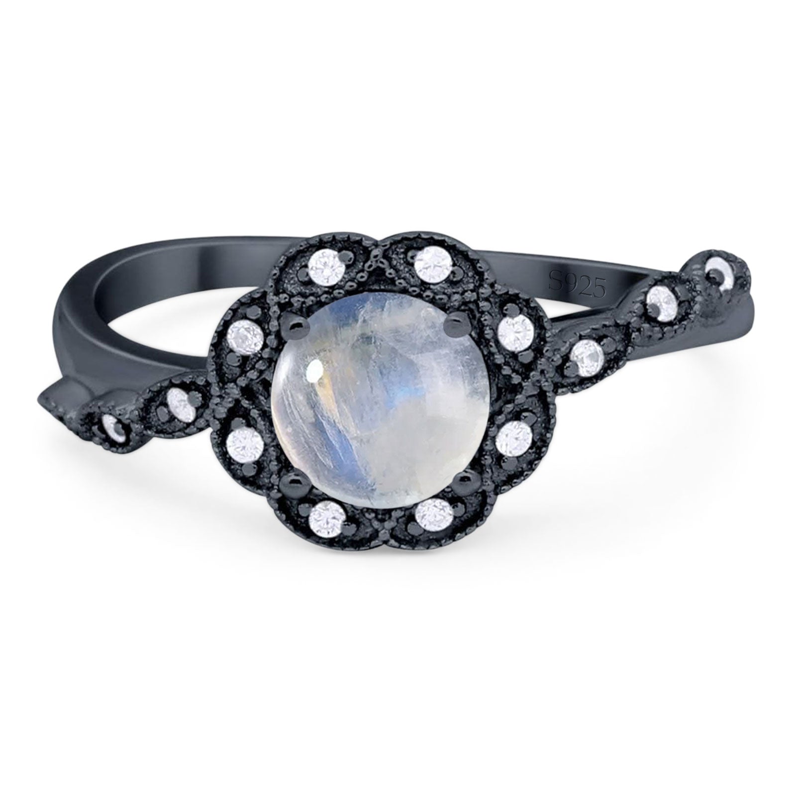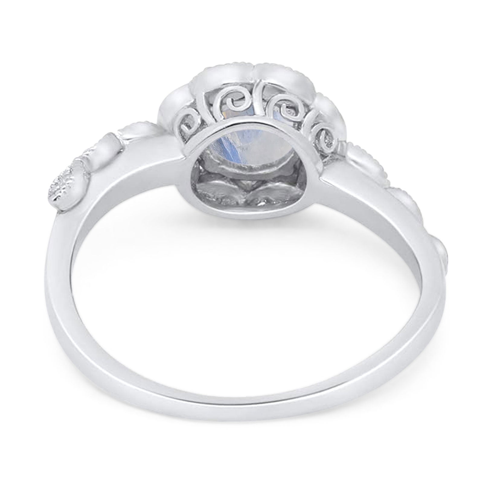 Art Deco Ring Round Natural Moonstone Flower Ring 925 Sterling Silver