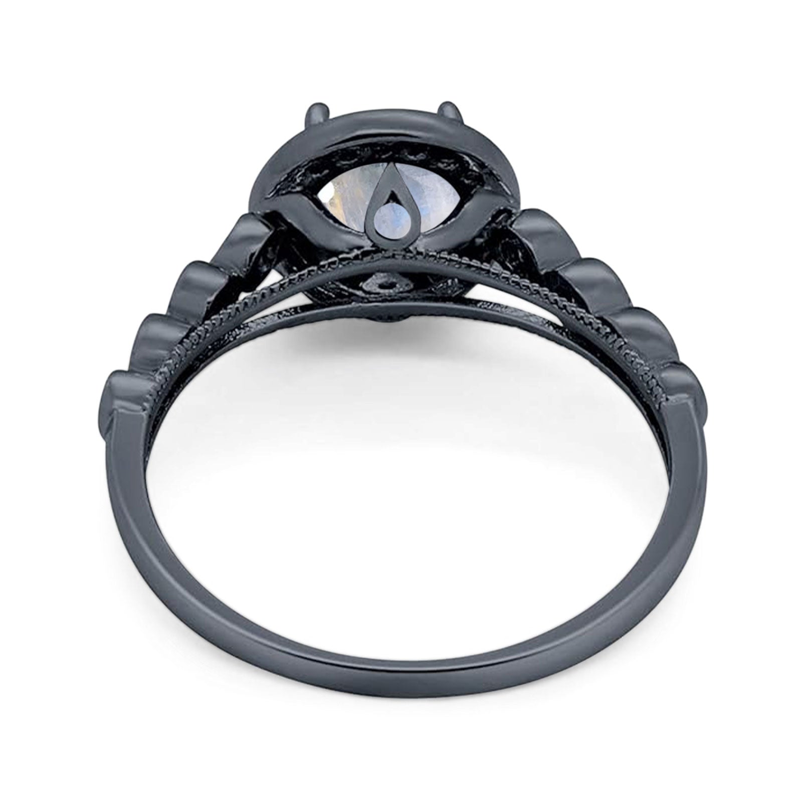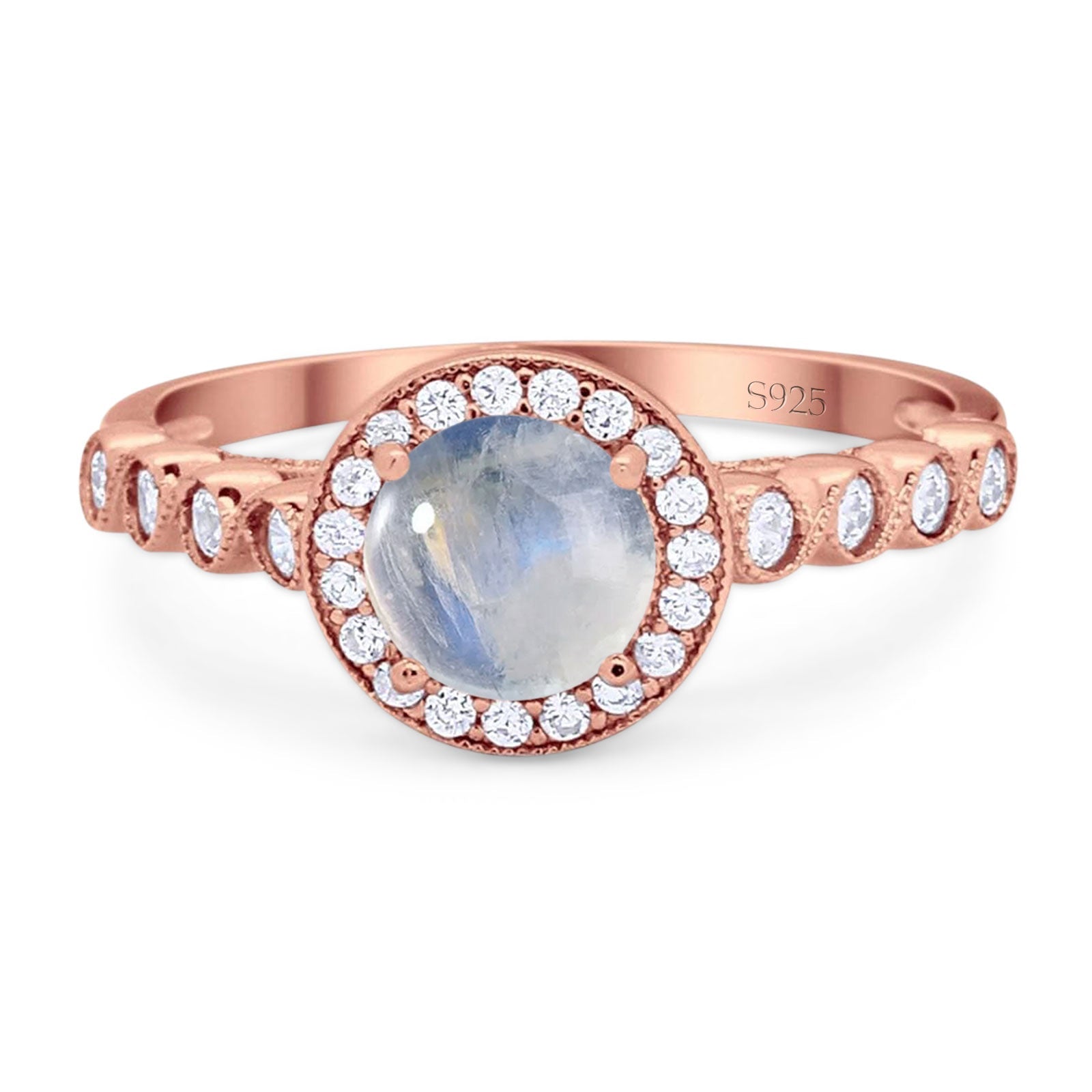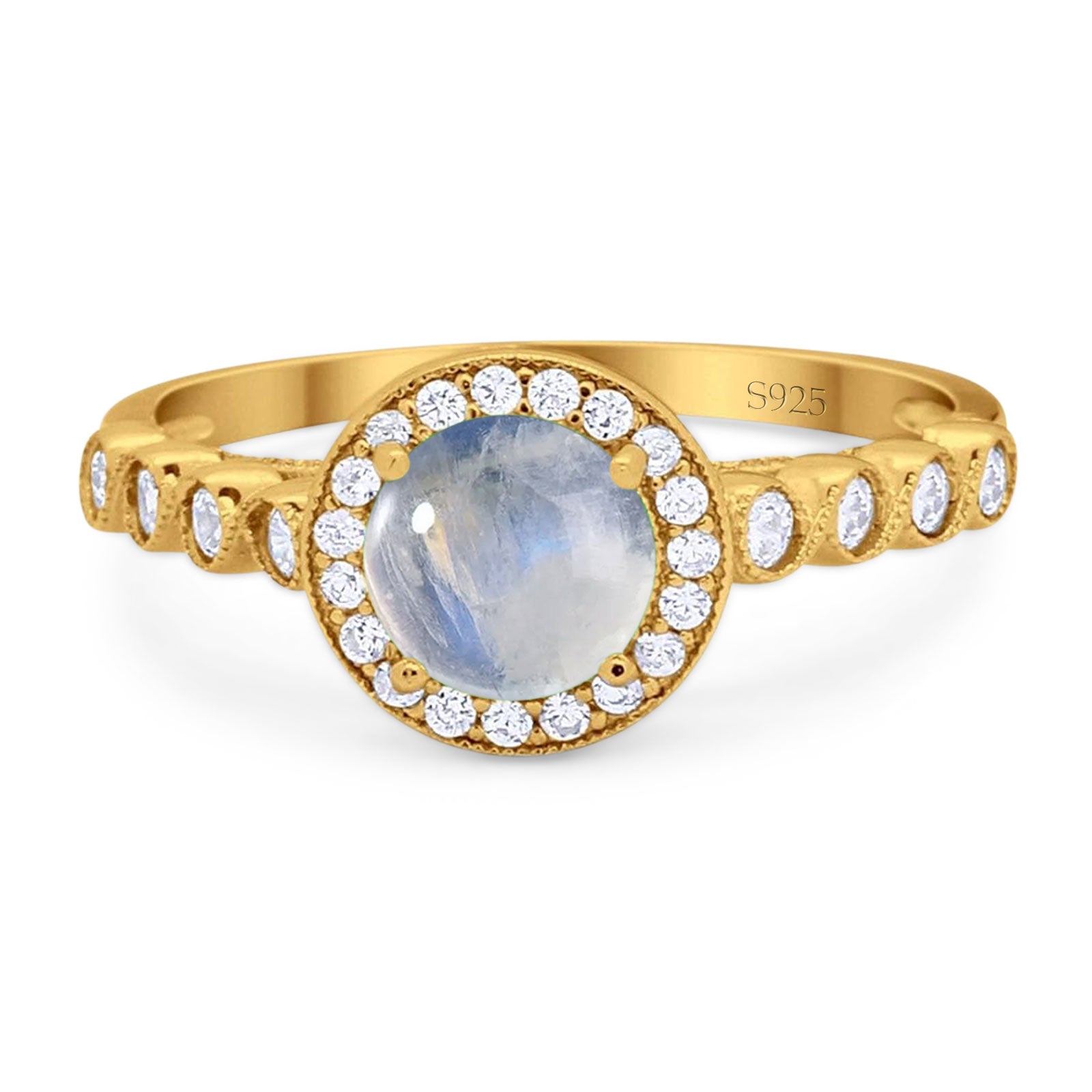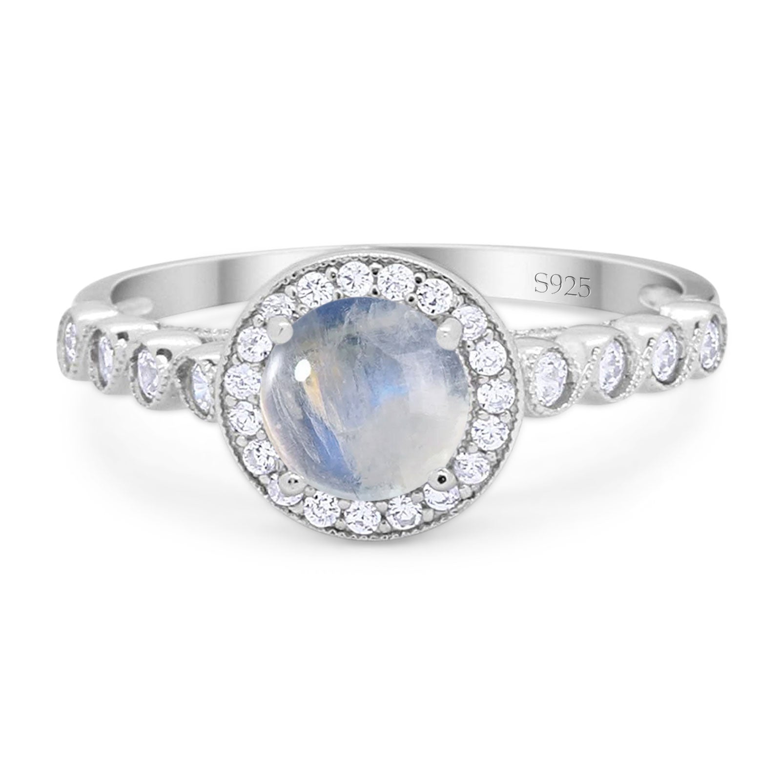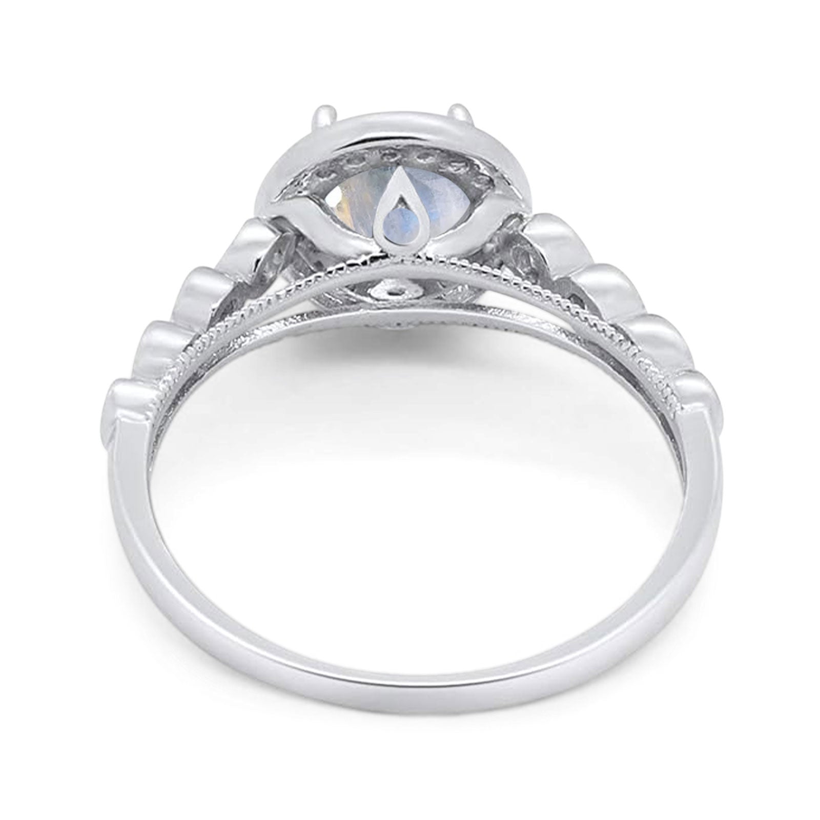Art Deco Ring Round Natural Moonstone Sparkling Ring 925 Sterling Silver