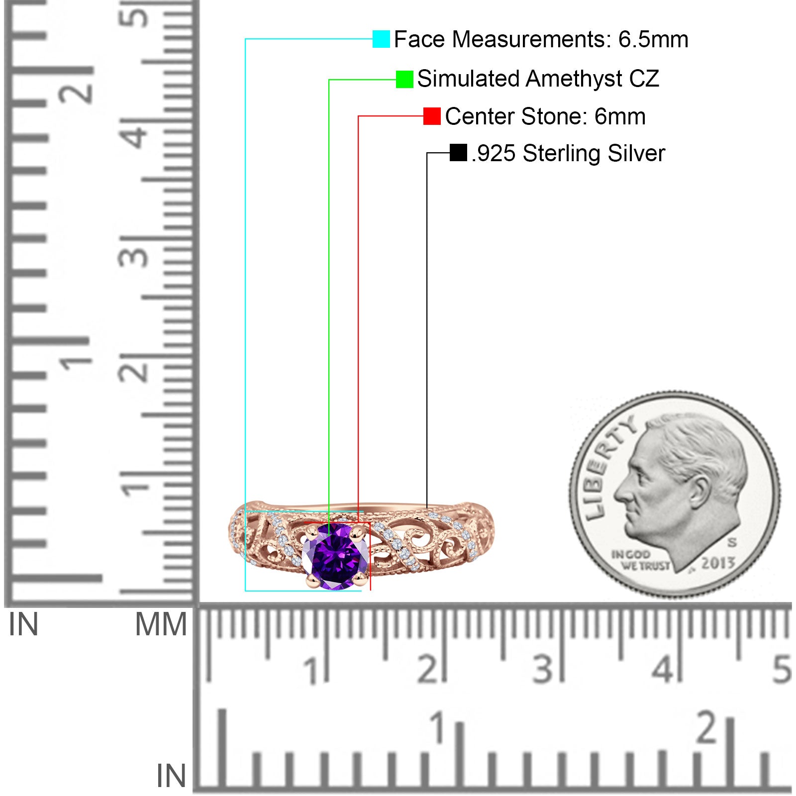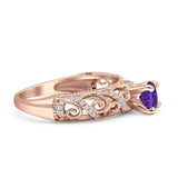 Art Deco Round Amethyst CZ Filigree Ring 925 Sterling Silver