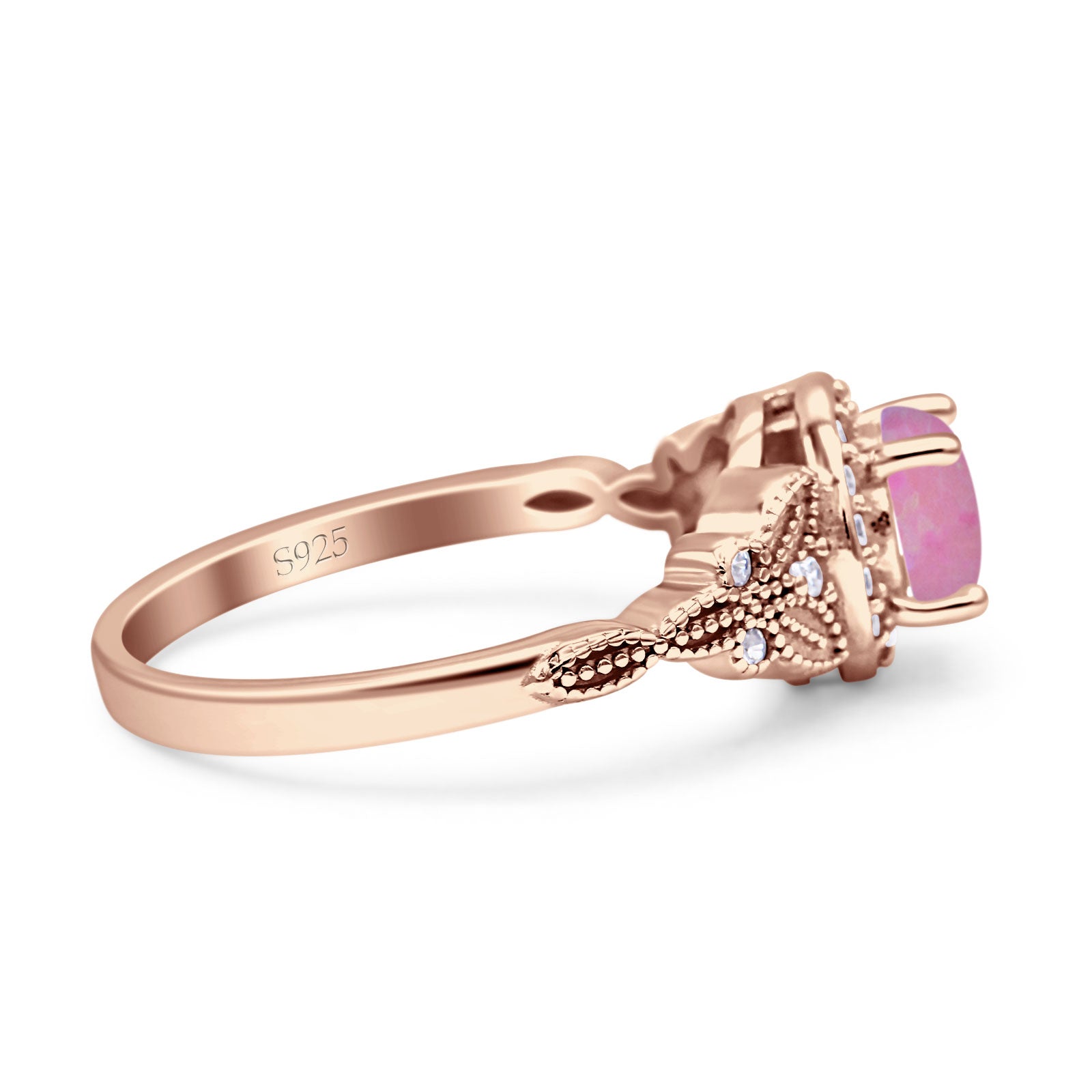 CZ & Blue Sapphire CZ Rose Tone Silver
