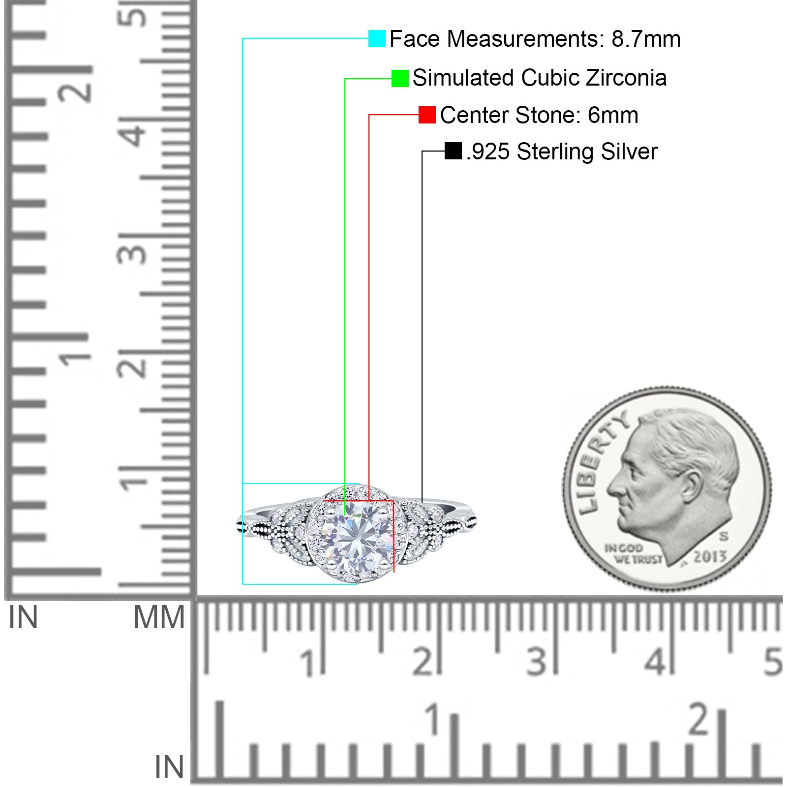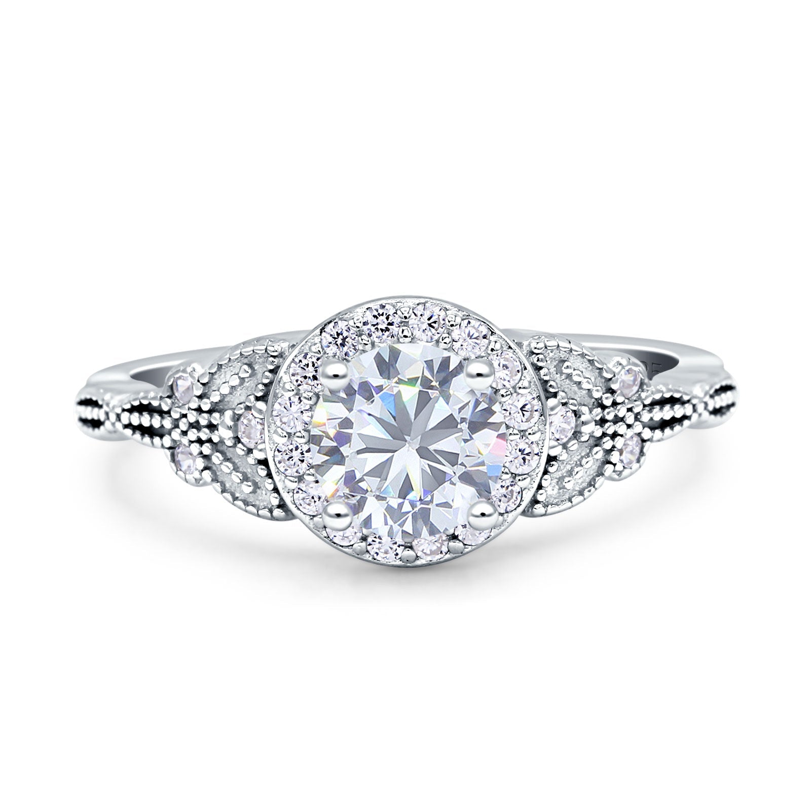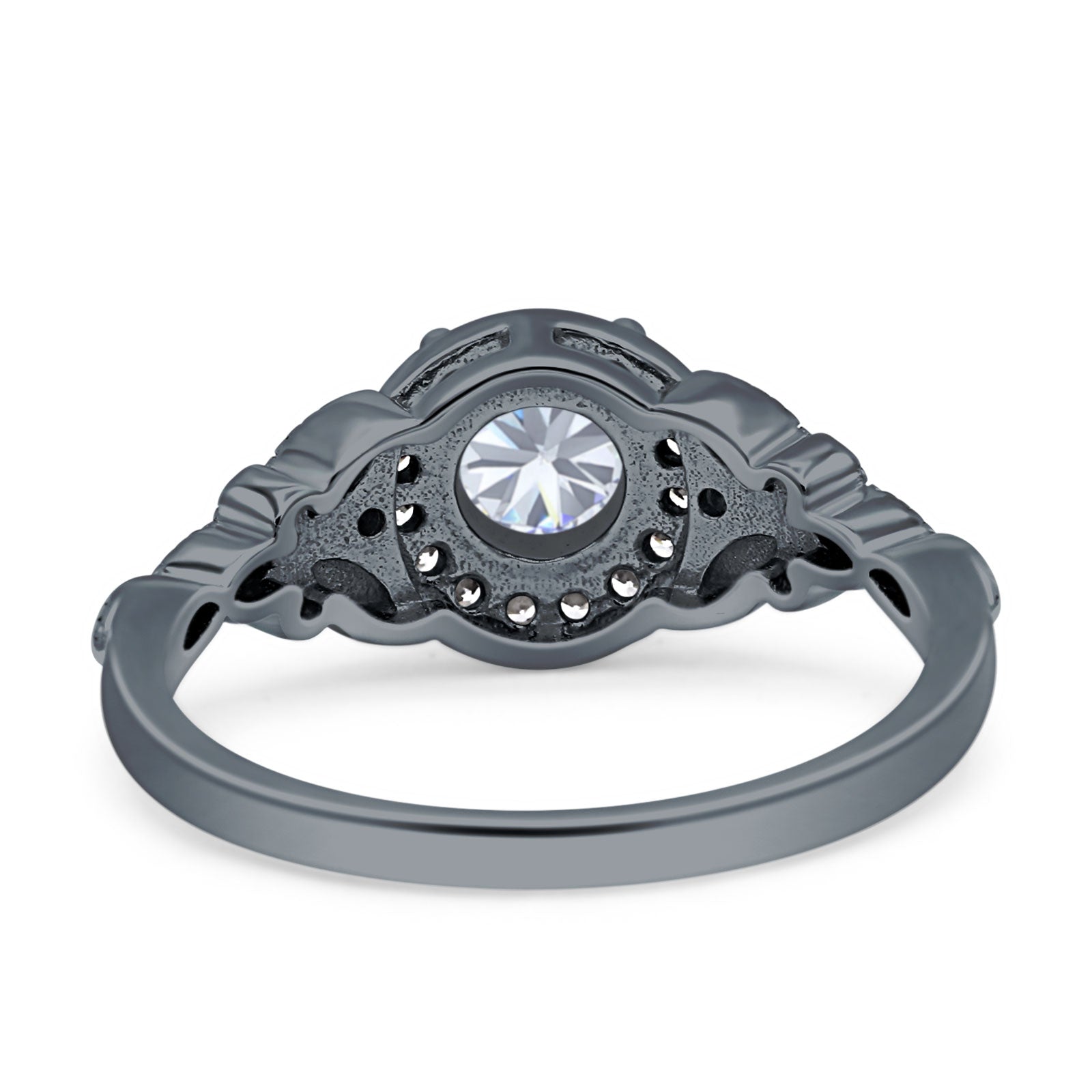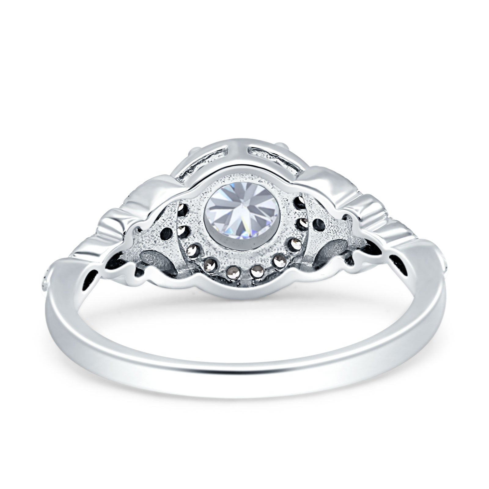 Art Deco Round Engagement Ring Cubic Zirconia 925 Sterling Silver