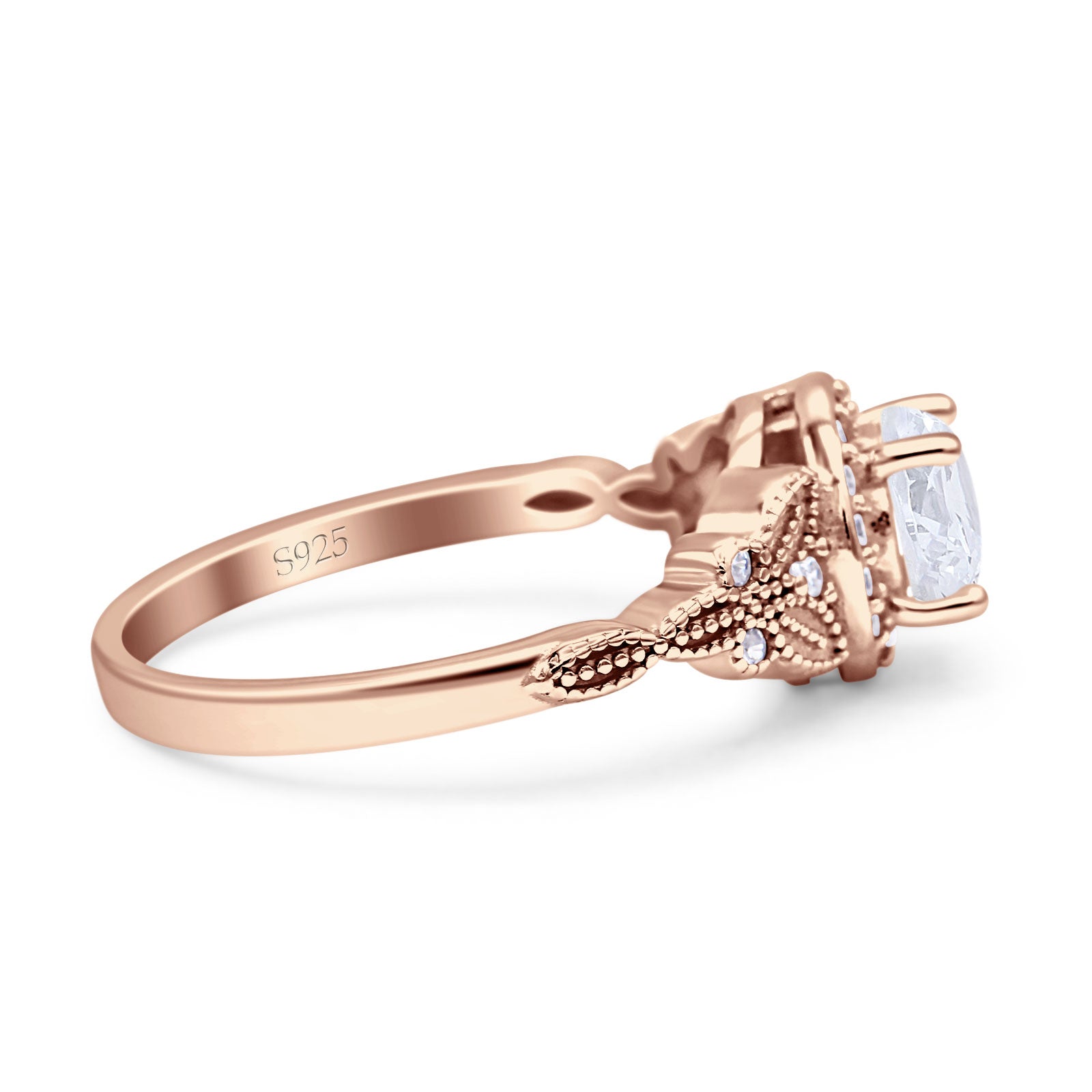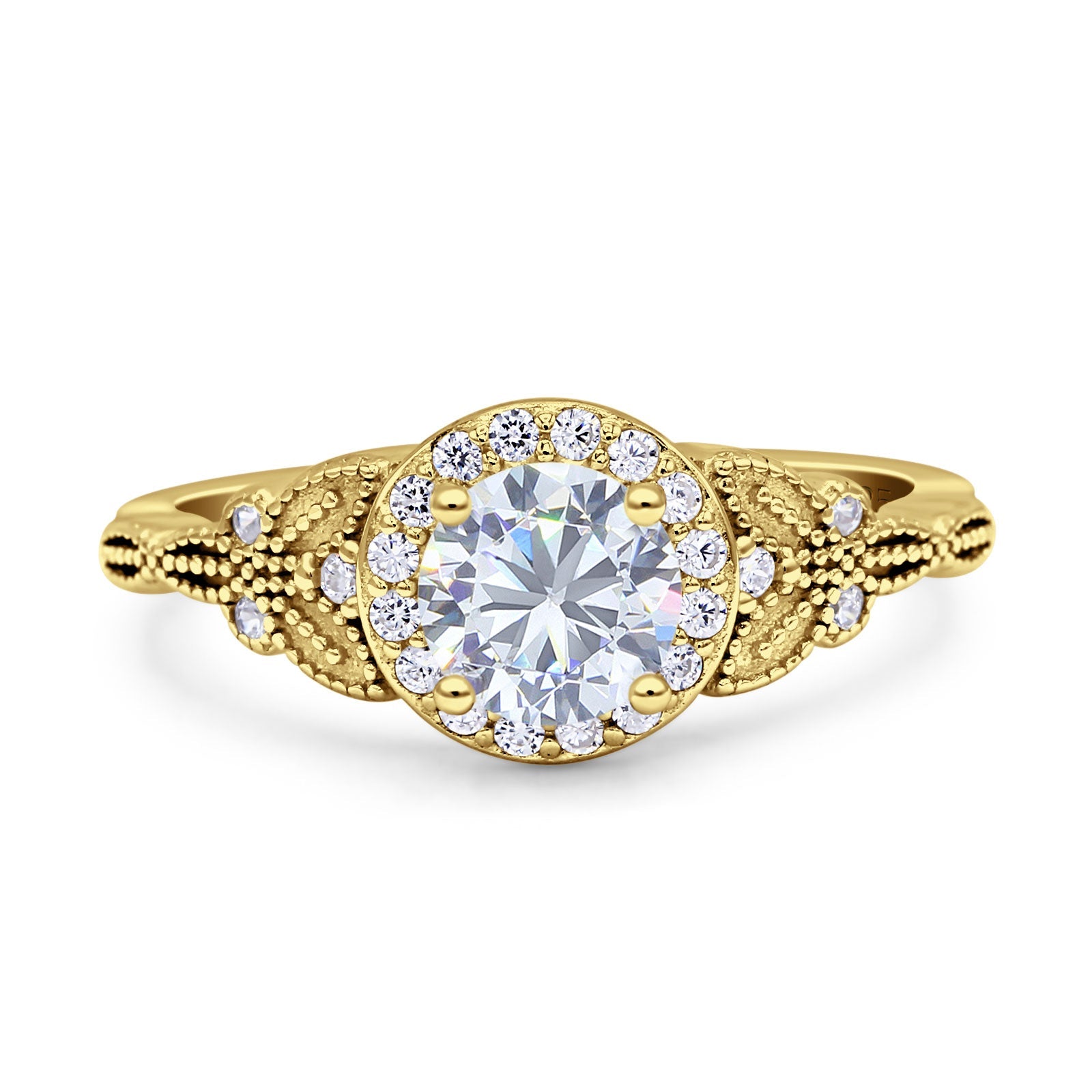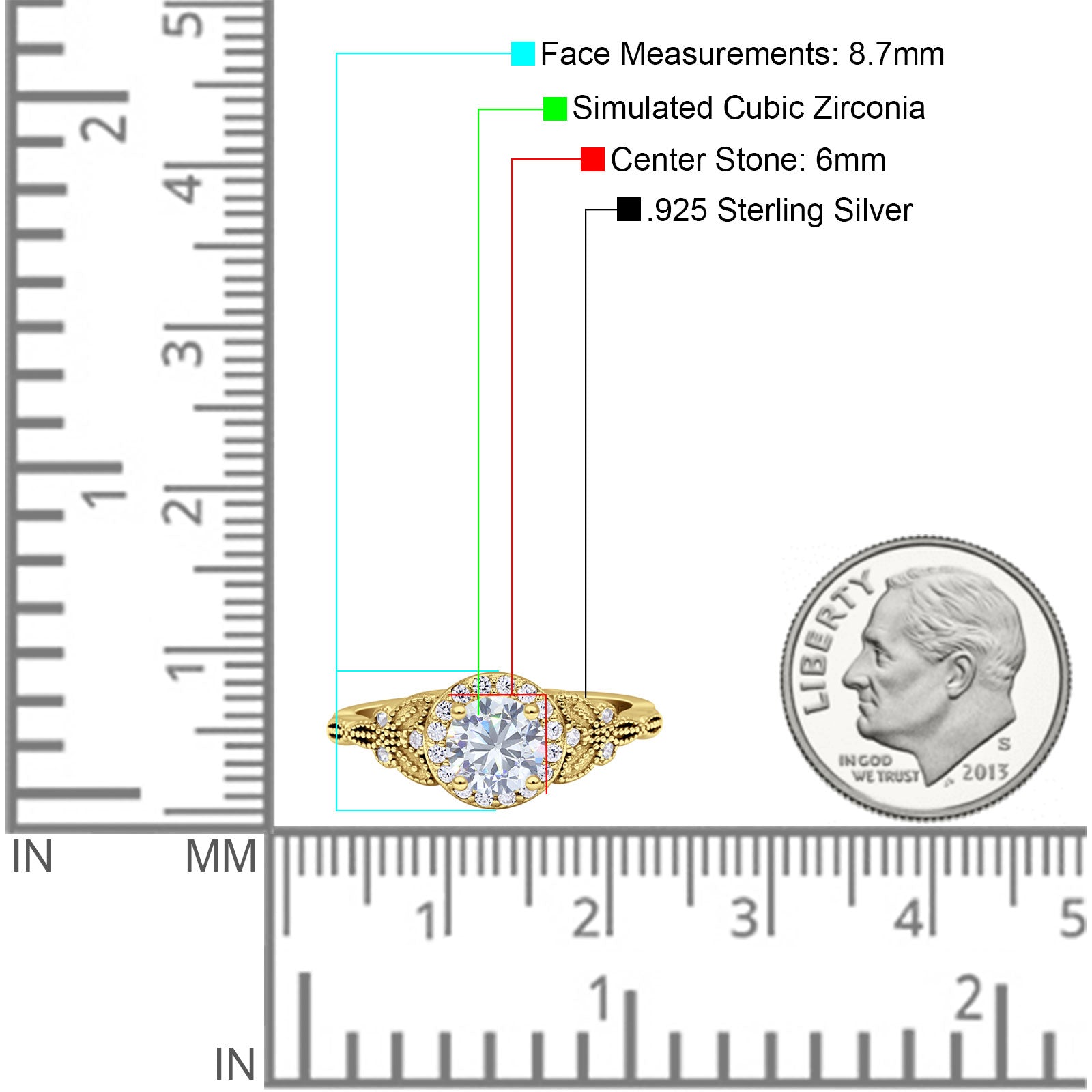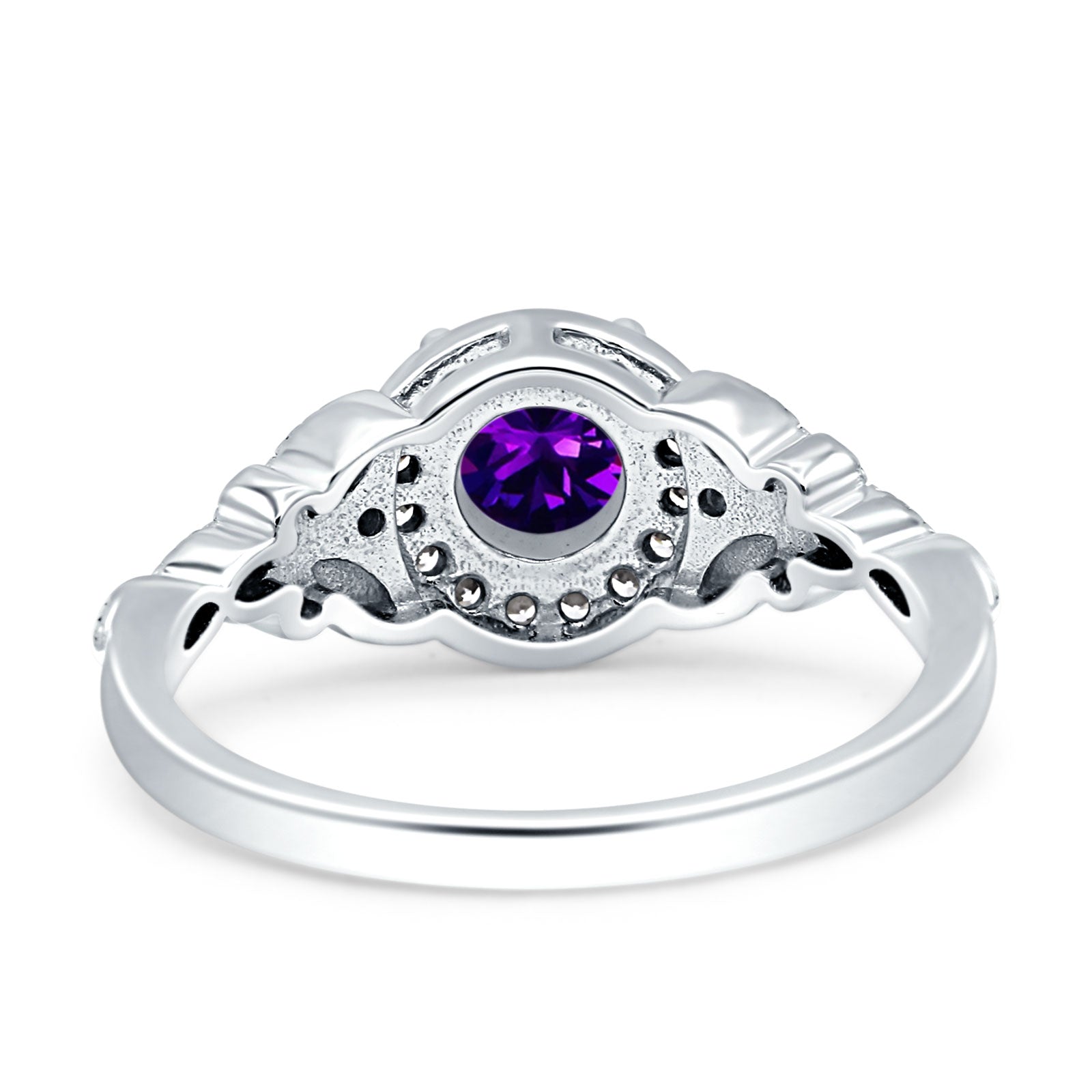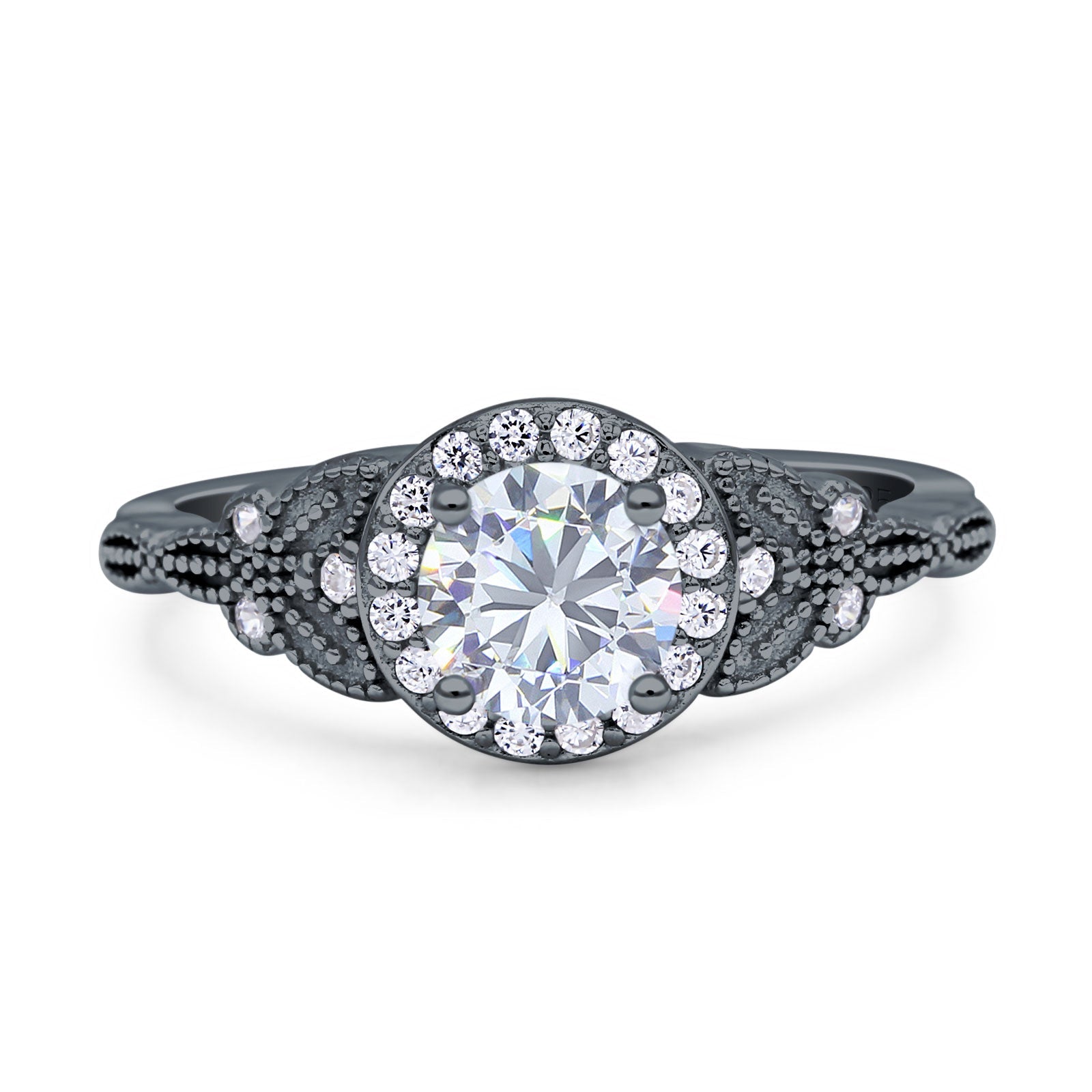 Art Deco Round Engagement Ring Cubic Zirconia 925 Sterling Silver