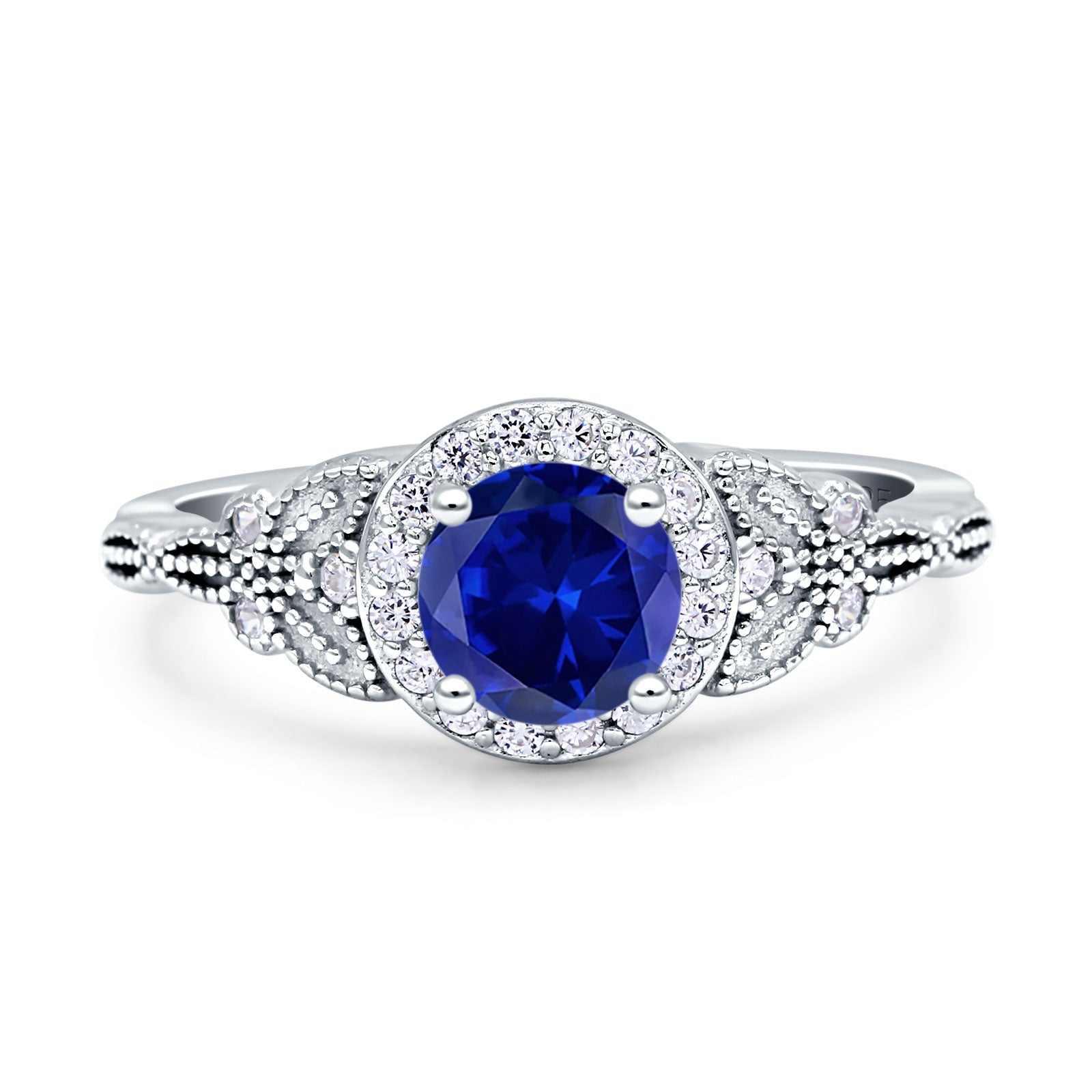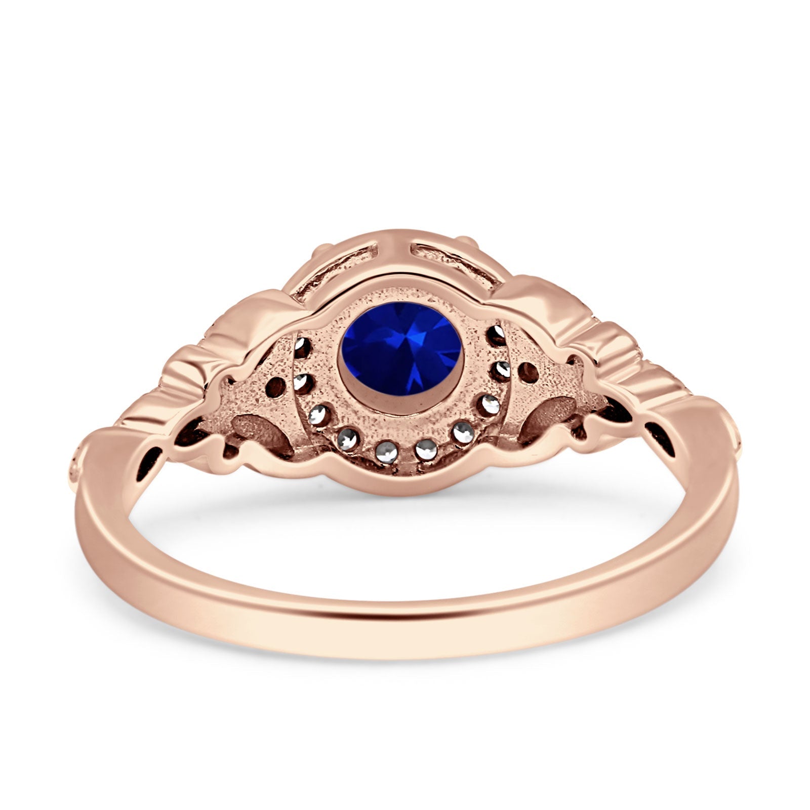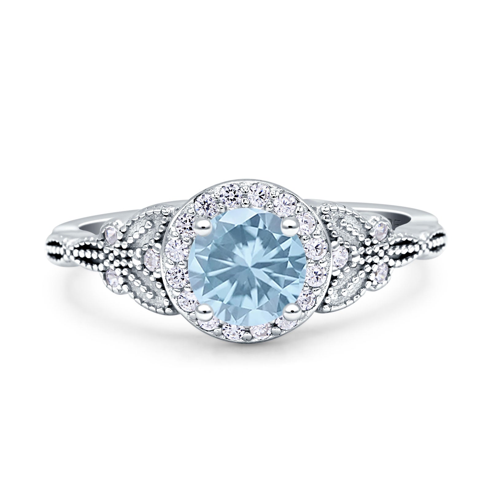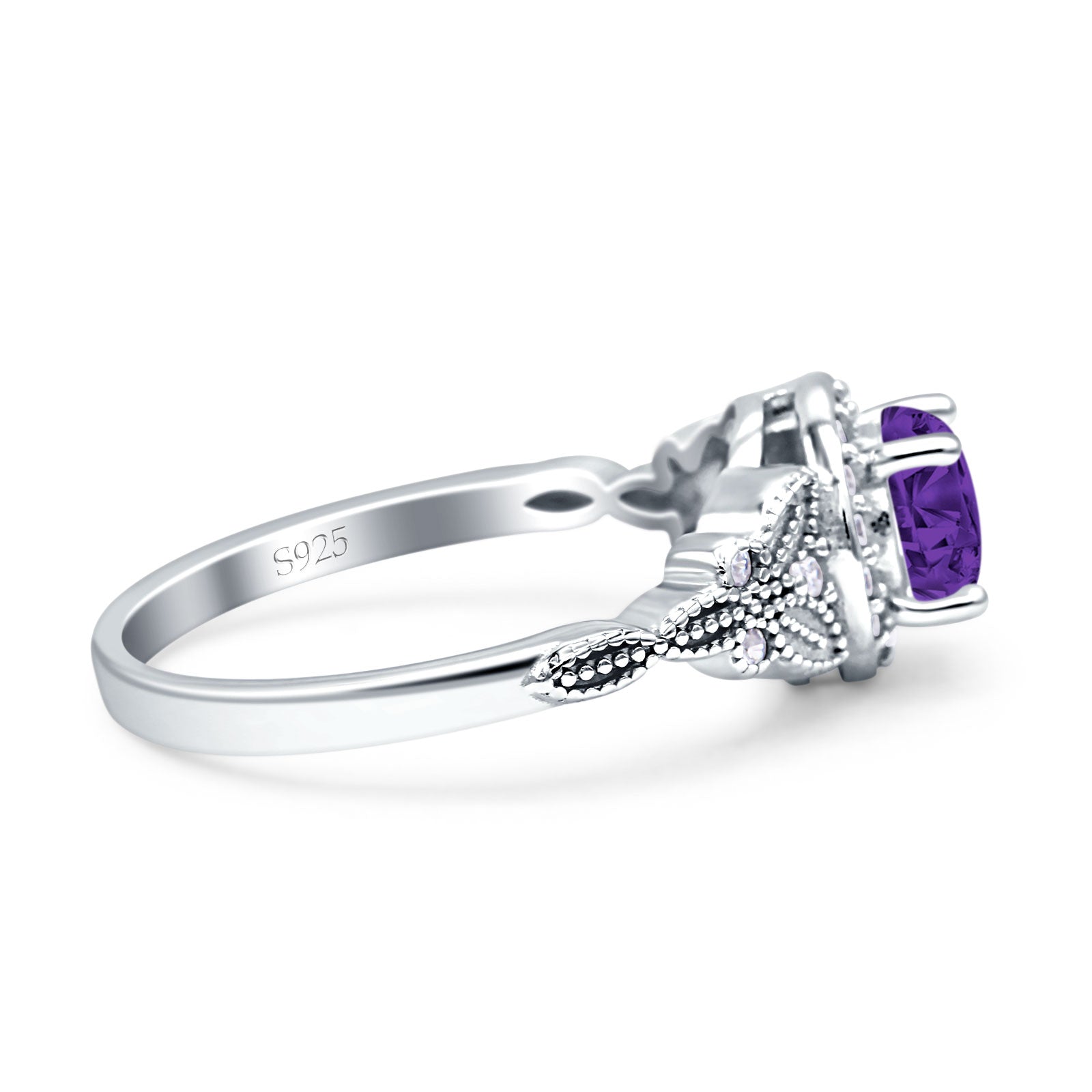 Art Deco Round Engagement Ring Cubic Zirconia 925 Sterling Silver