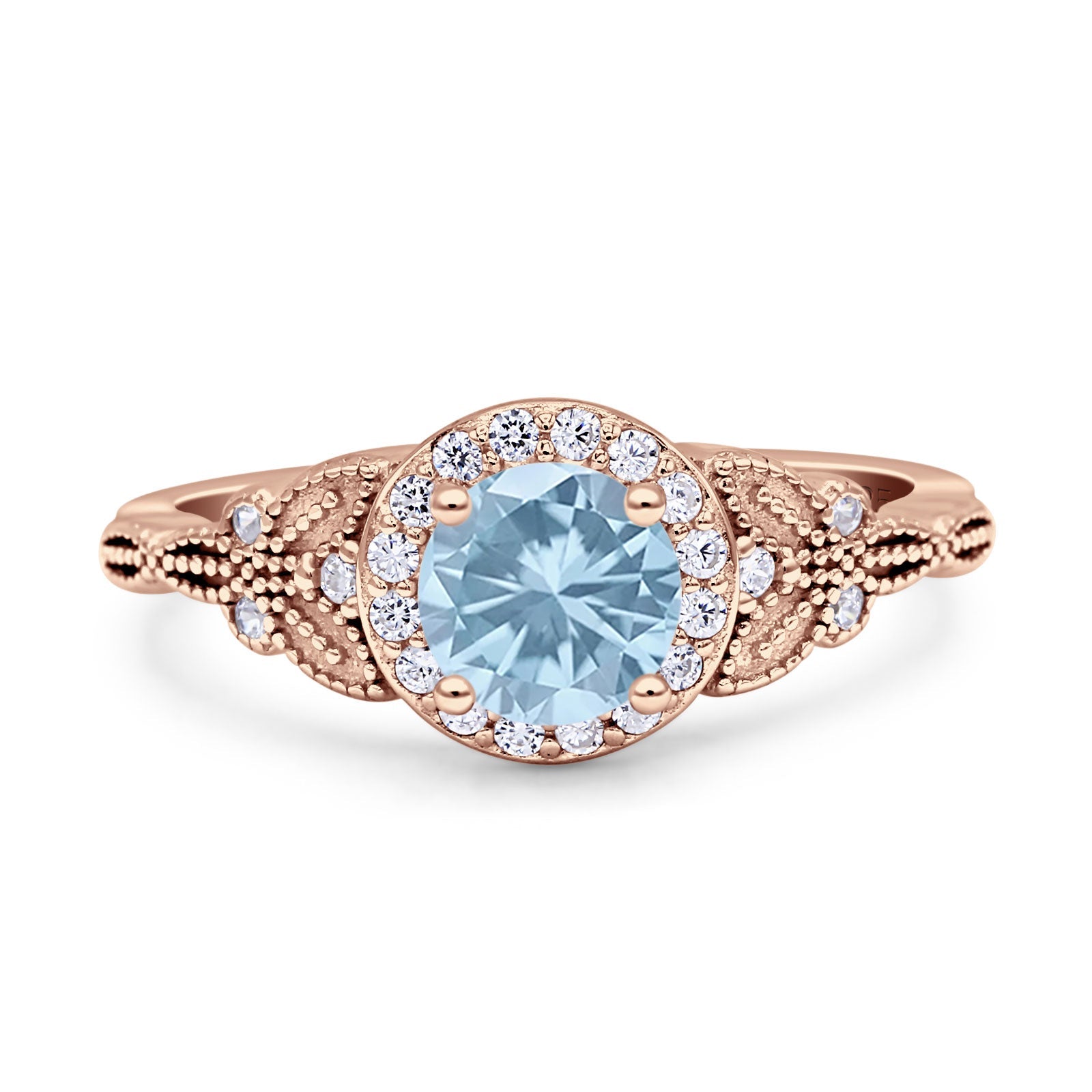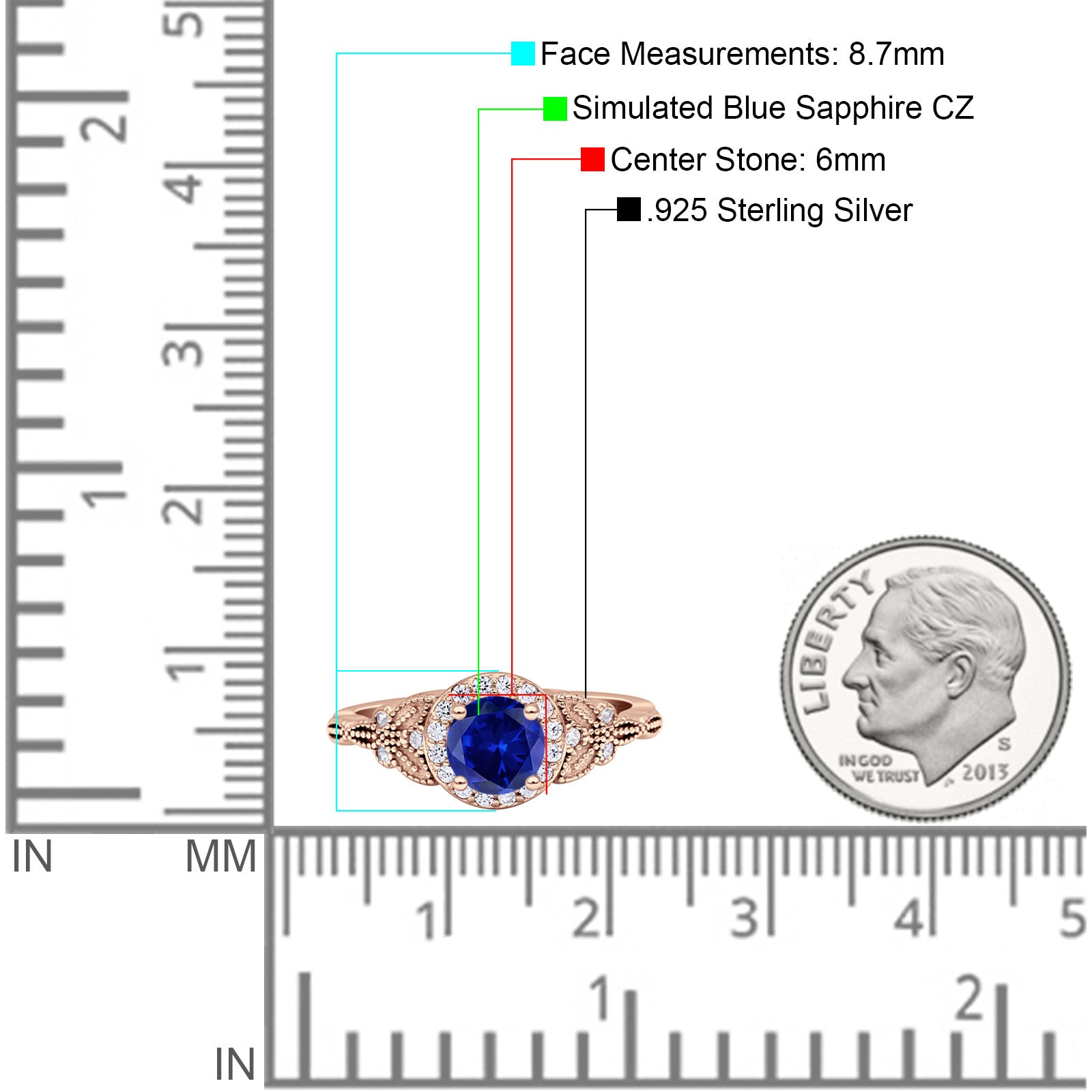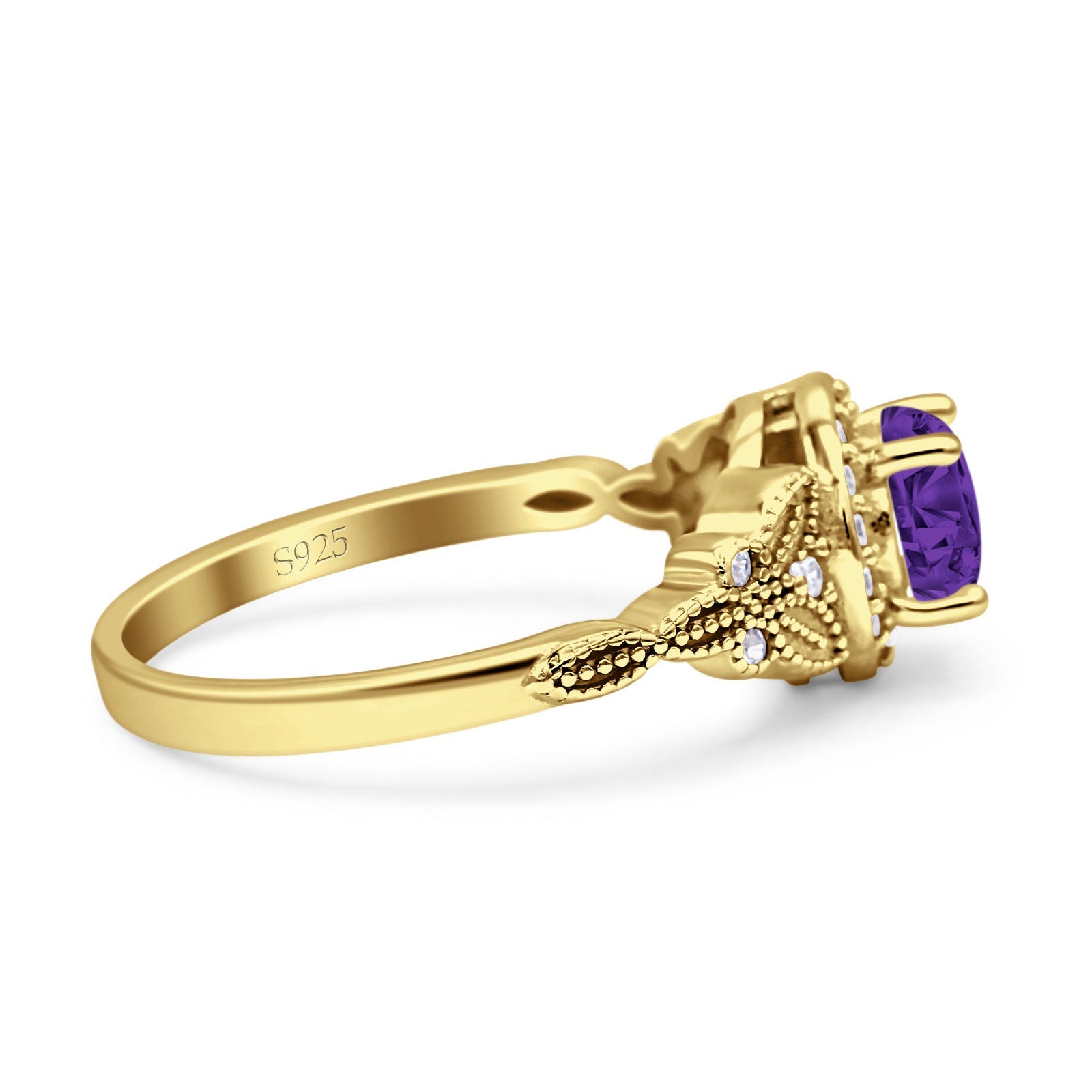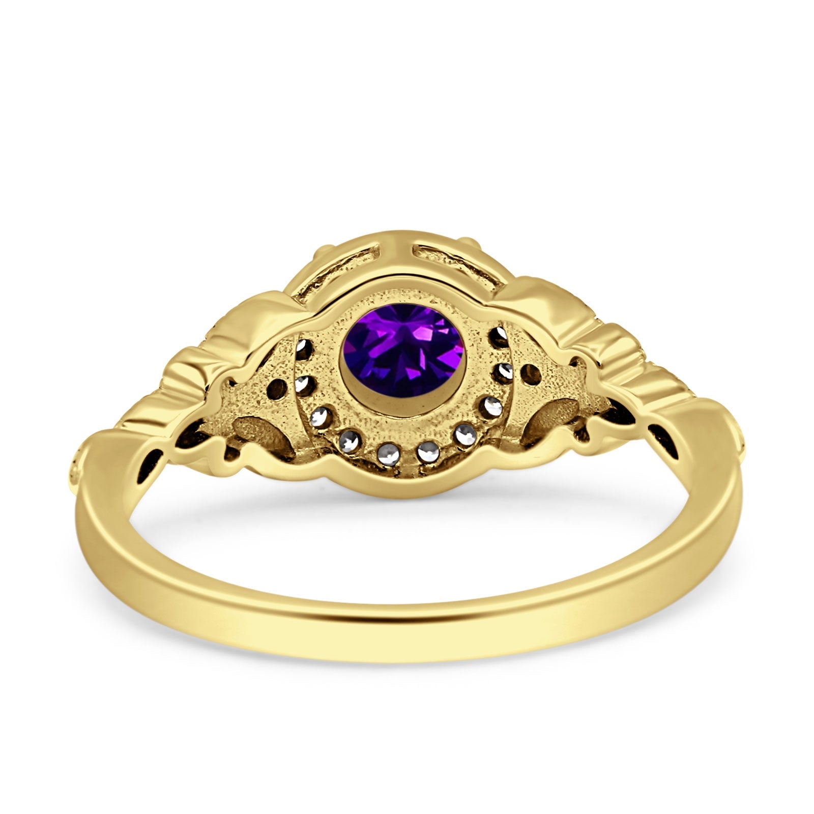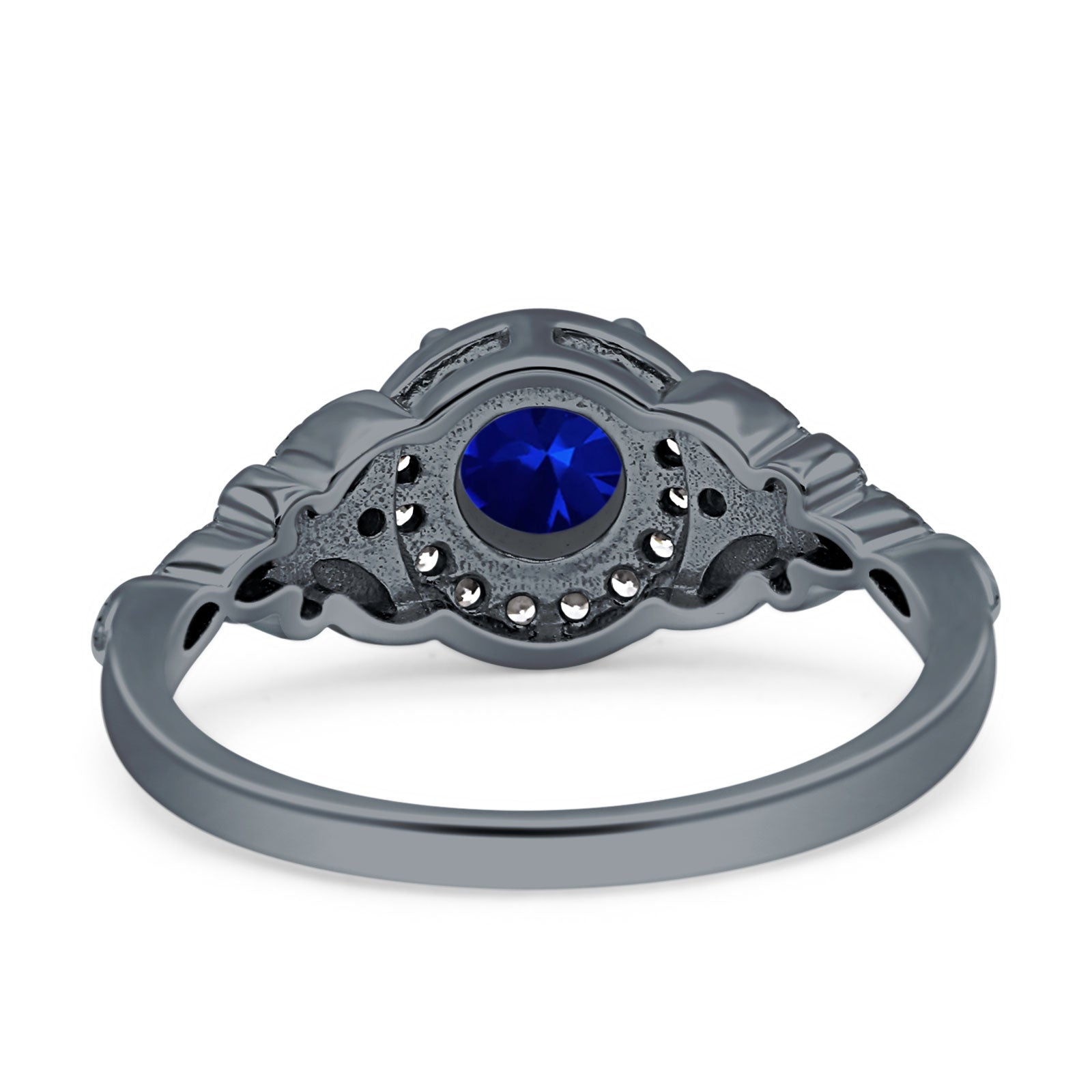 Art Deco Round Engagement Ring Cubic Zirconia 925 Sterling Silver