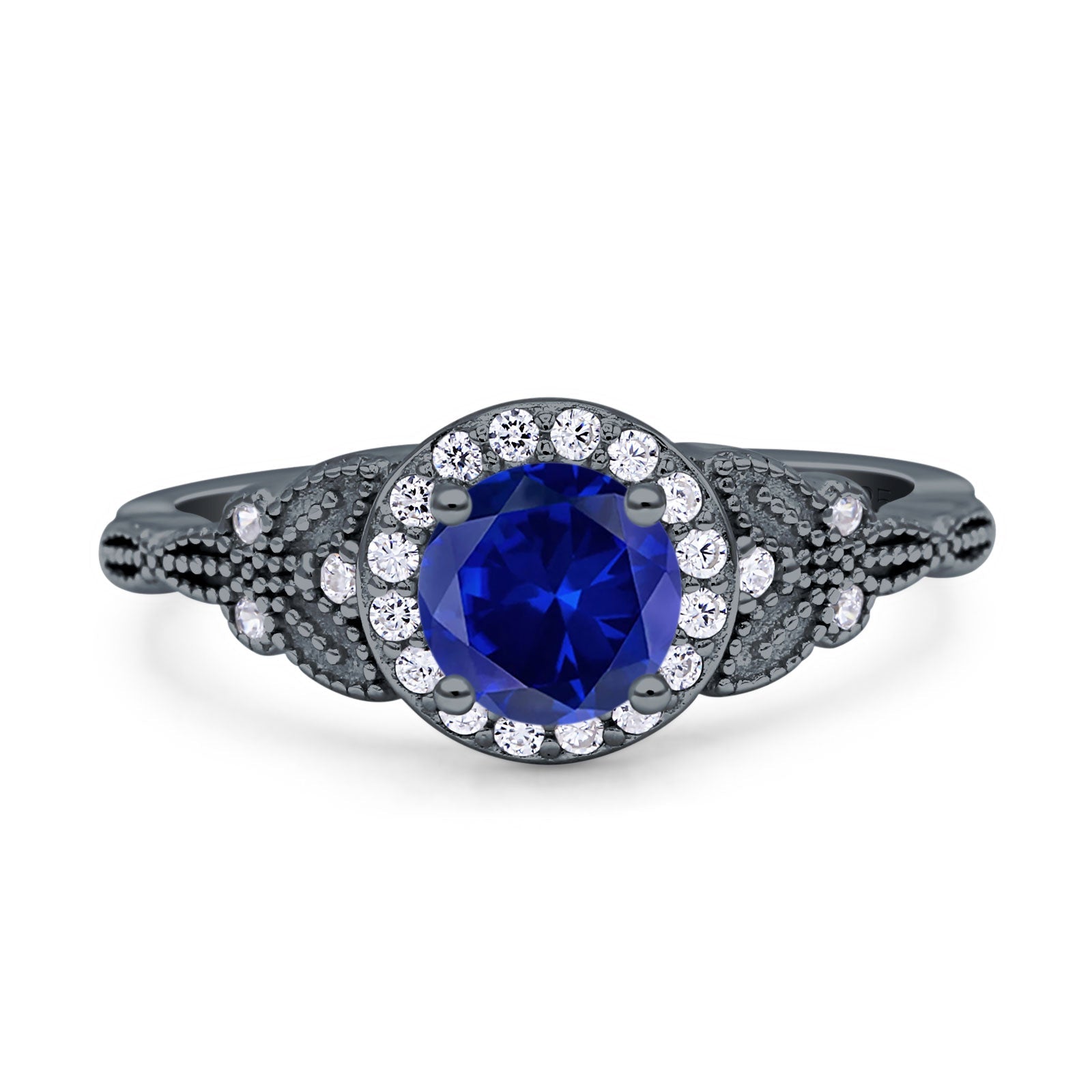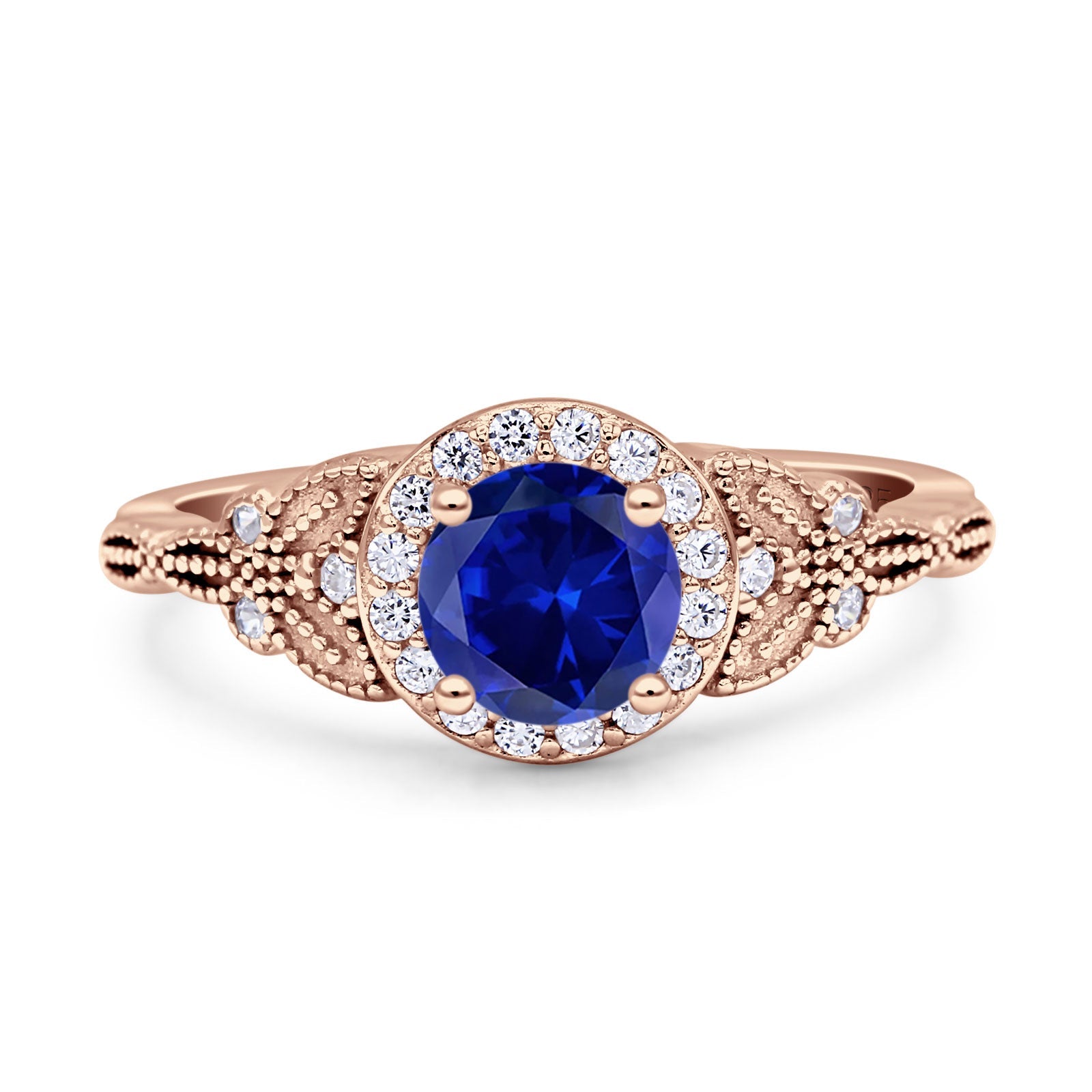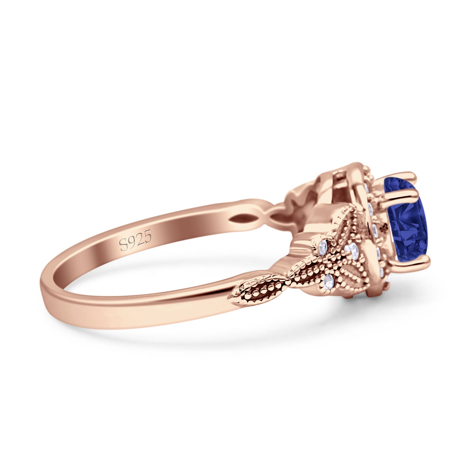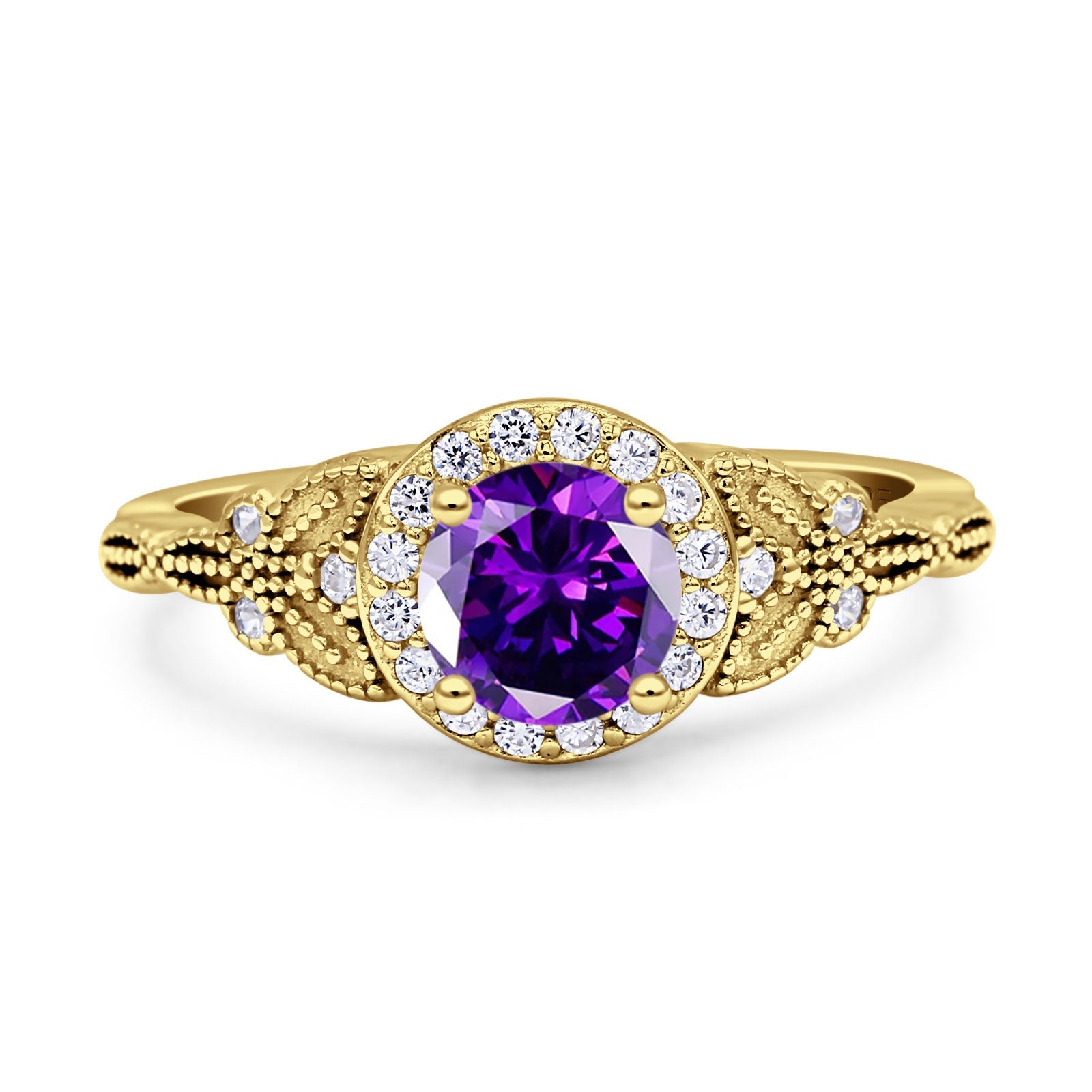 Art Deco Round Engagement Ring Cubic Zirconia 925 Sterling Silver