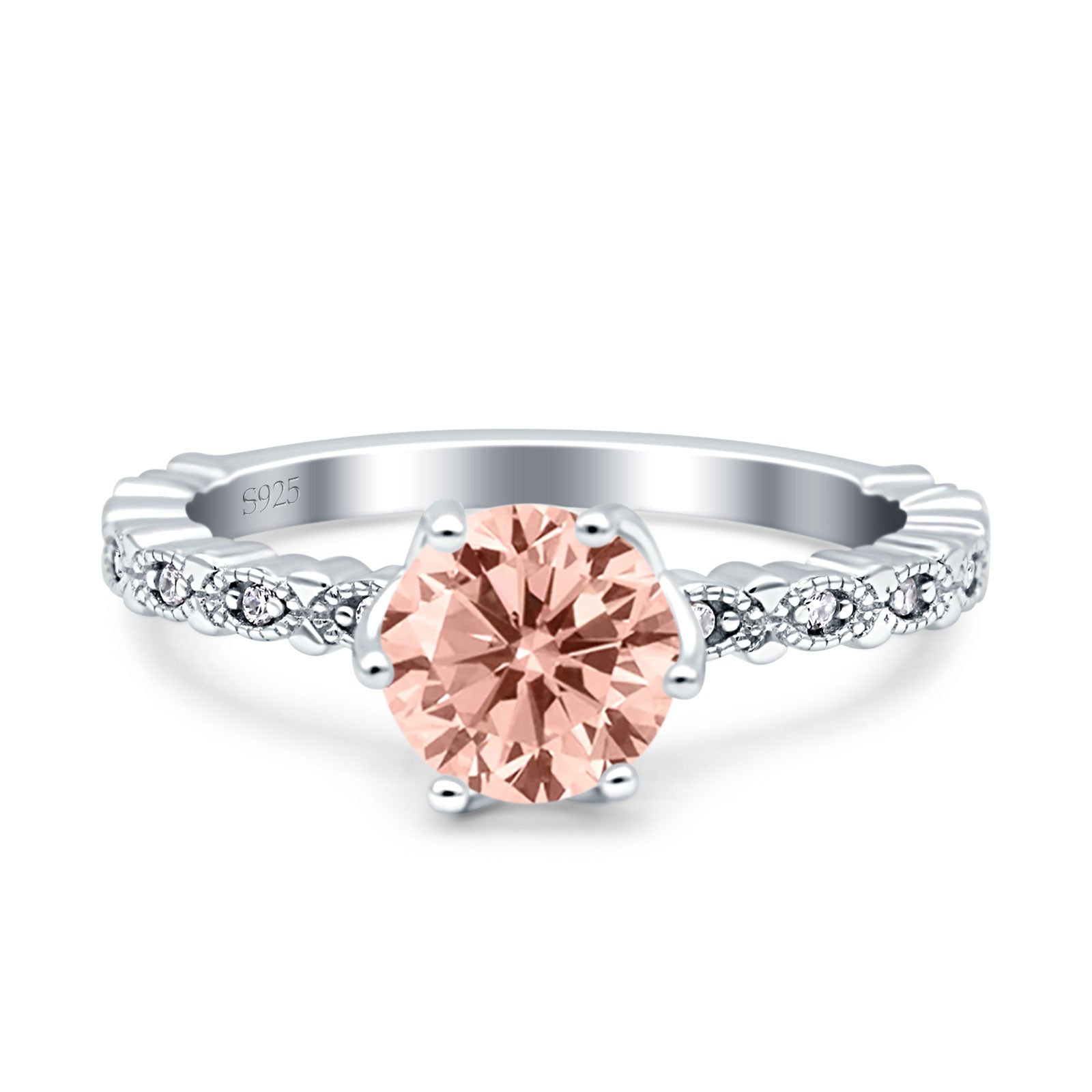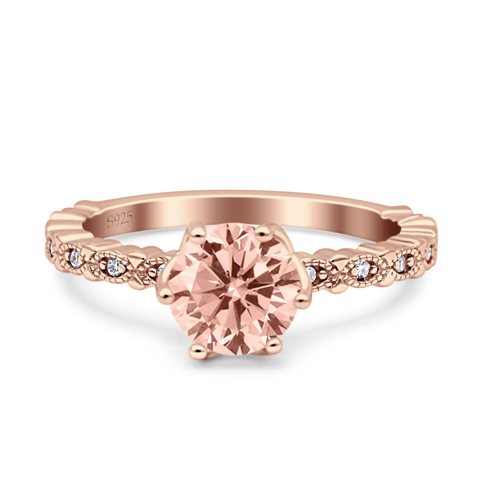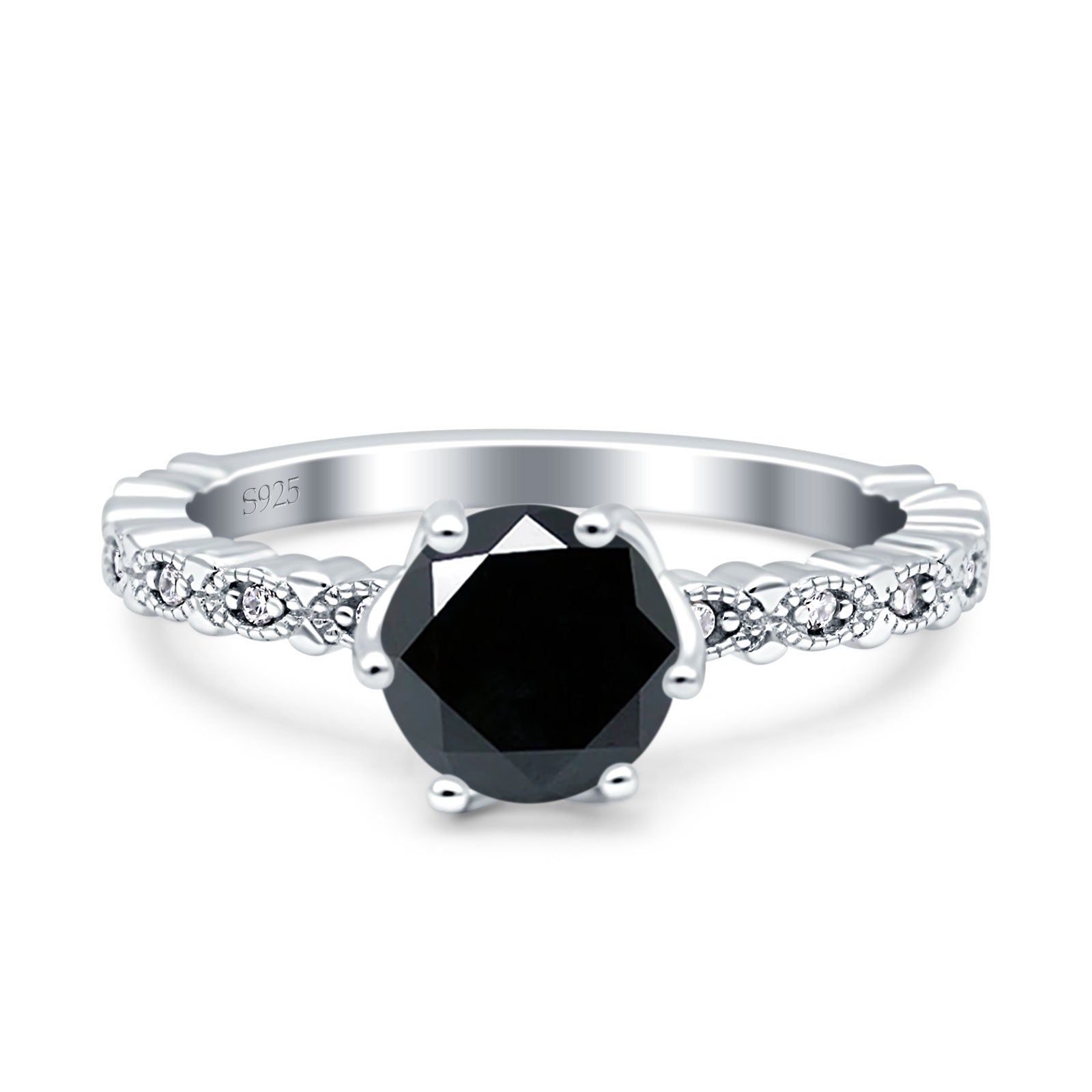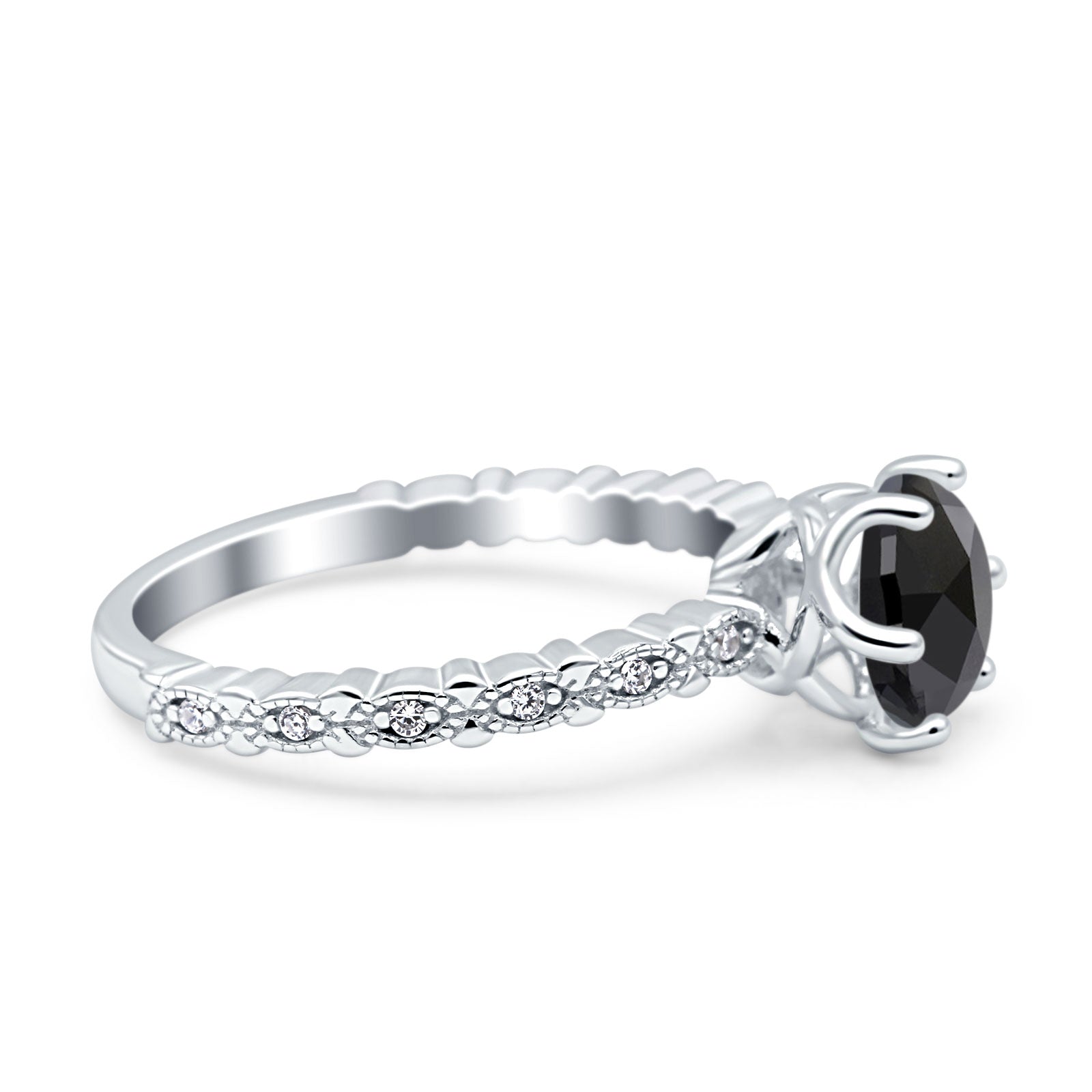 Art Deco Round Engagement Ring Simulated Cubic Zirconia 925 Sterling Silver