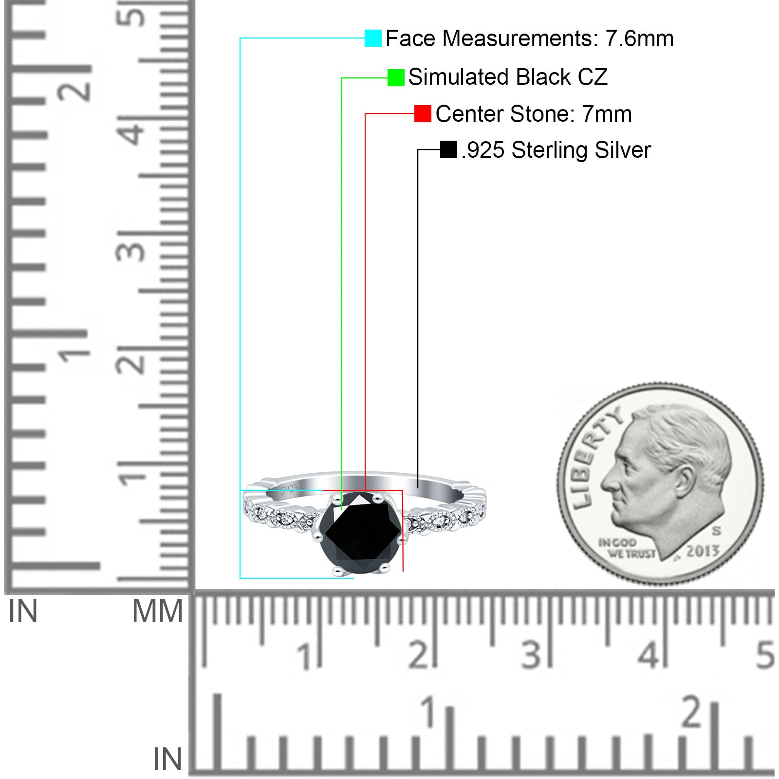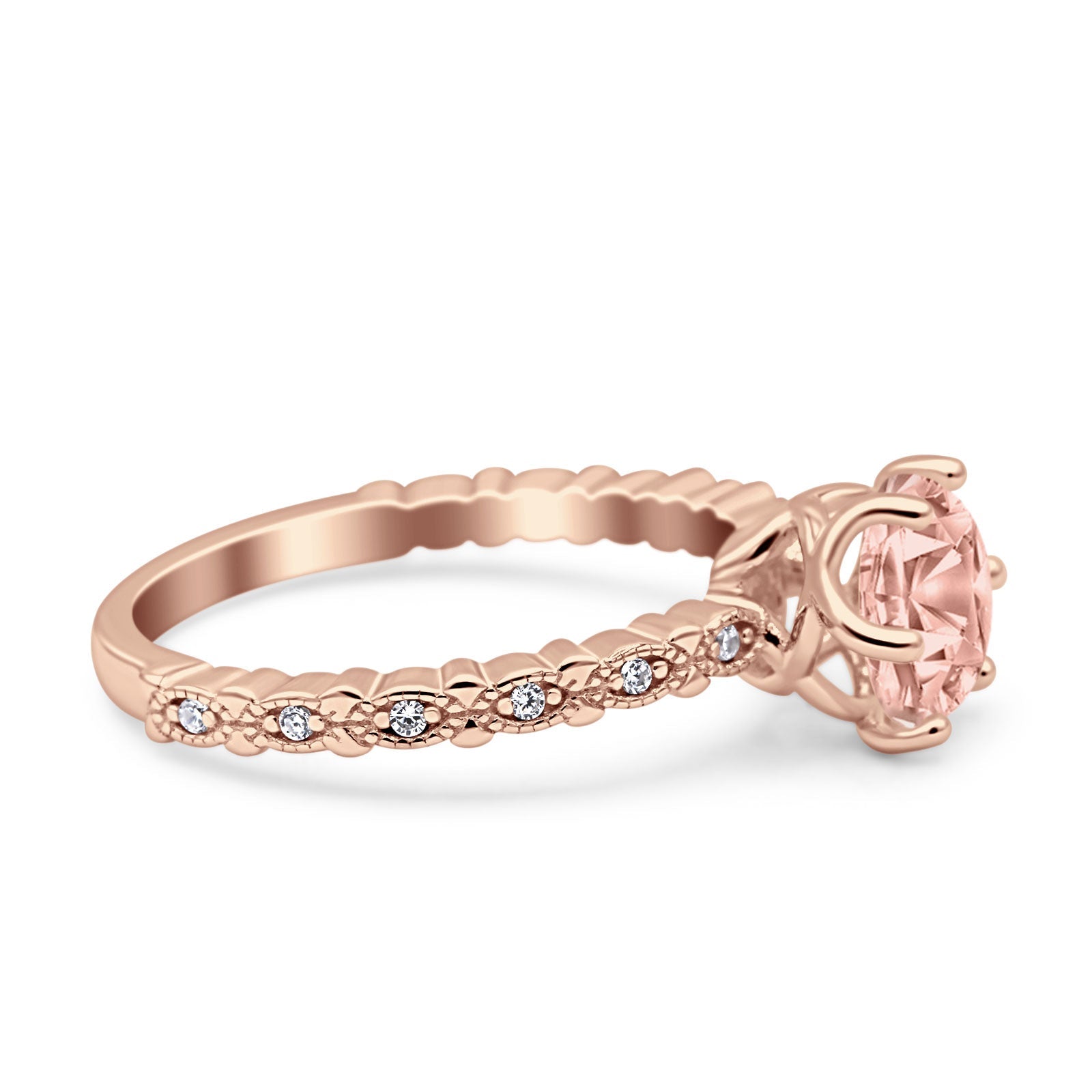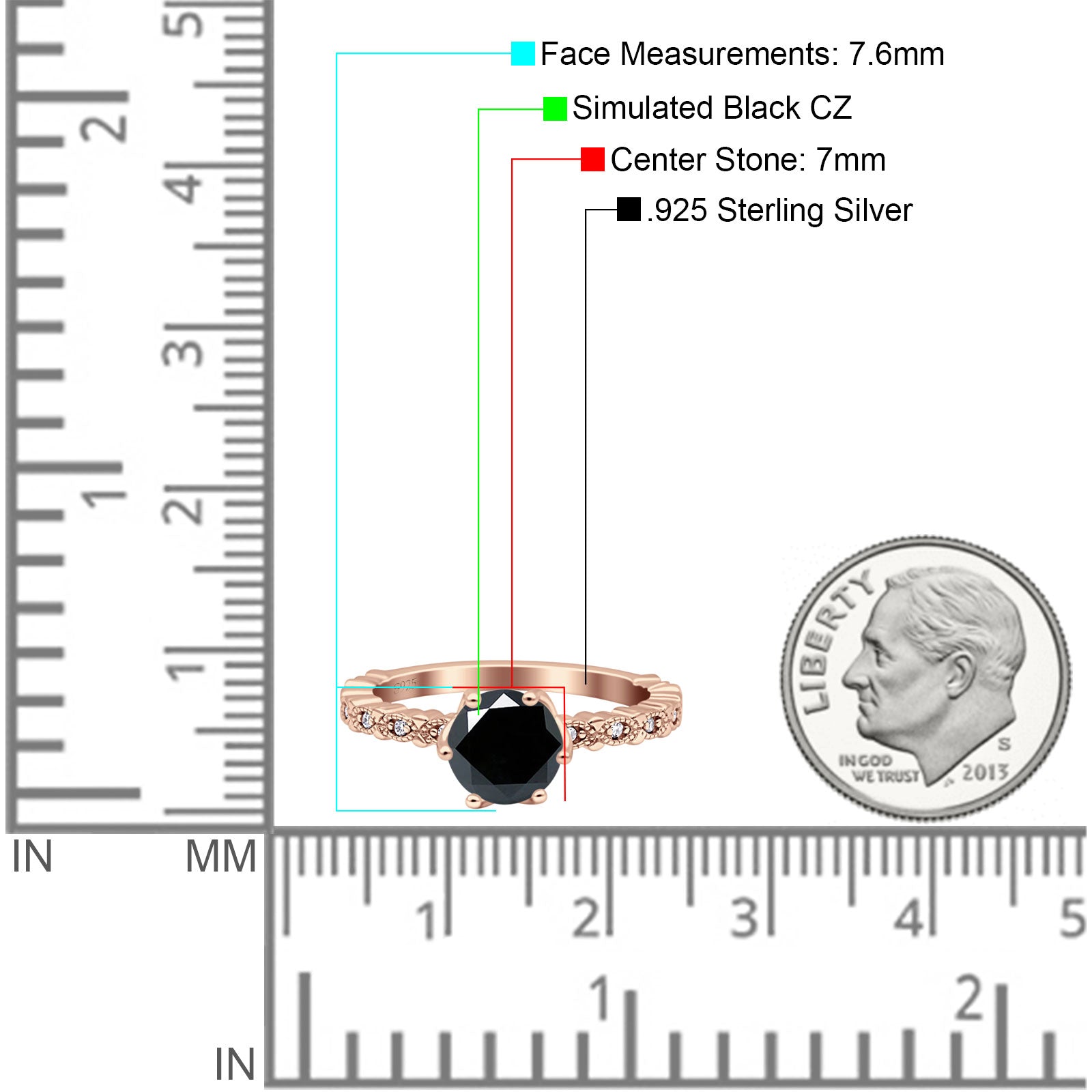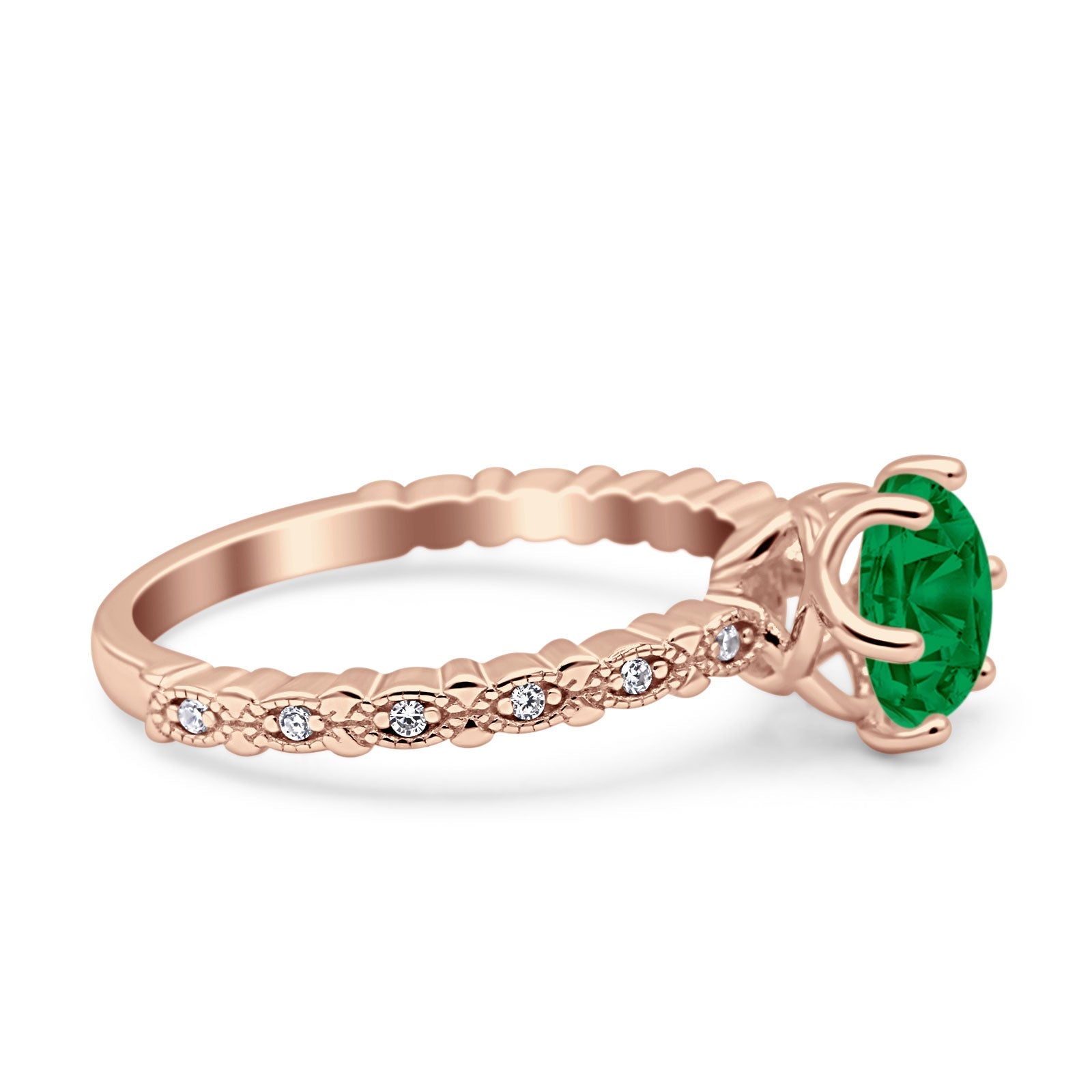 Art Deco Round Engagement Ring Simulated Cubic Zirconia 925 Sterling Silver
