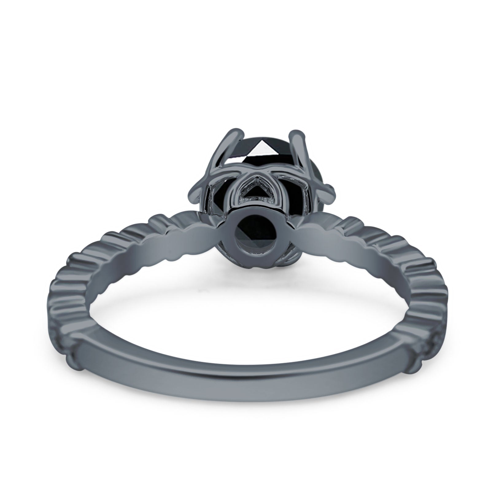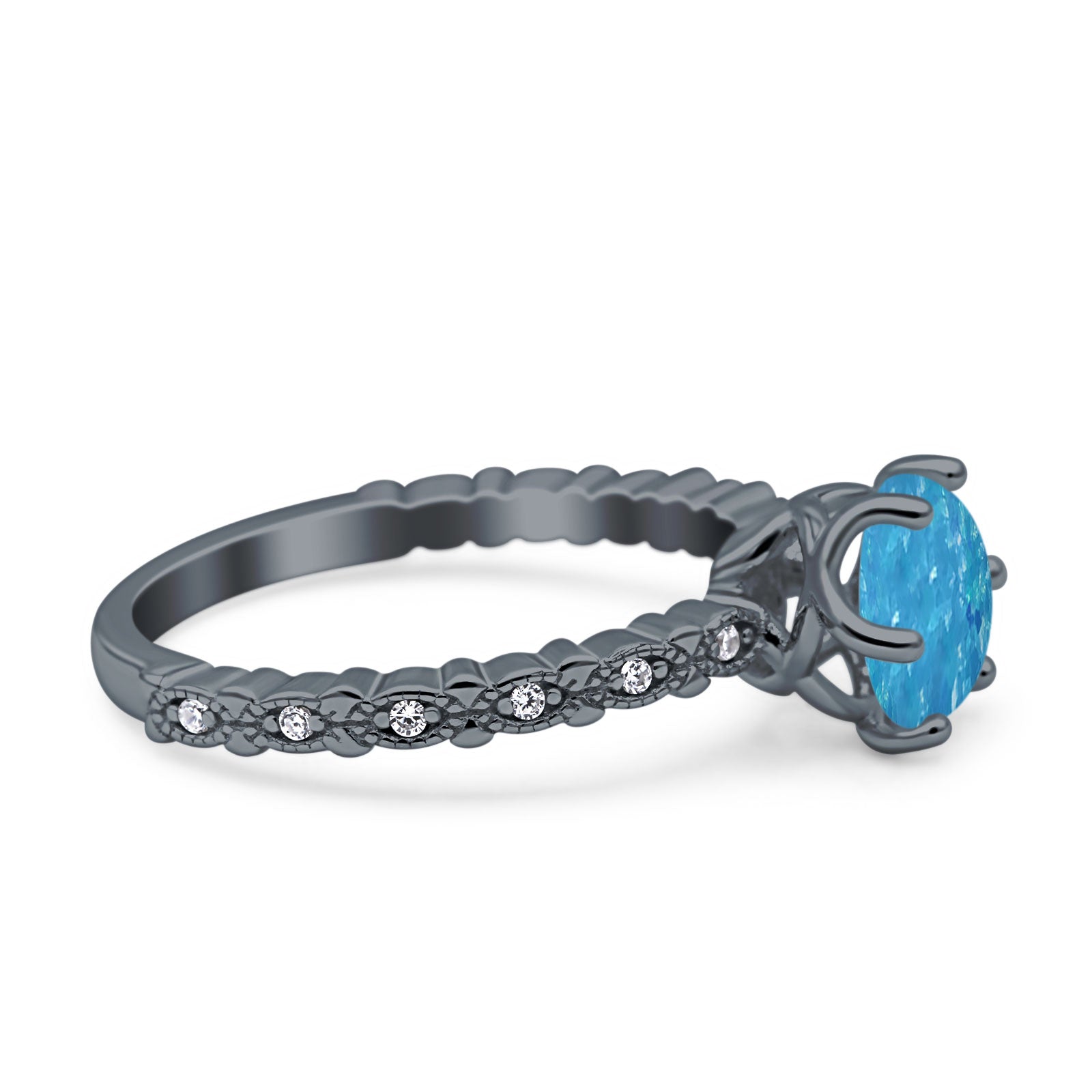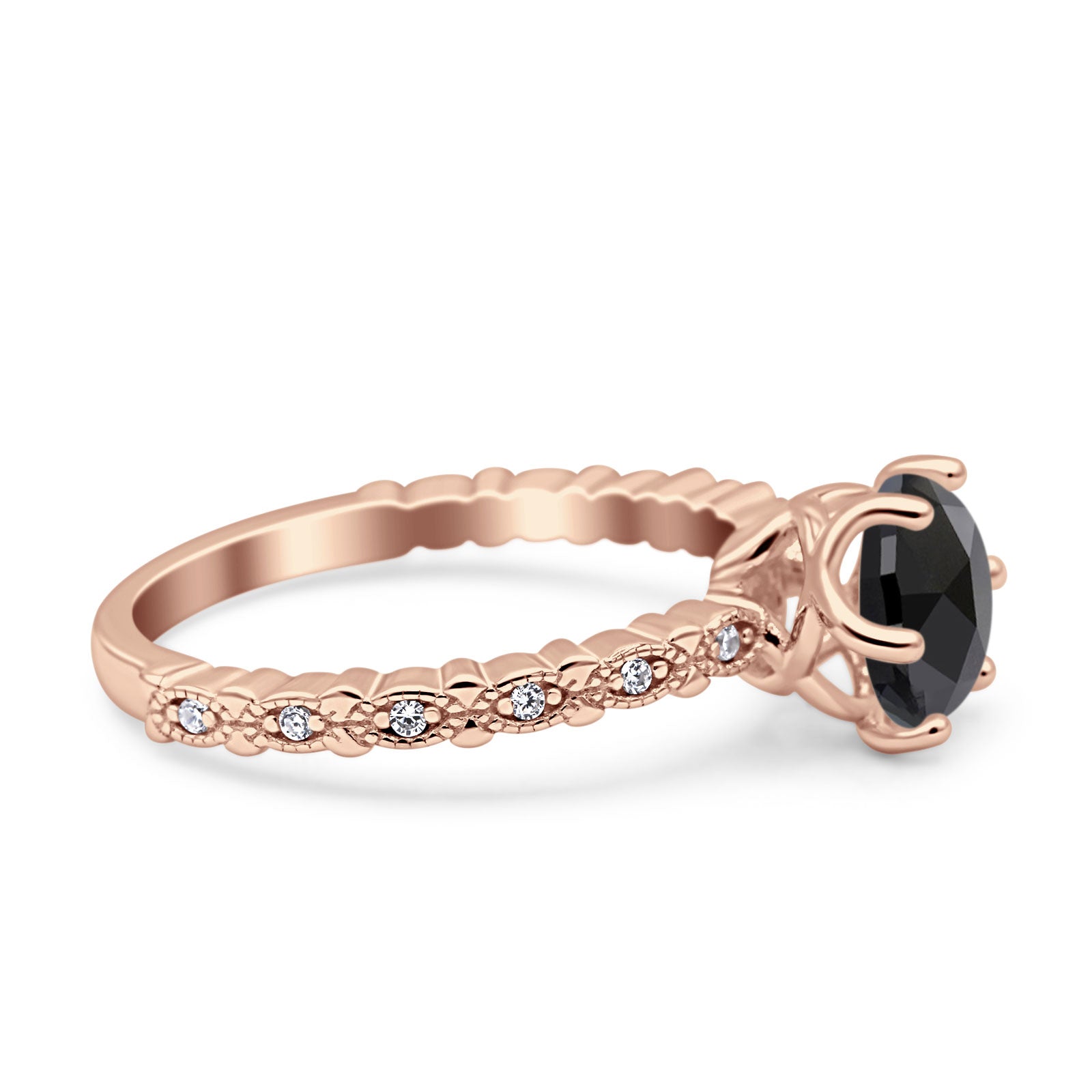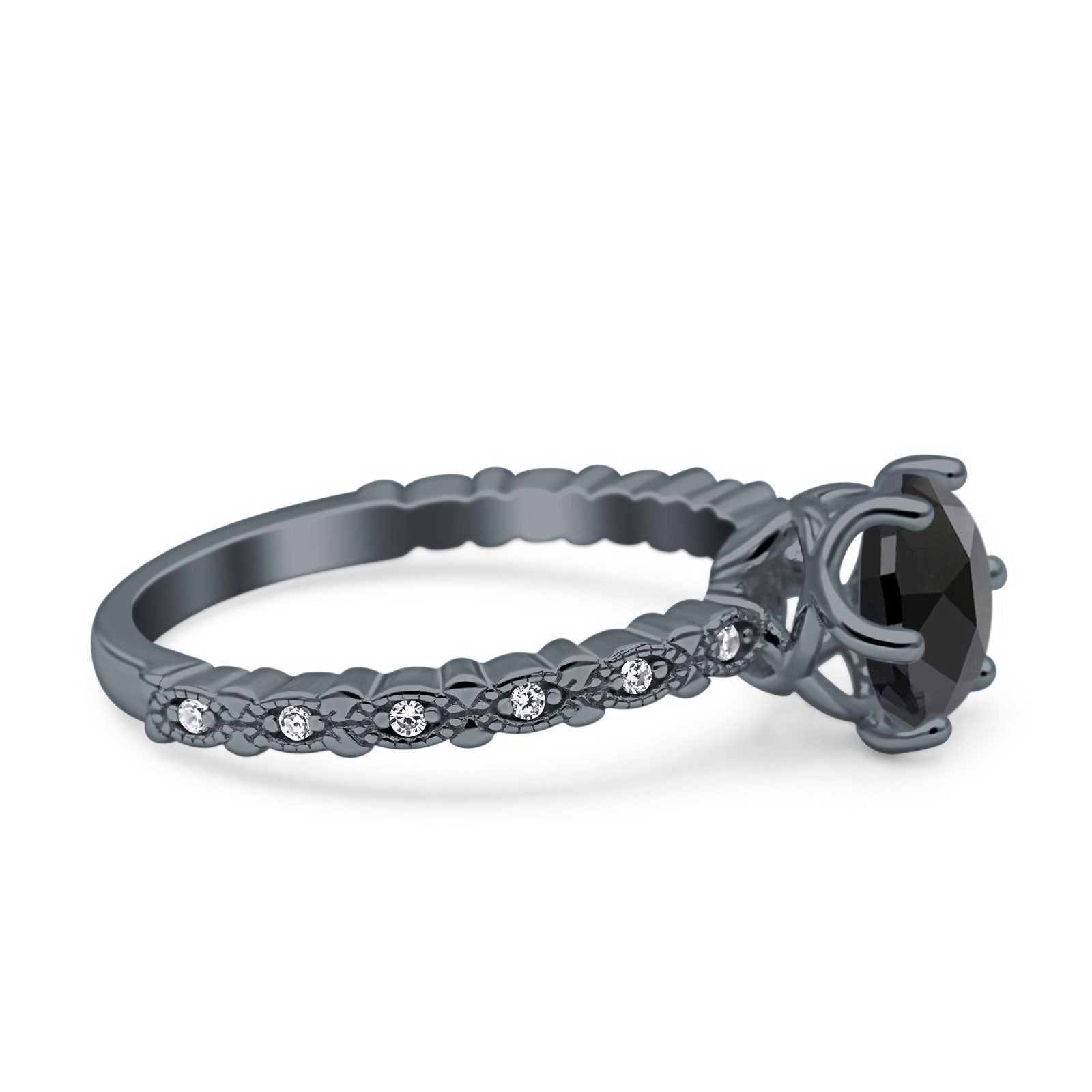 Art Deco Round Engagement Ring Simulated Cubic Zirconia 925 Sterling Silver