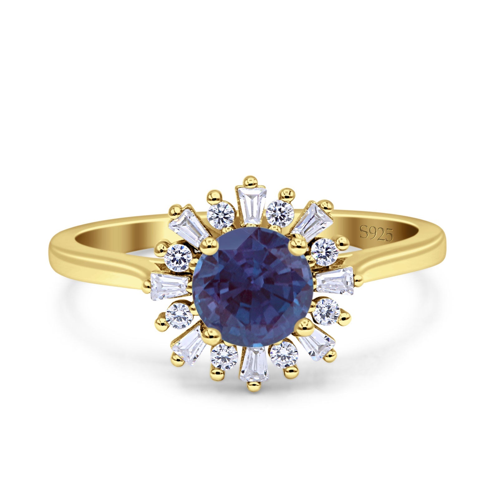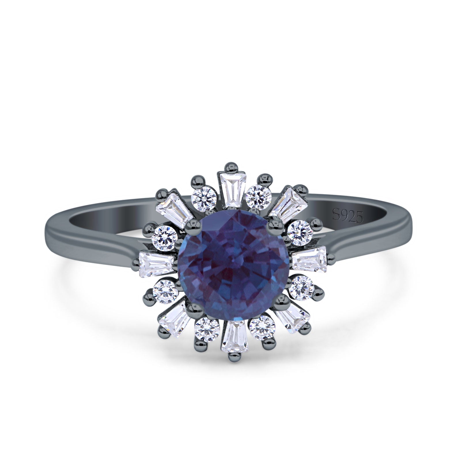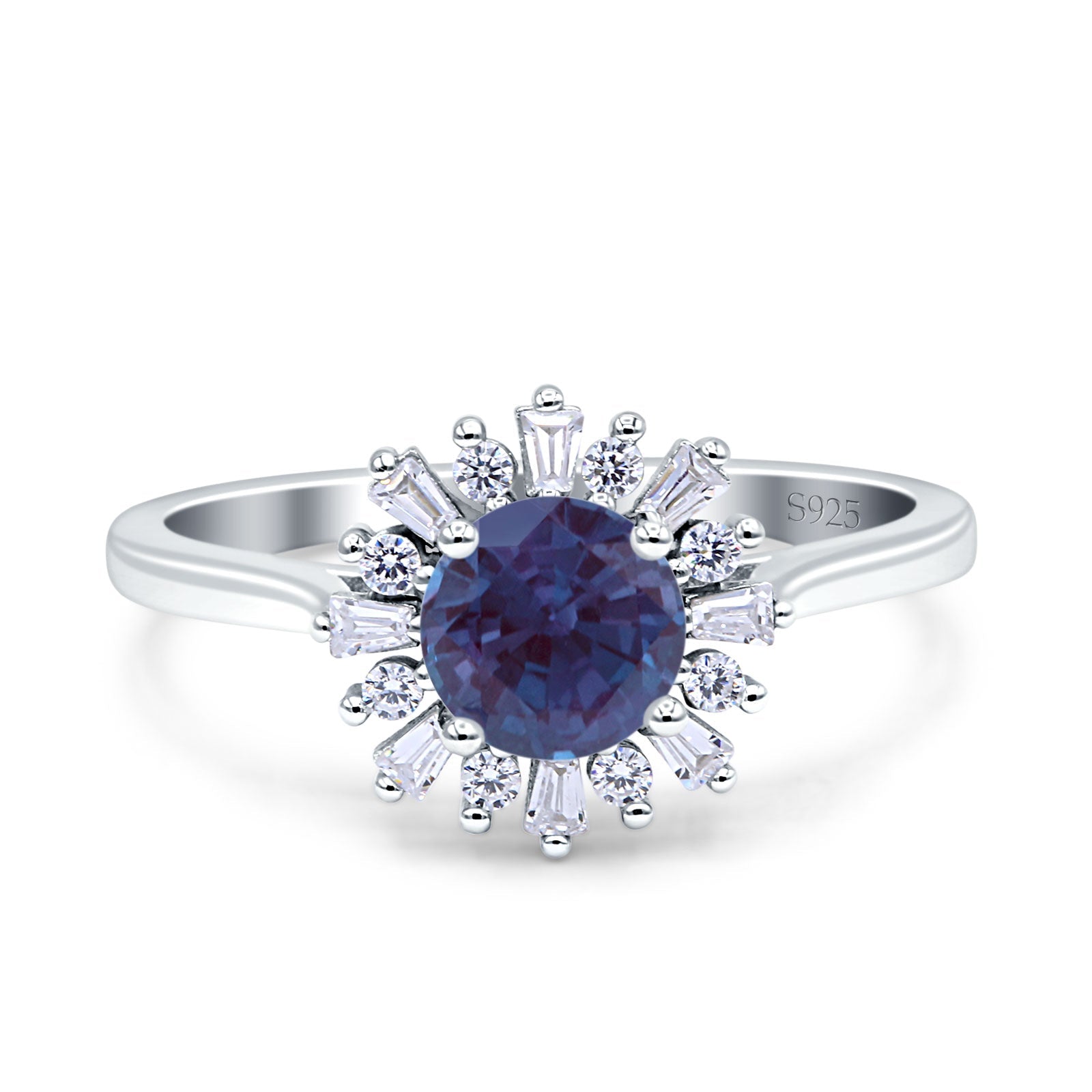 Art Deco Round Lab Alexandrite Baguette Floral Ring 925 Sterling Silver