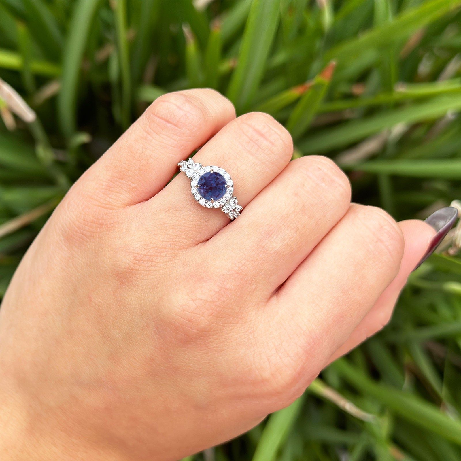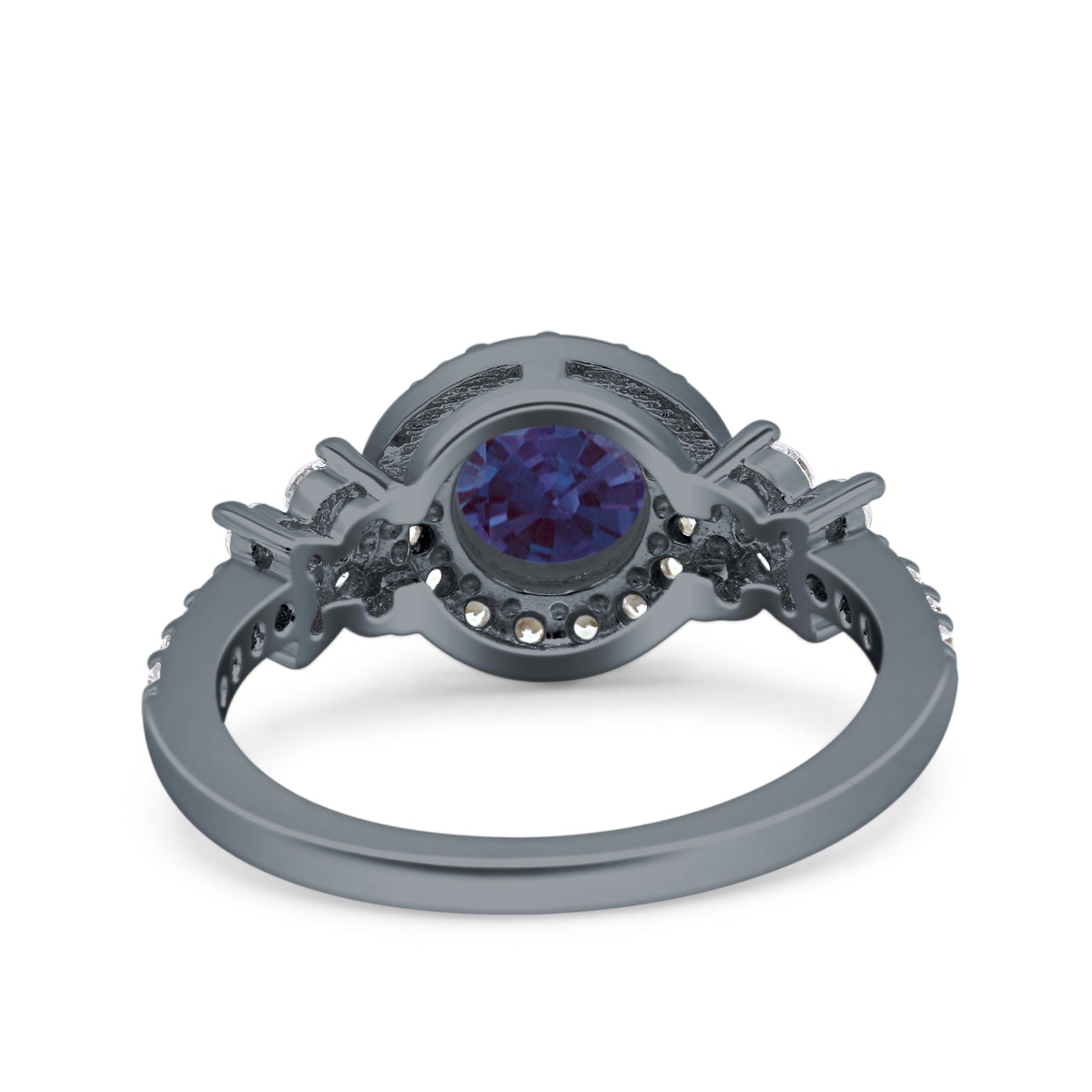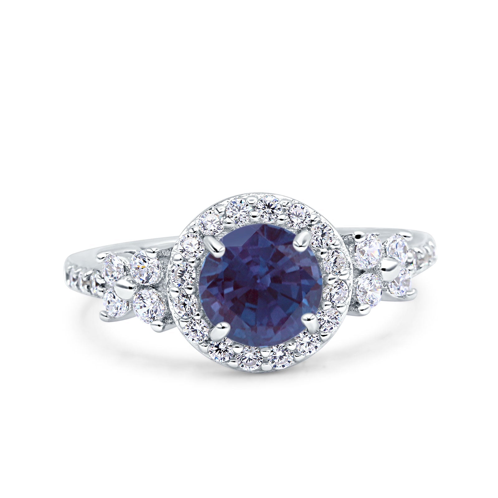 Art Deco Round Lab Alexandrite Floral Ring 925 Sterling Silver