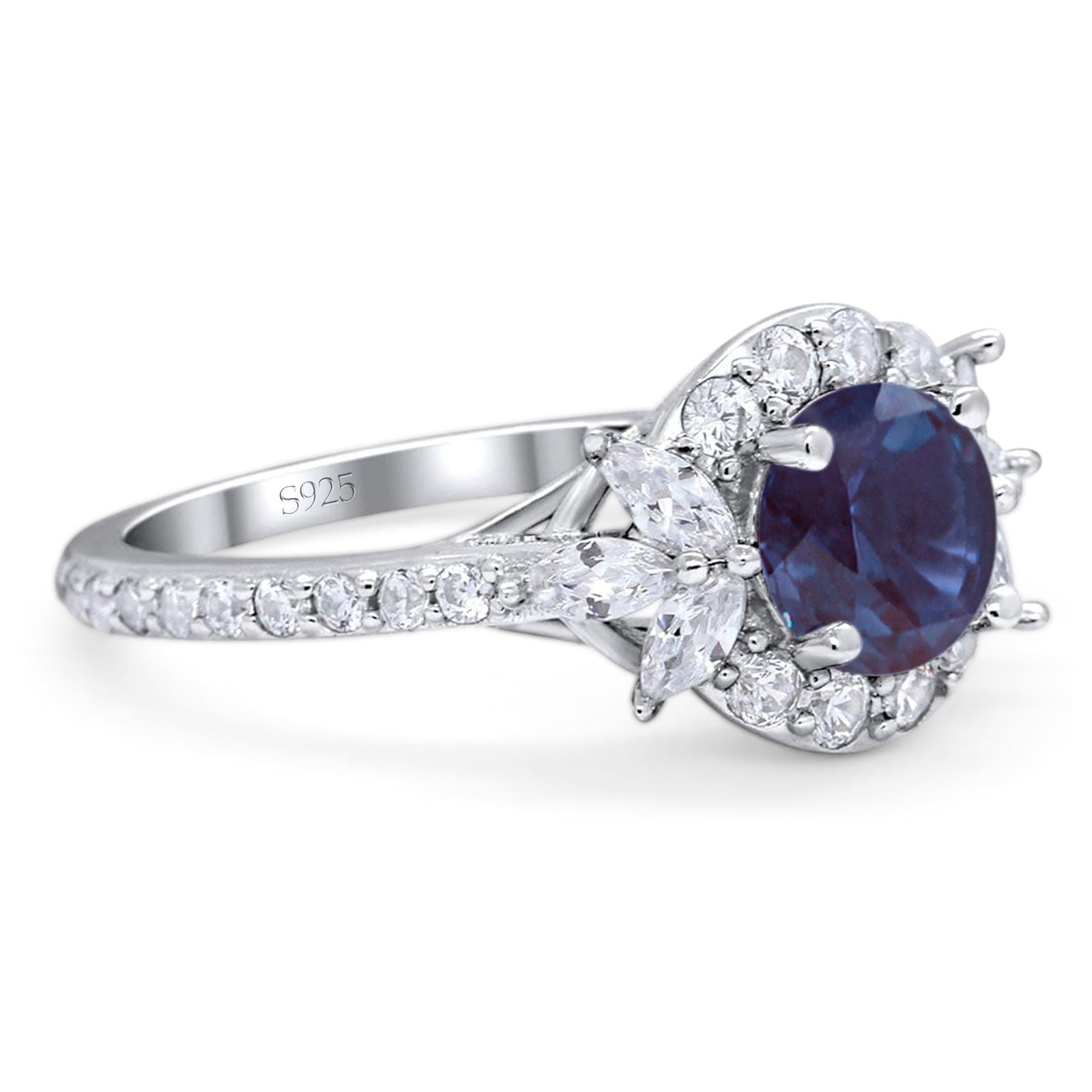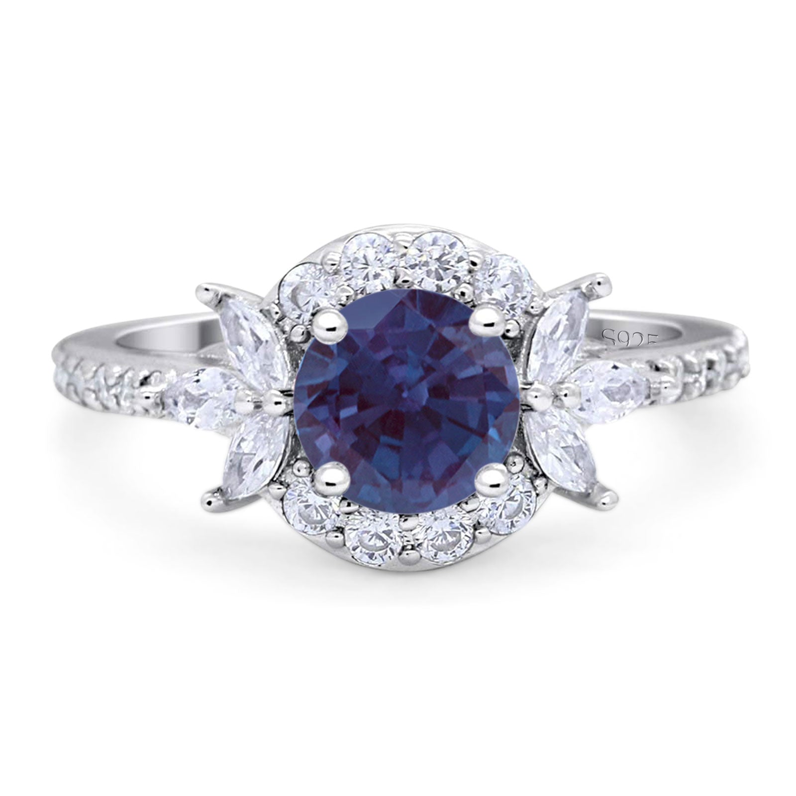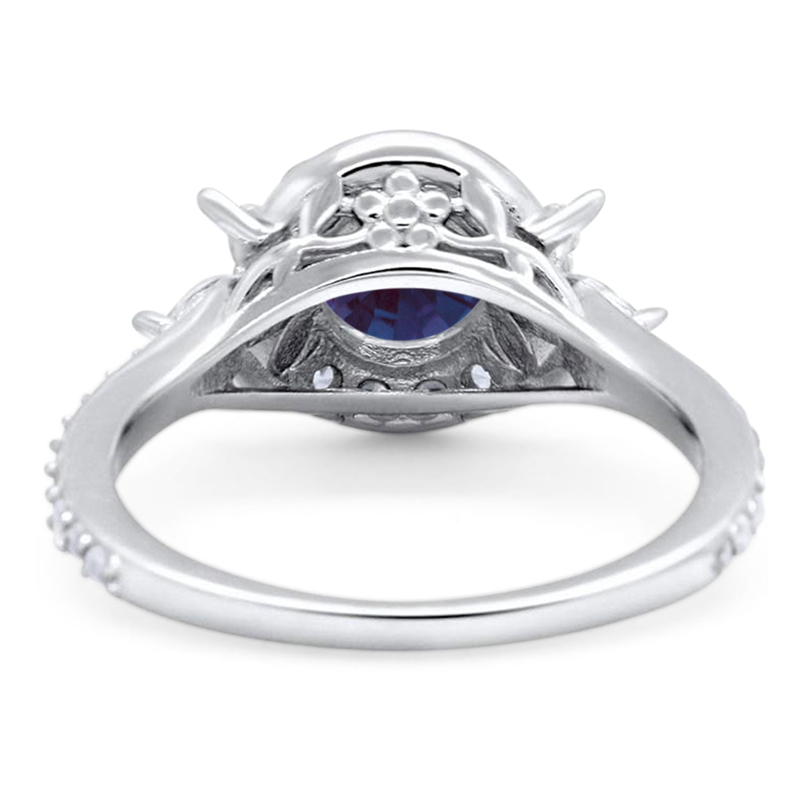 Art Deco Round Lab Alexandrite Leaf Style Ring 925 Sterling Silver