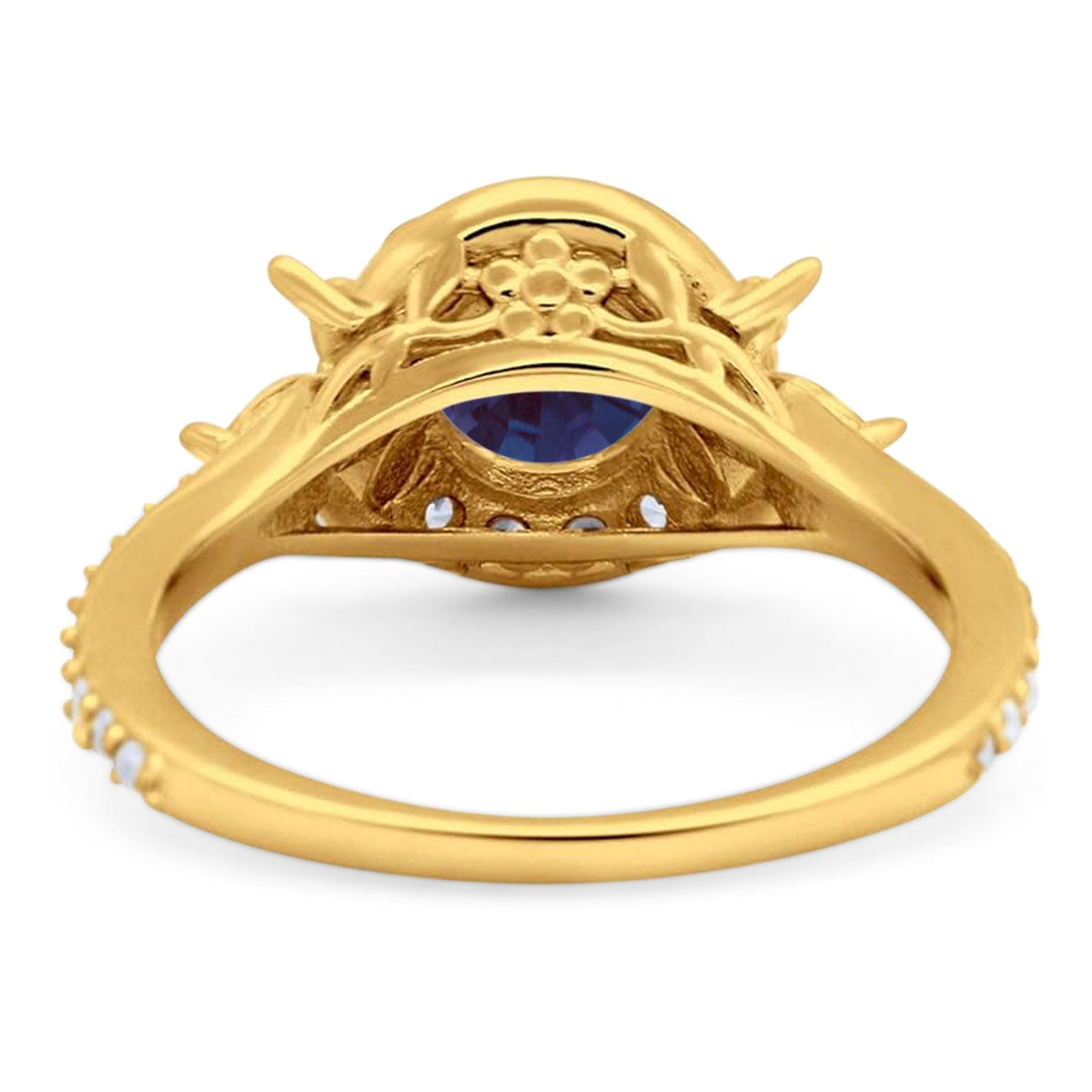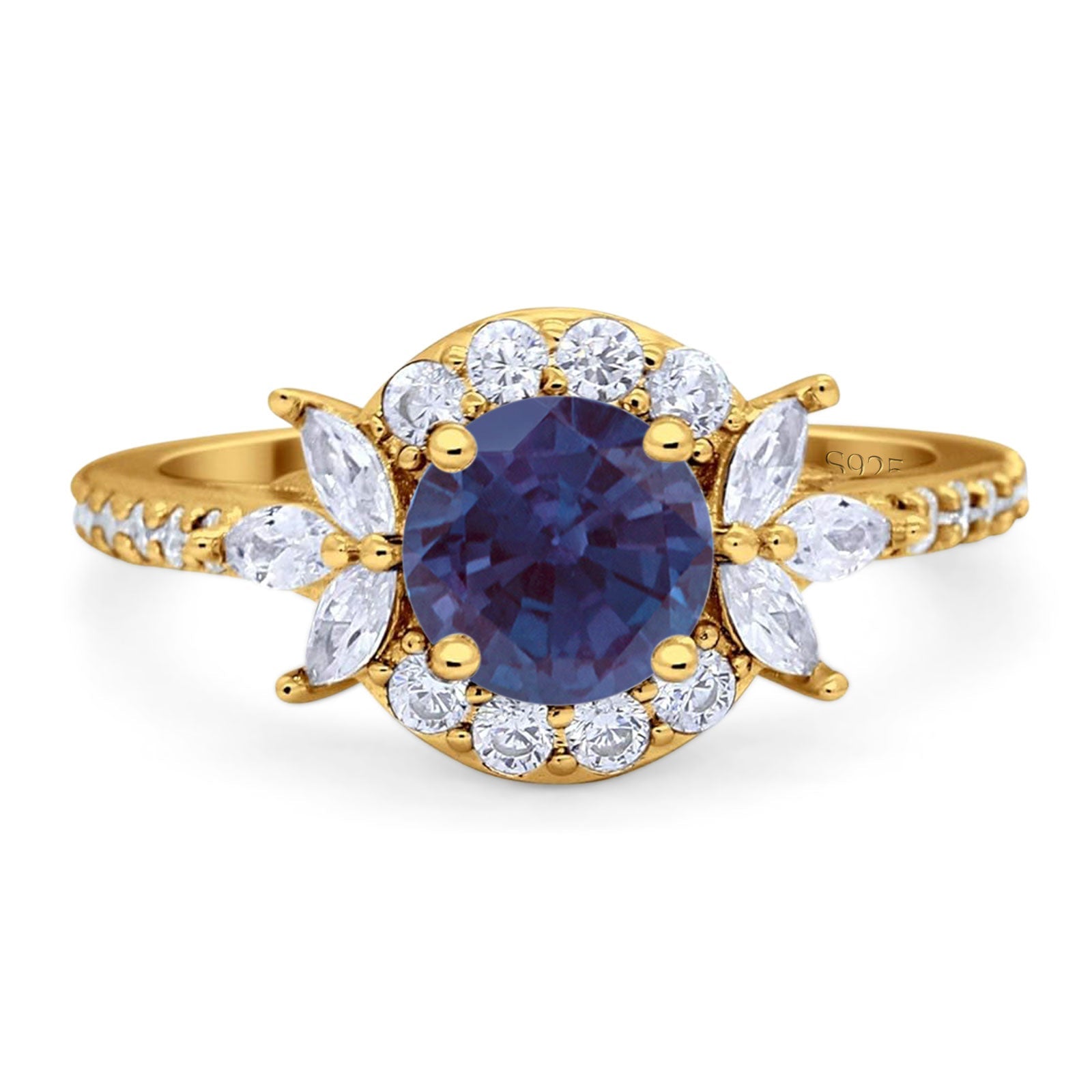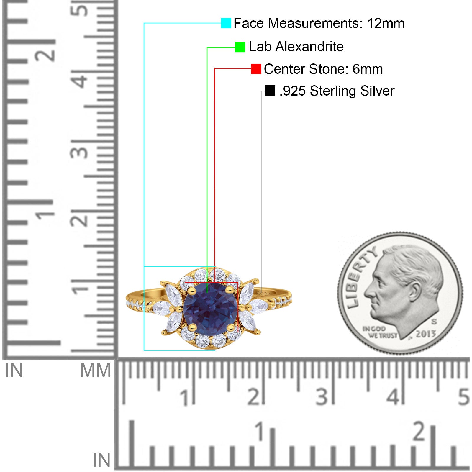 Art Deco Round Lab Alexandrite Leaf Style Ring 925 Sterling Silver