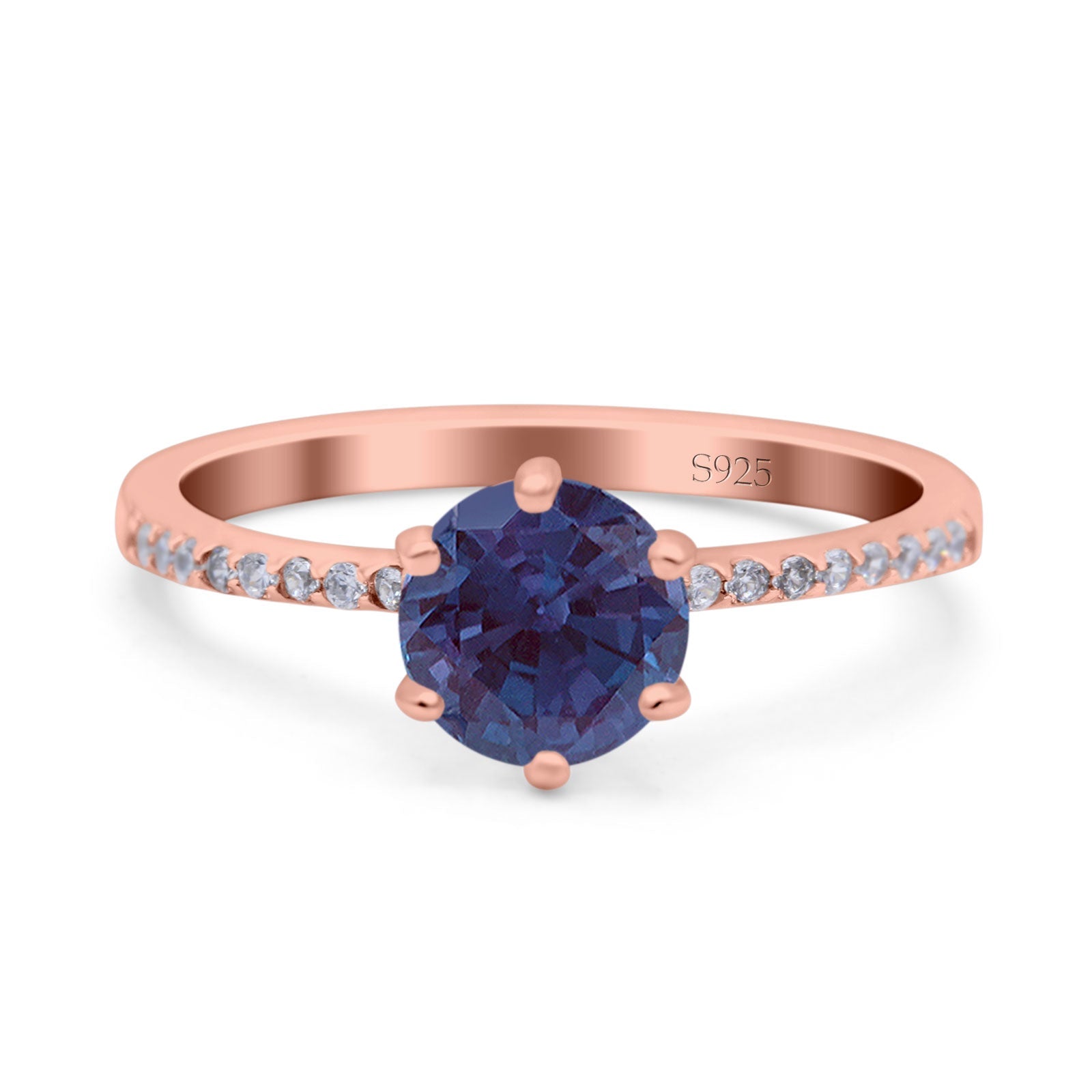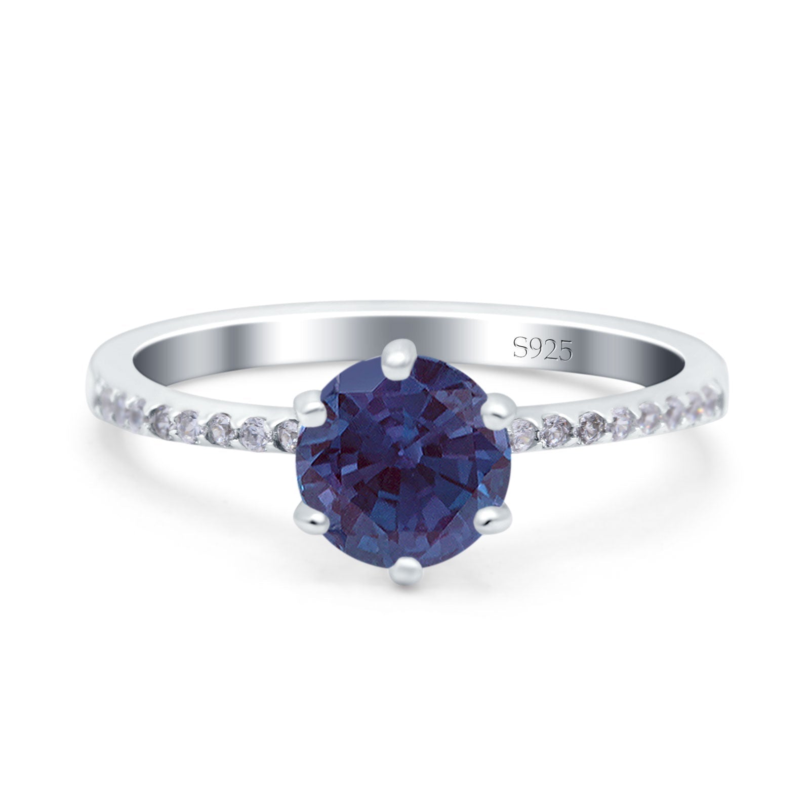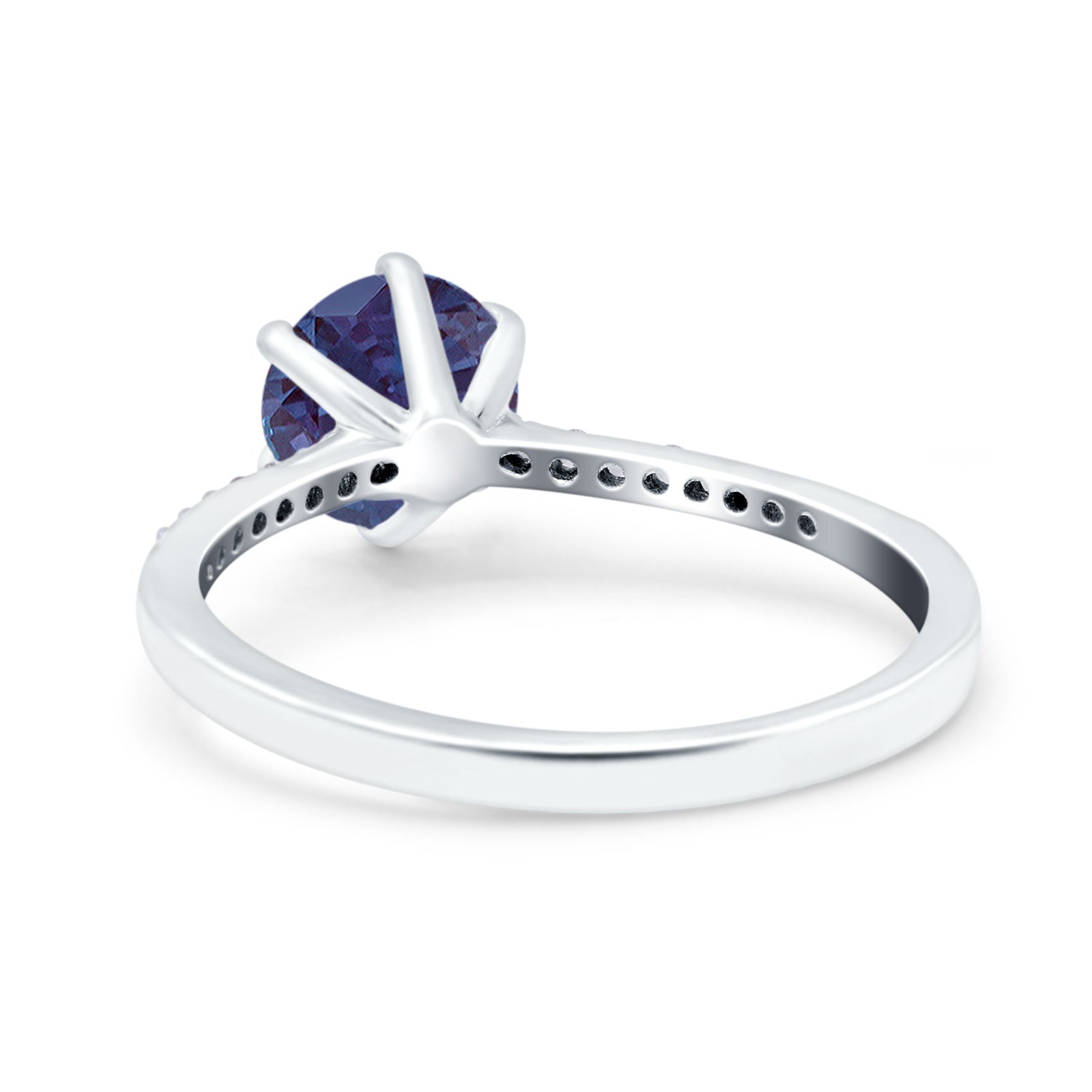 Art Deco Round Lab Alexandrite Wedding Ring 925 Sterling Silver