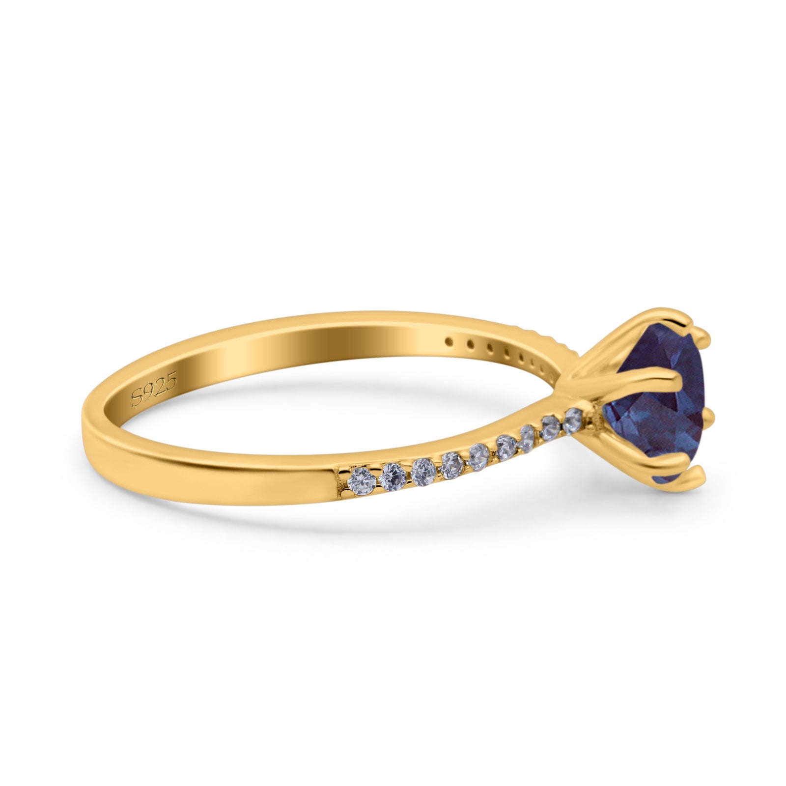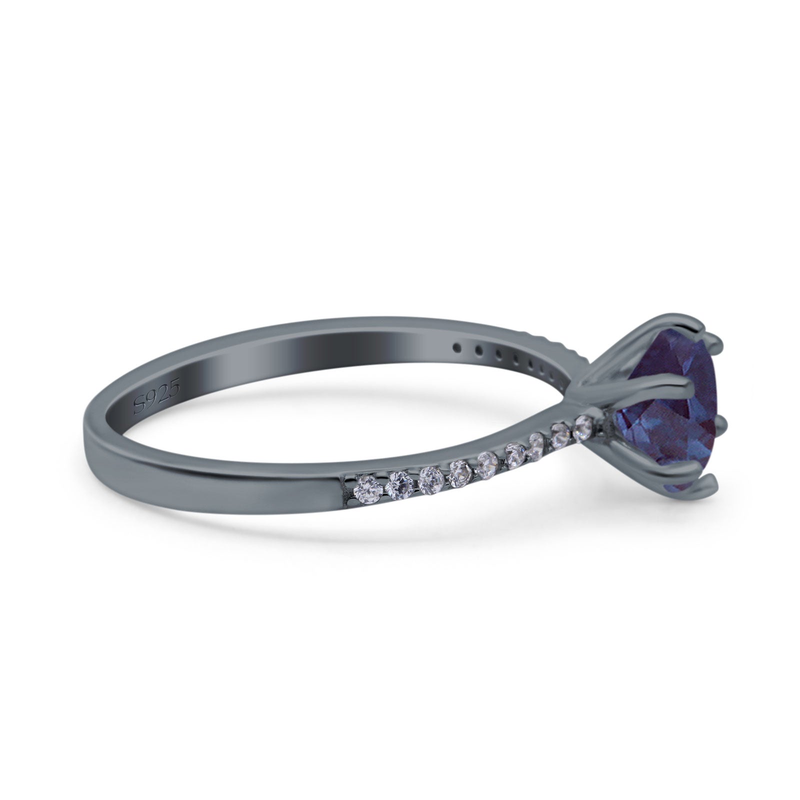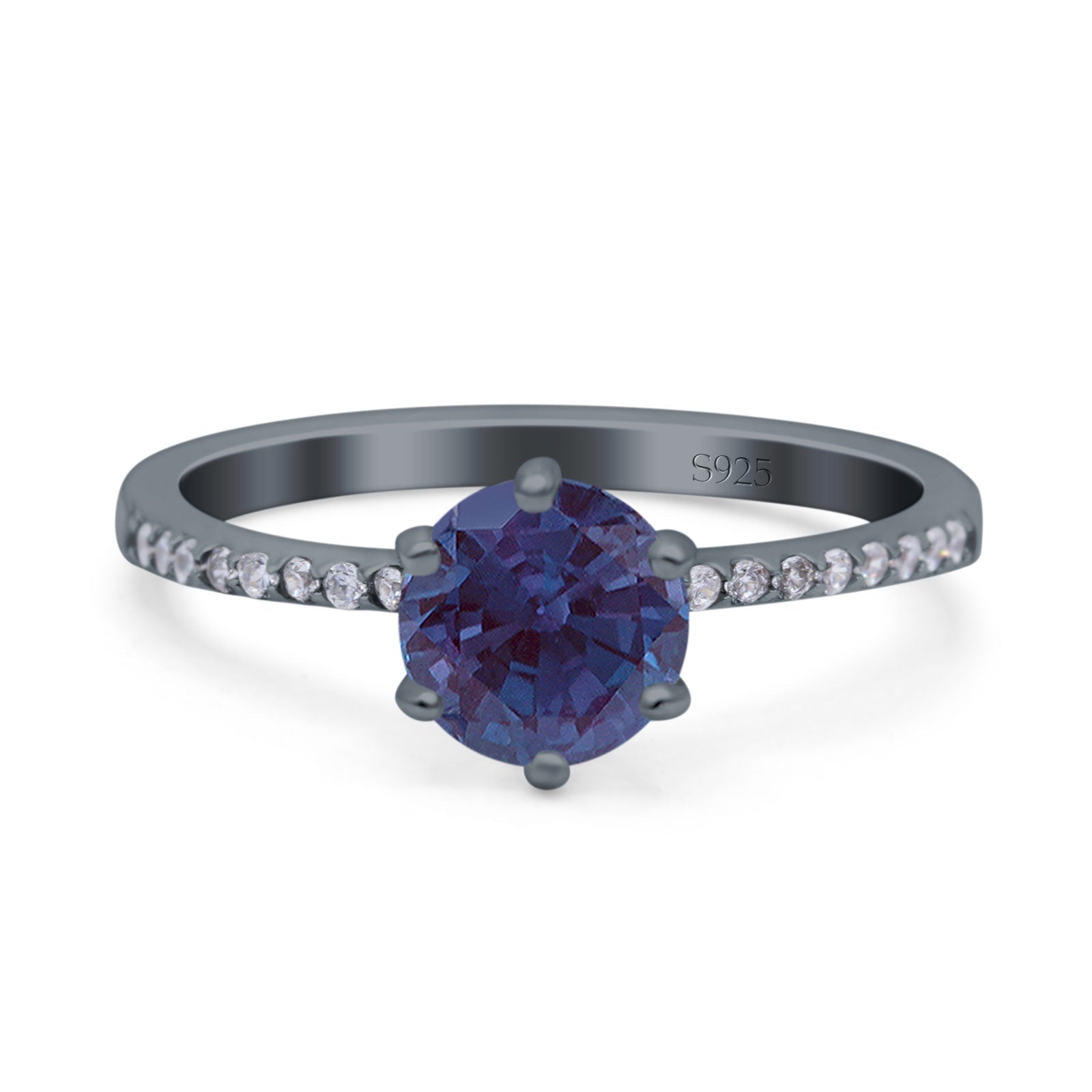 Art Deco Round Lab Alexandrite Wedding Ring 925 Sterling Silver