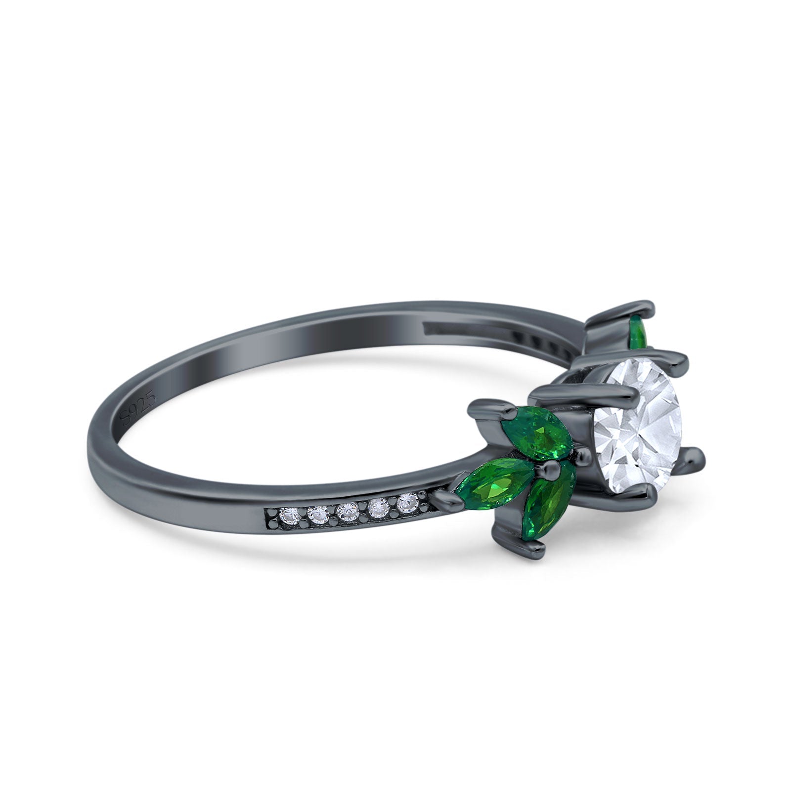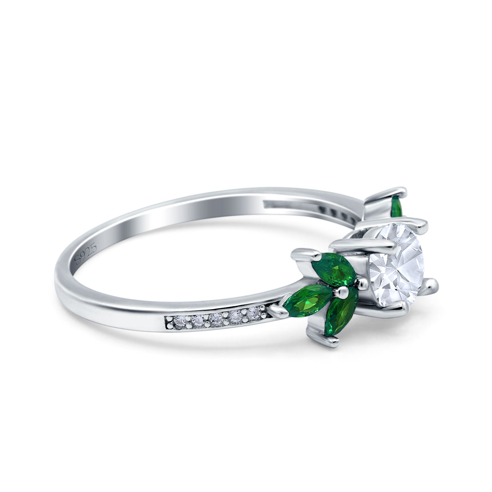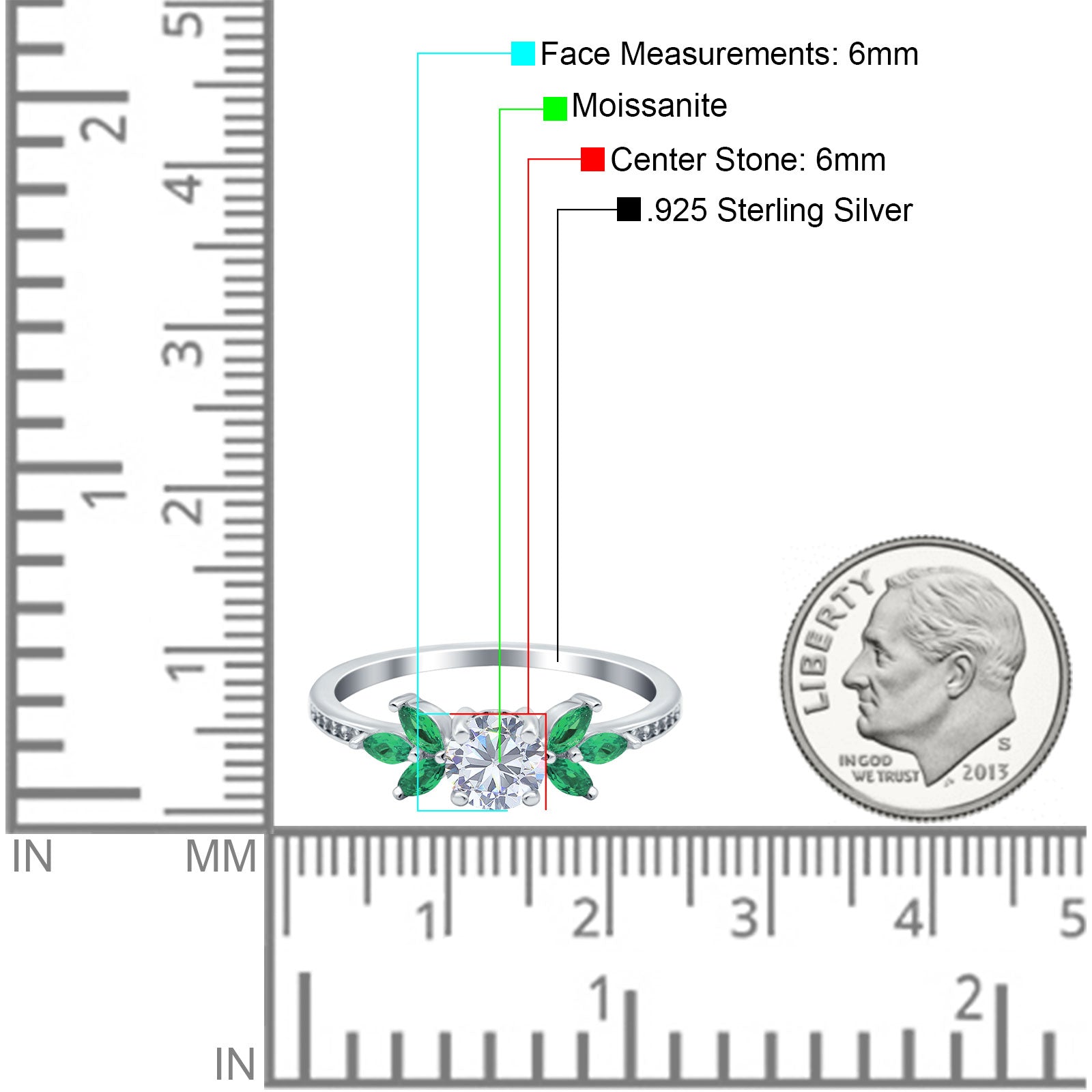 Art Deco Round Moissanite Floral Leaf Ring 925 Sterling Silver