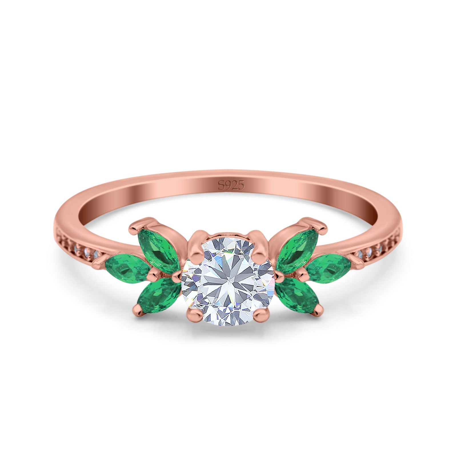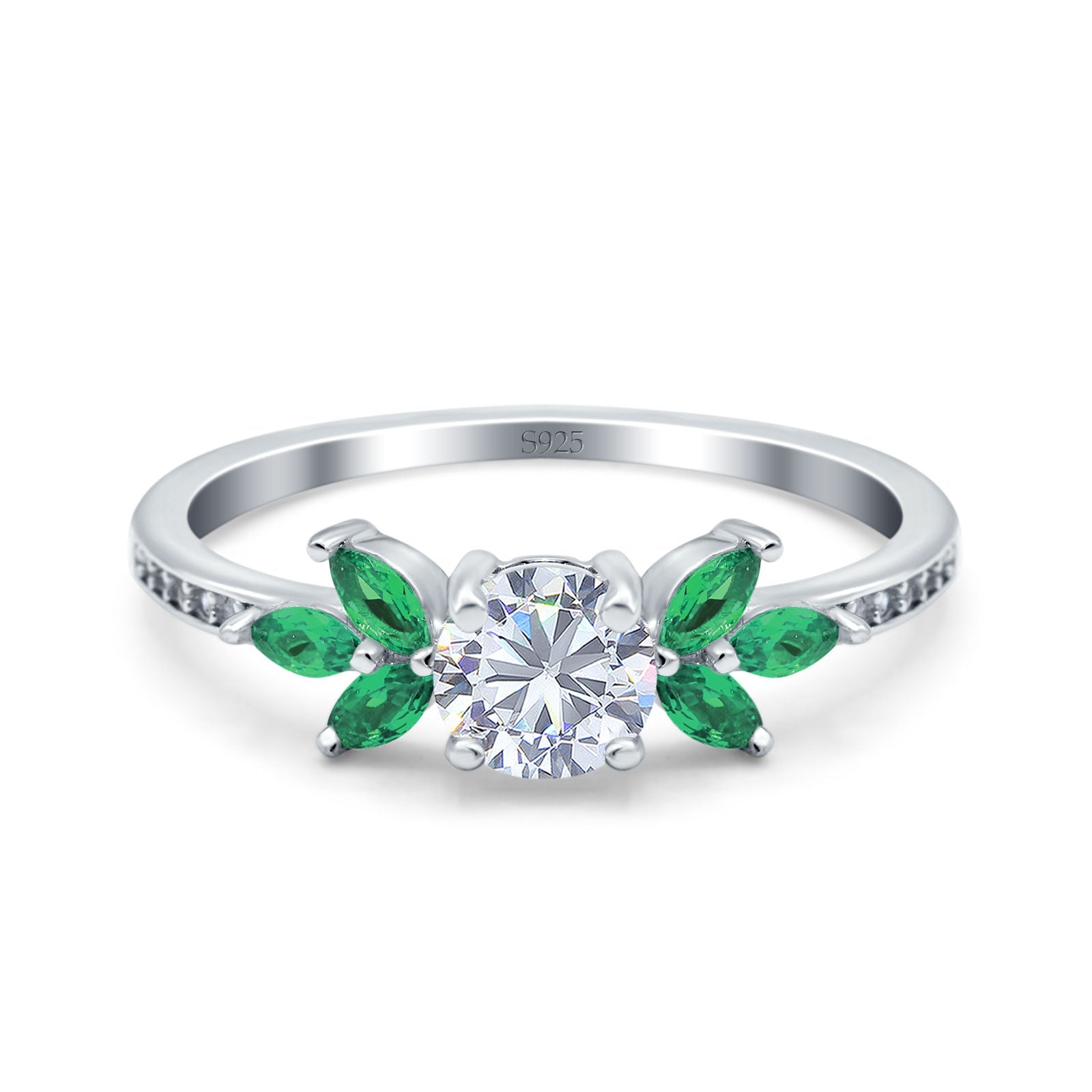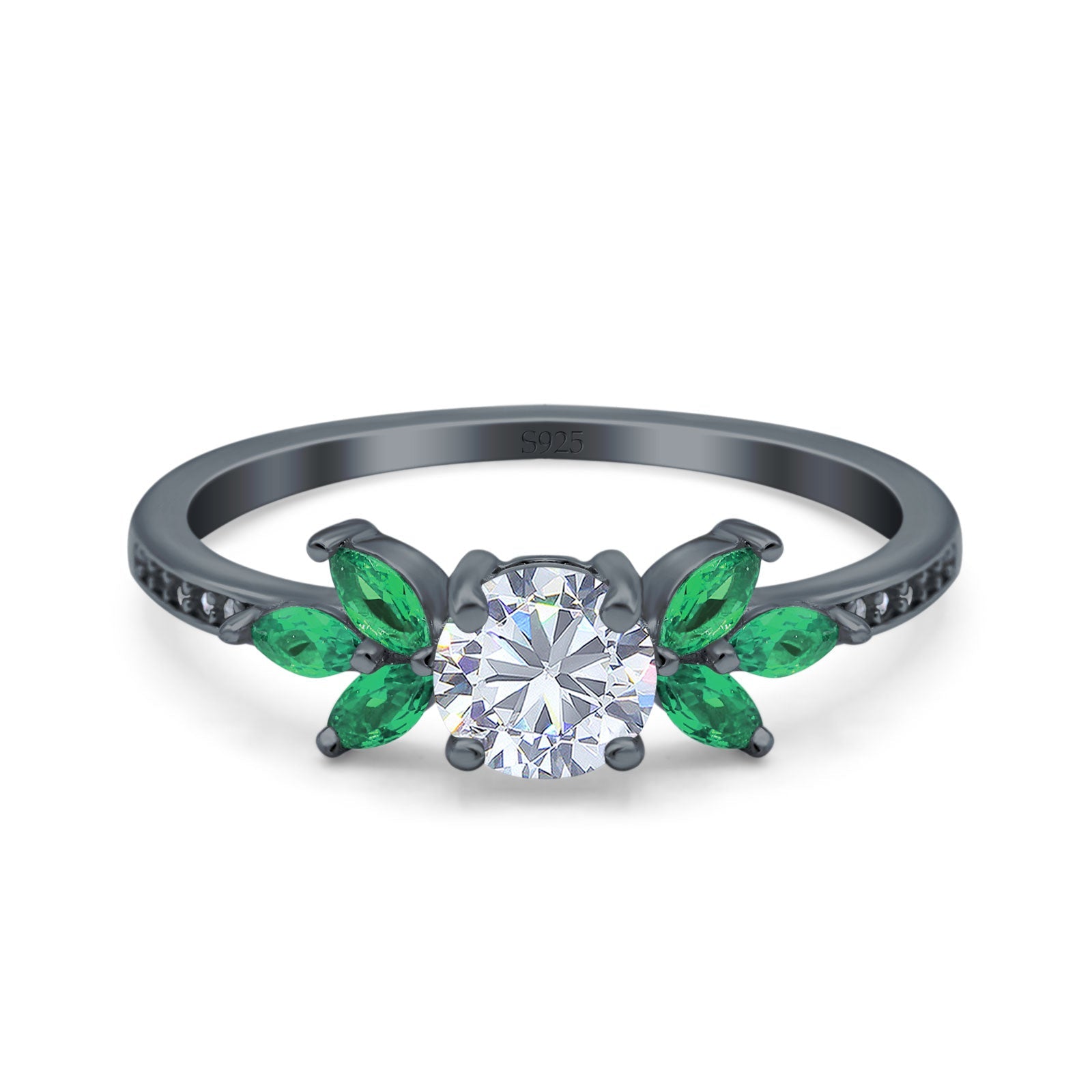 Art Deco Round Moissanite Floral Leaf Ring 925 Sterling Silver