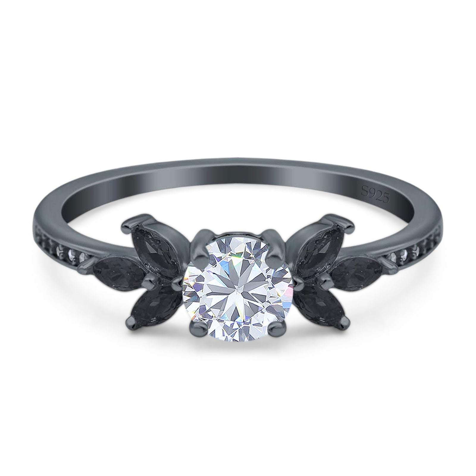 Art Deco Round Moissanite Floral Ring 925 Sterling Silver