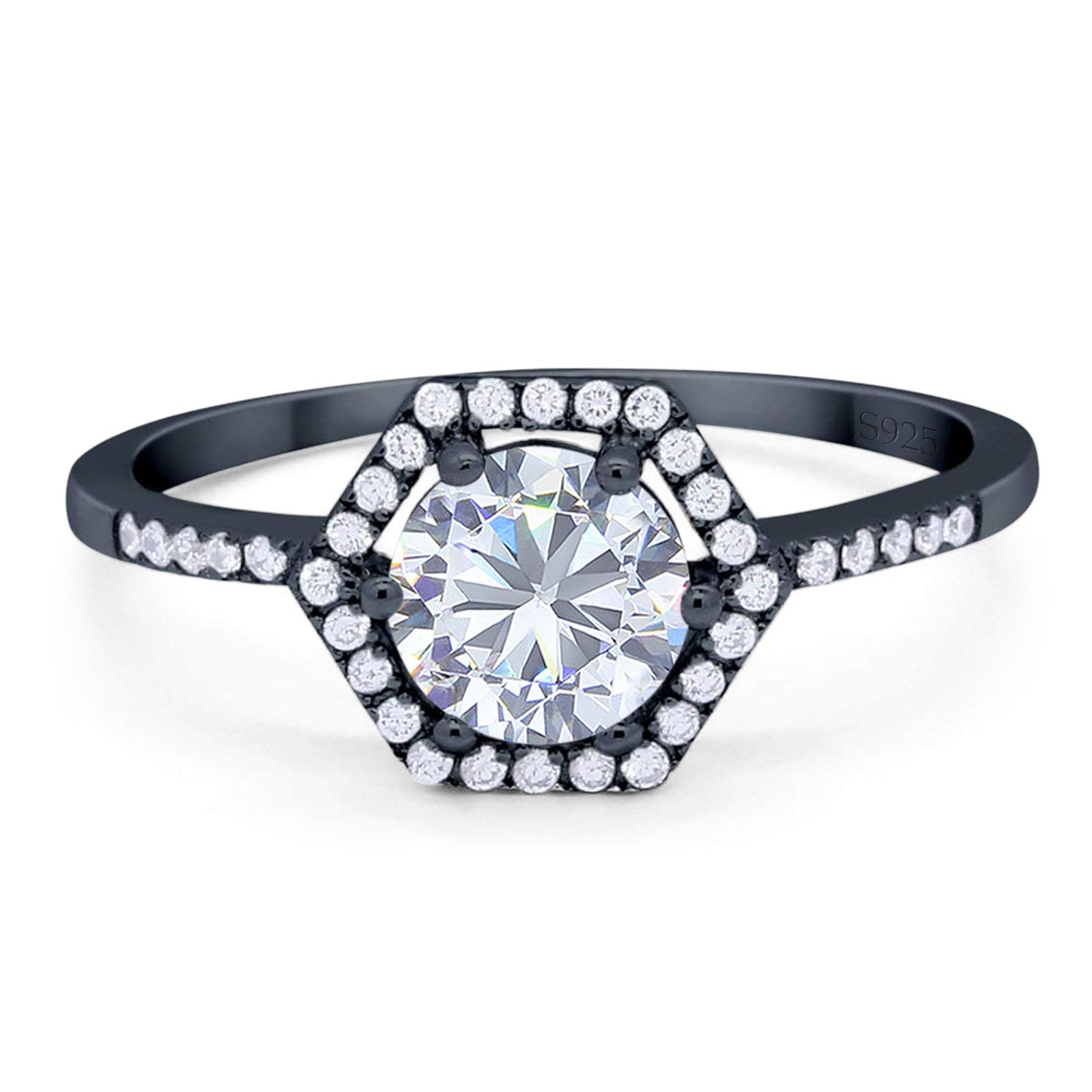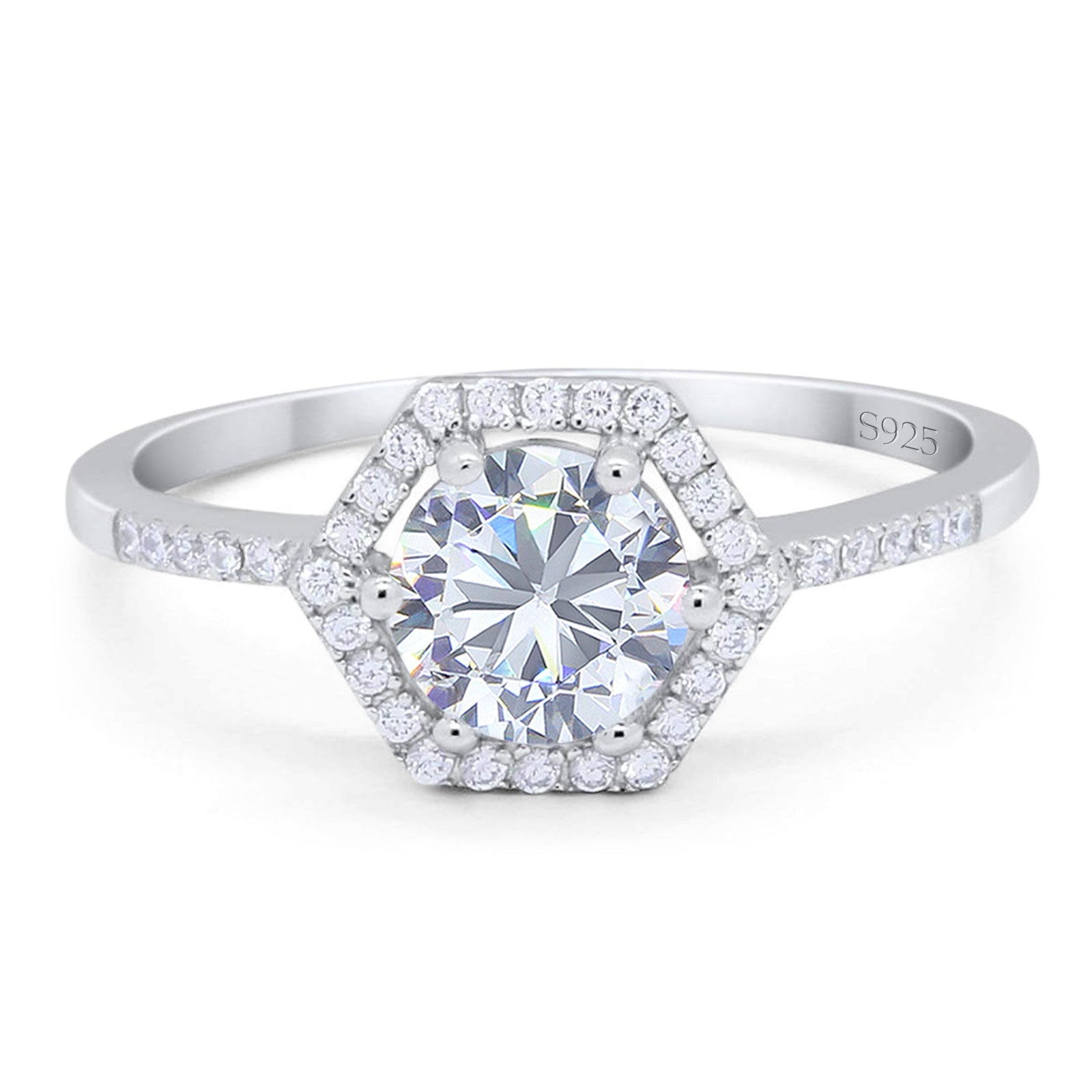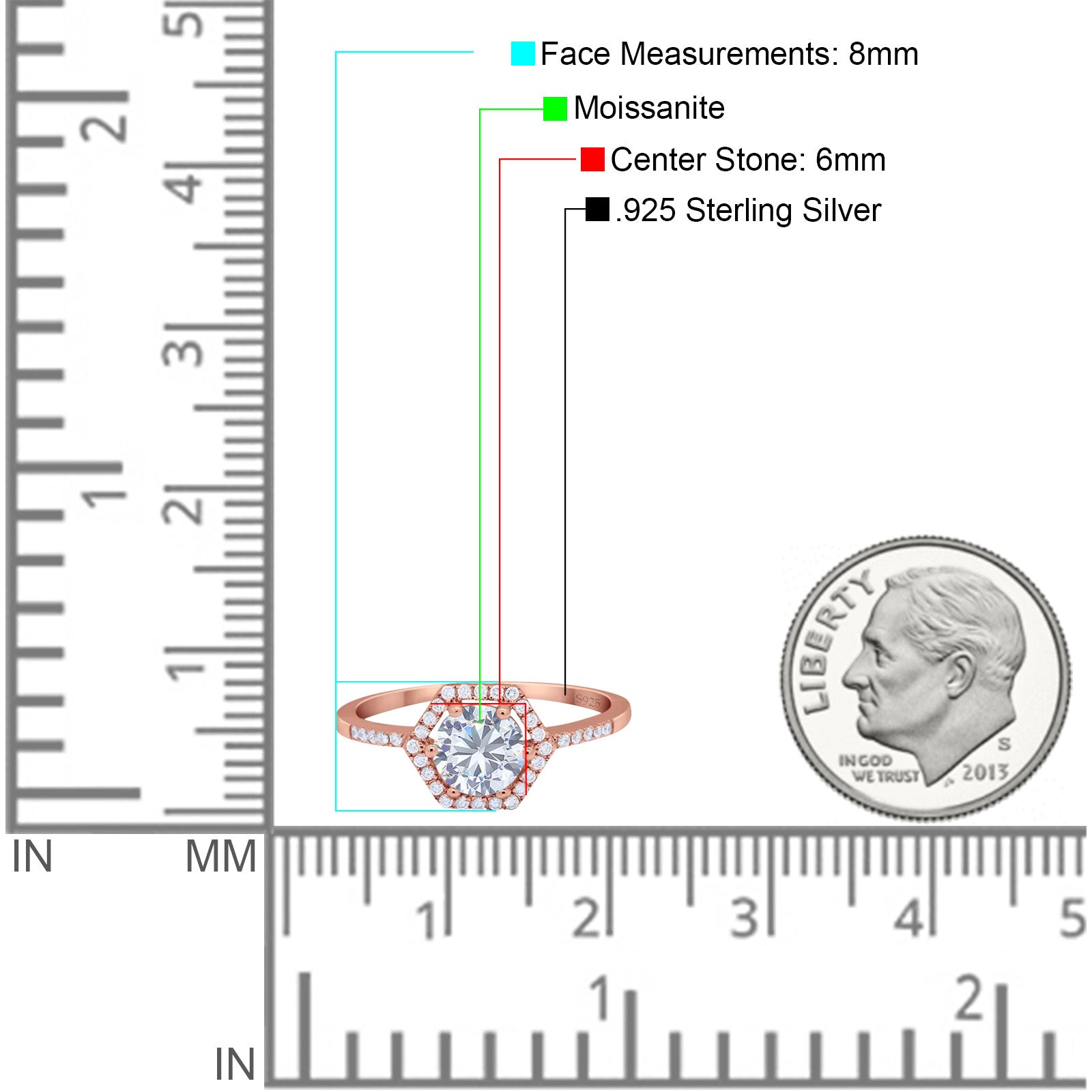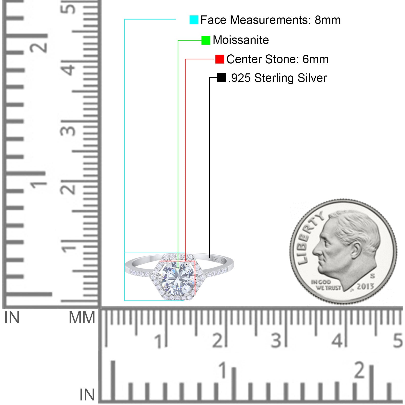 Art Deco Round Moissanite Hexagonal Ring 925 Sterling Silver