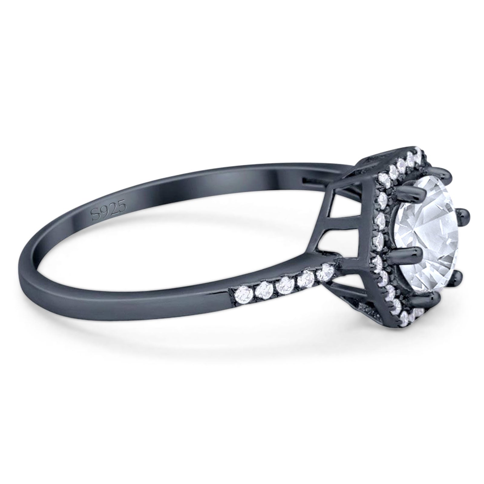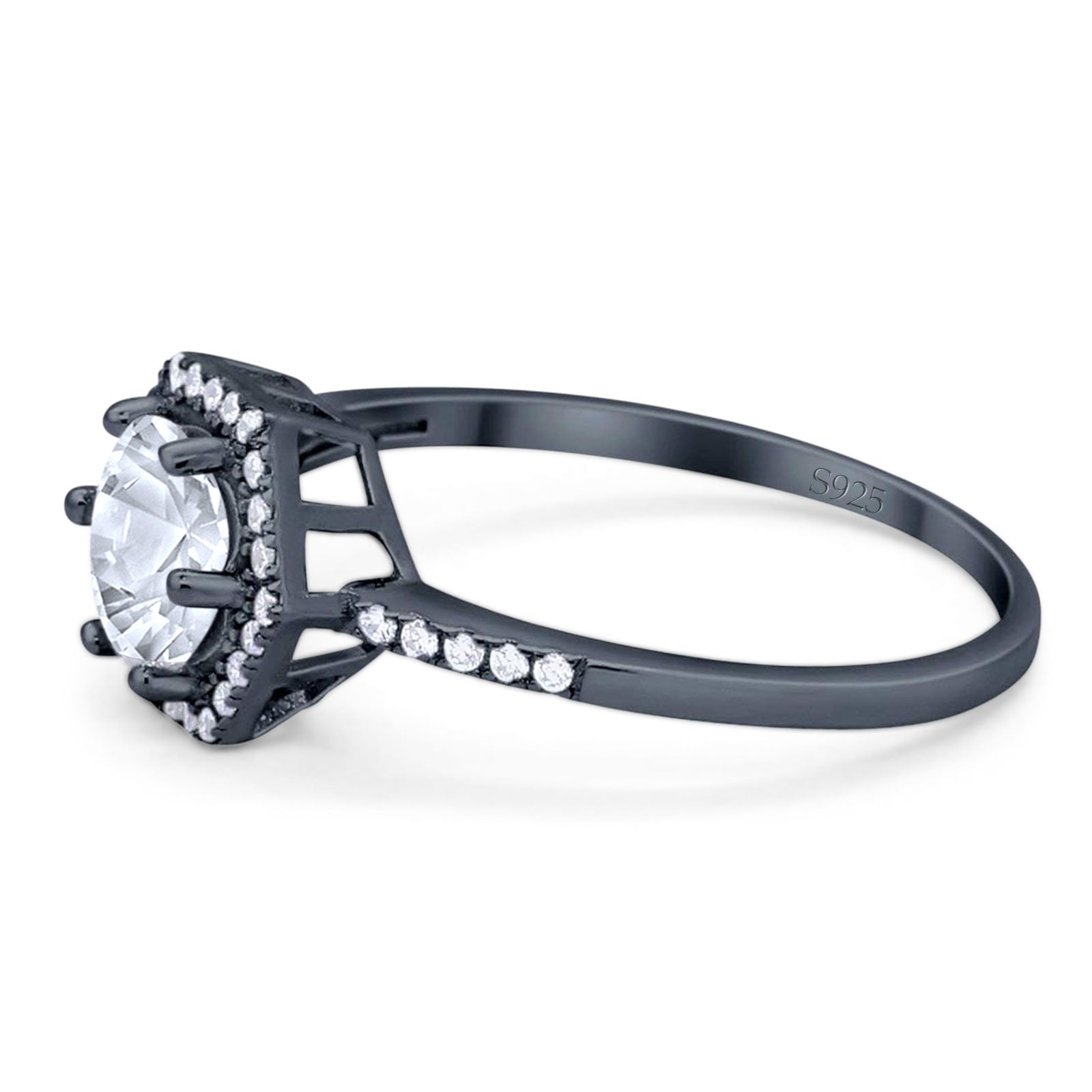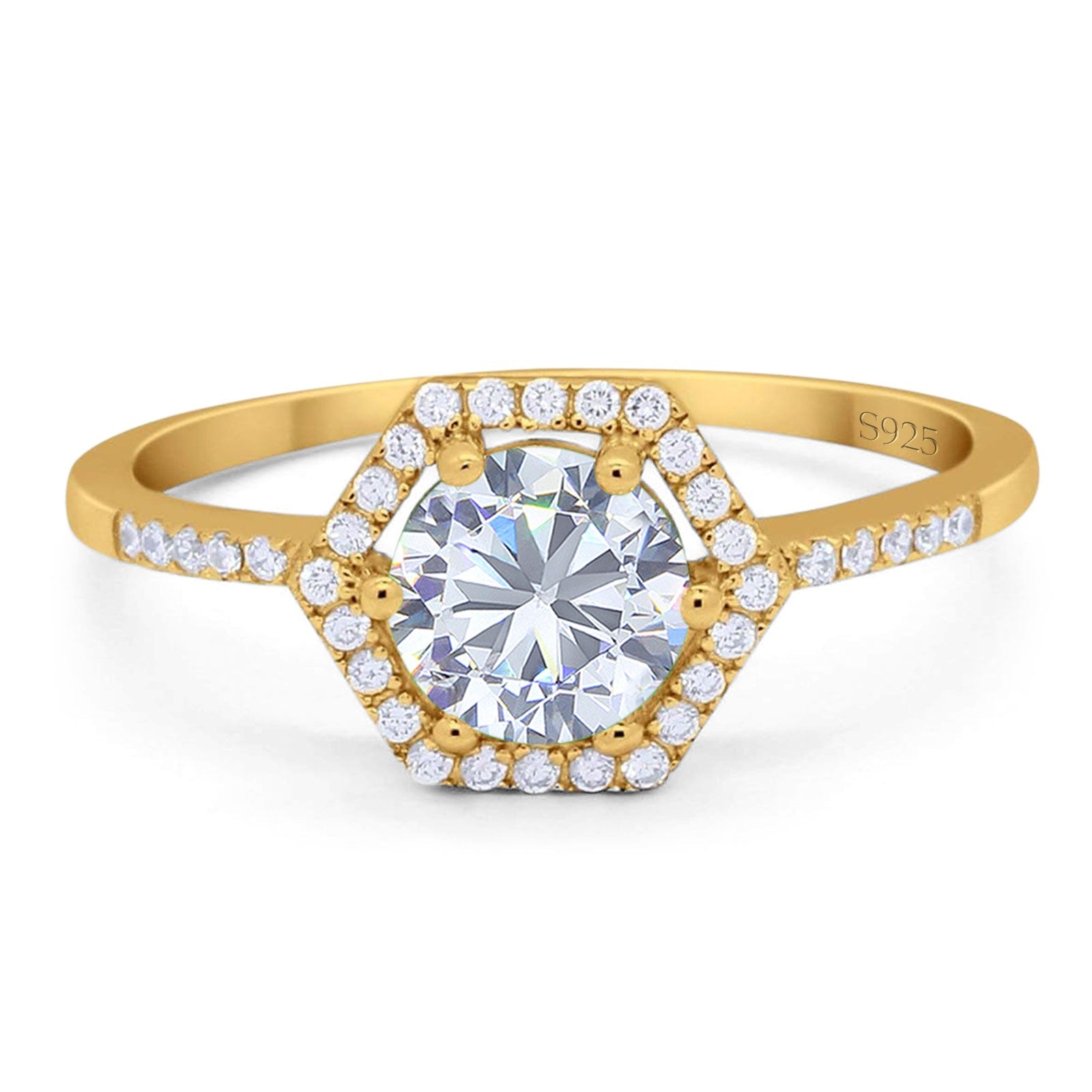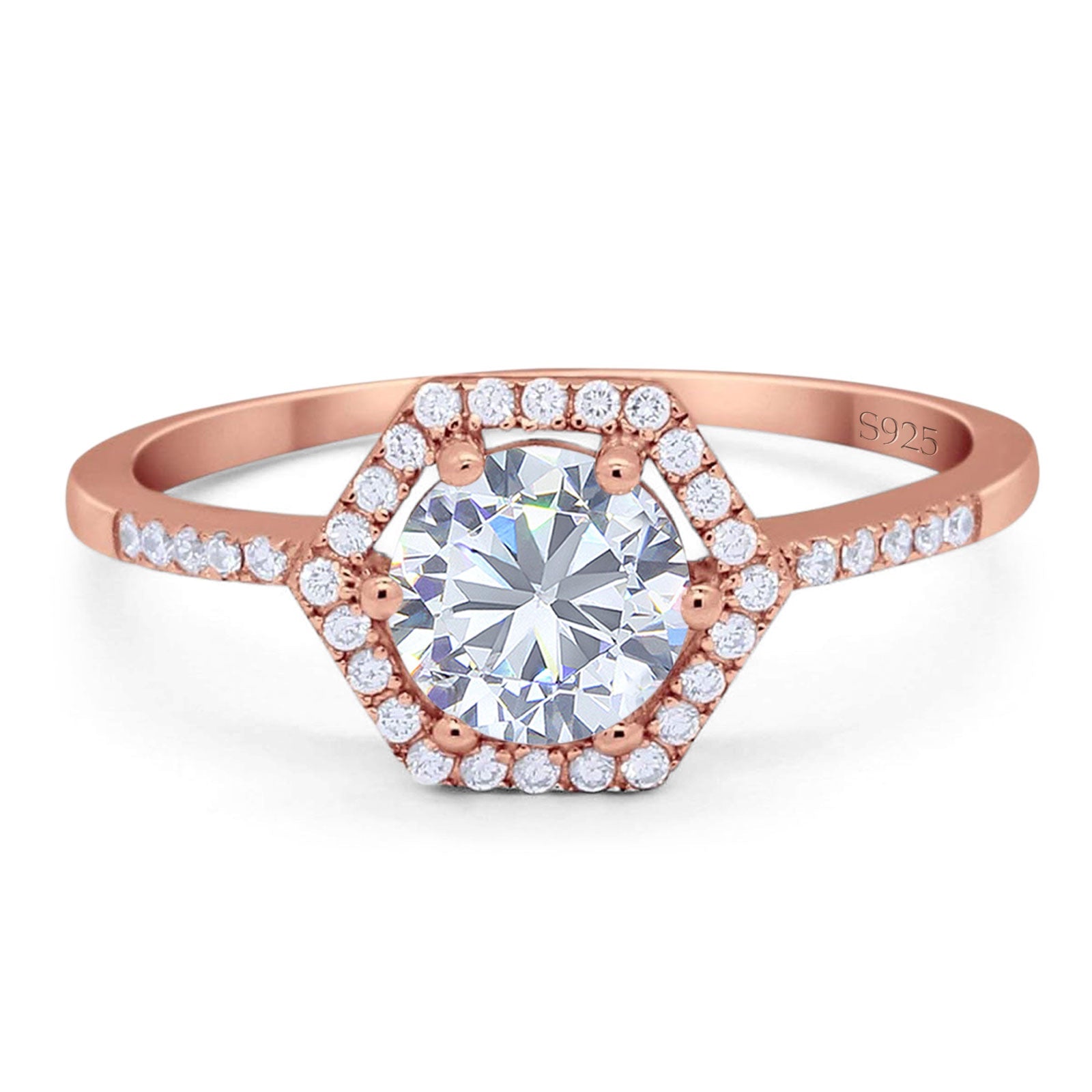 Art Deco Round Moissanite Hexagonal Ring 925 Sterling Silver