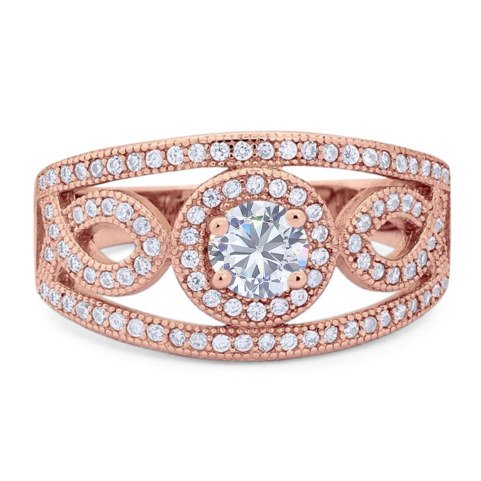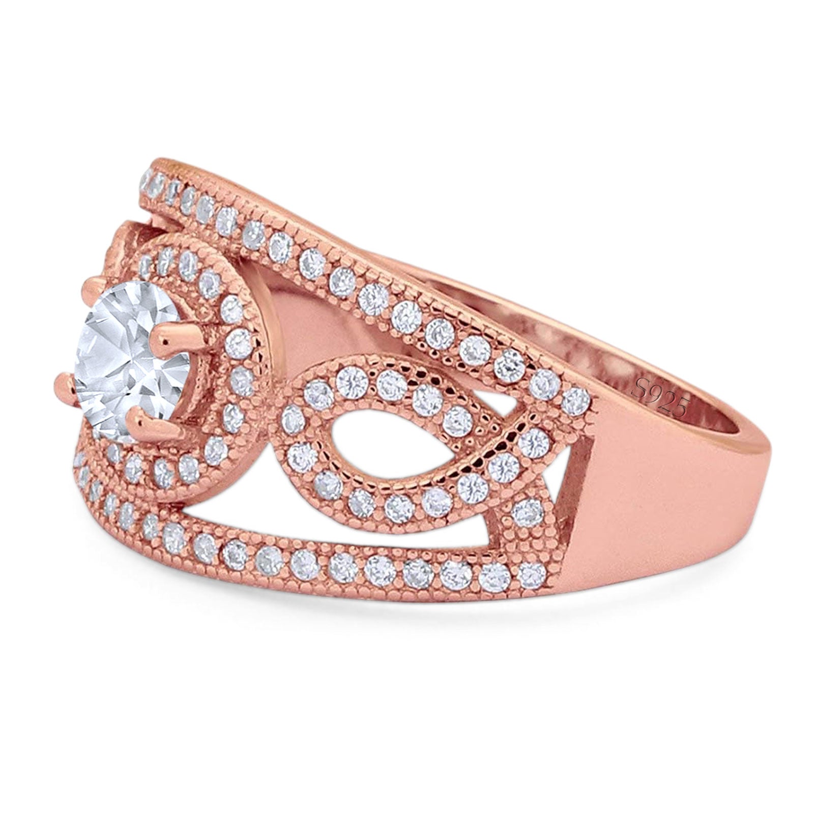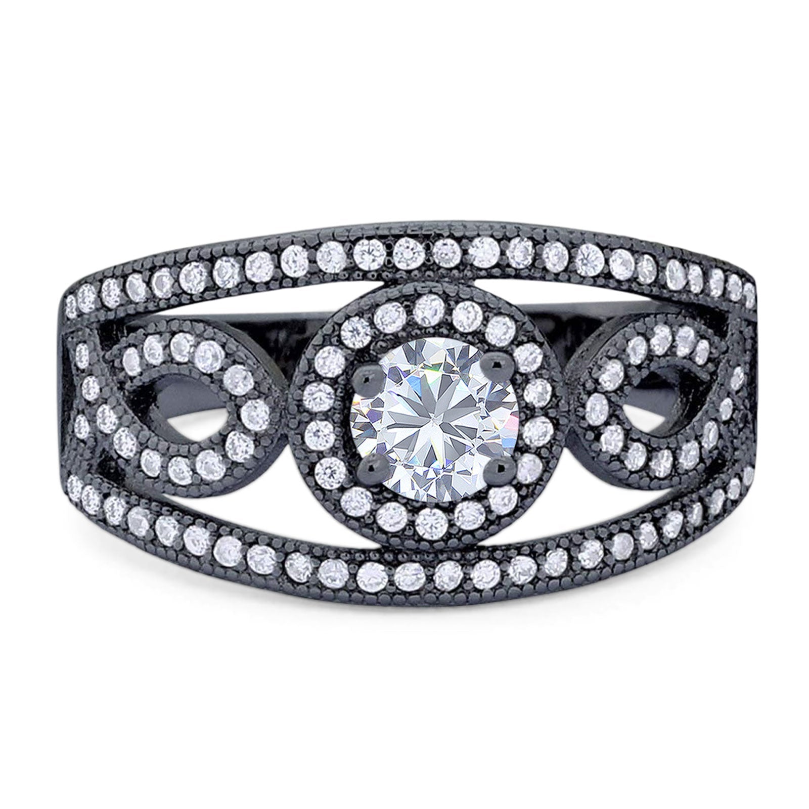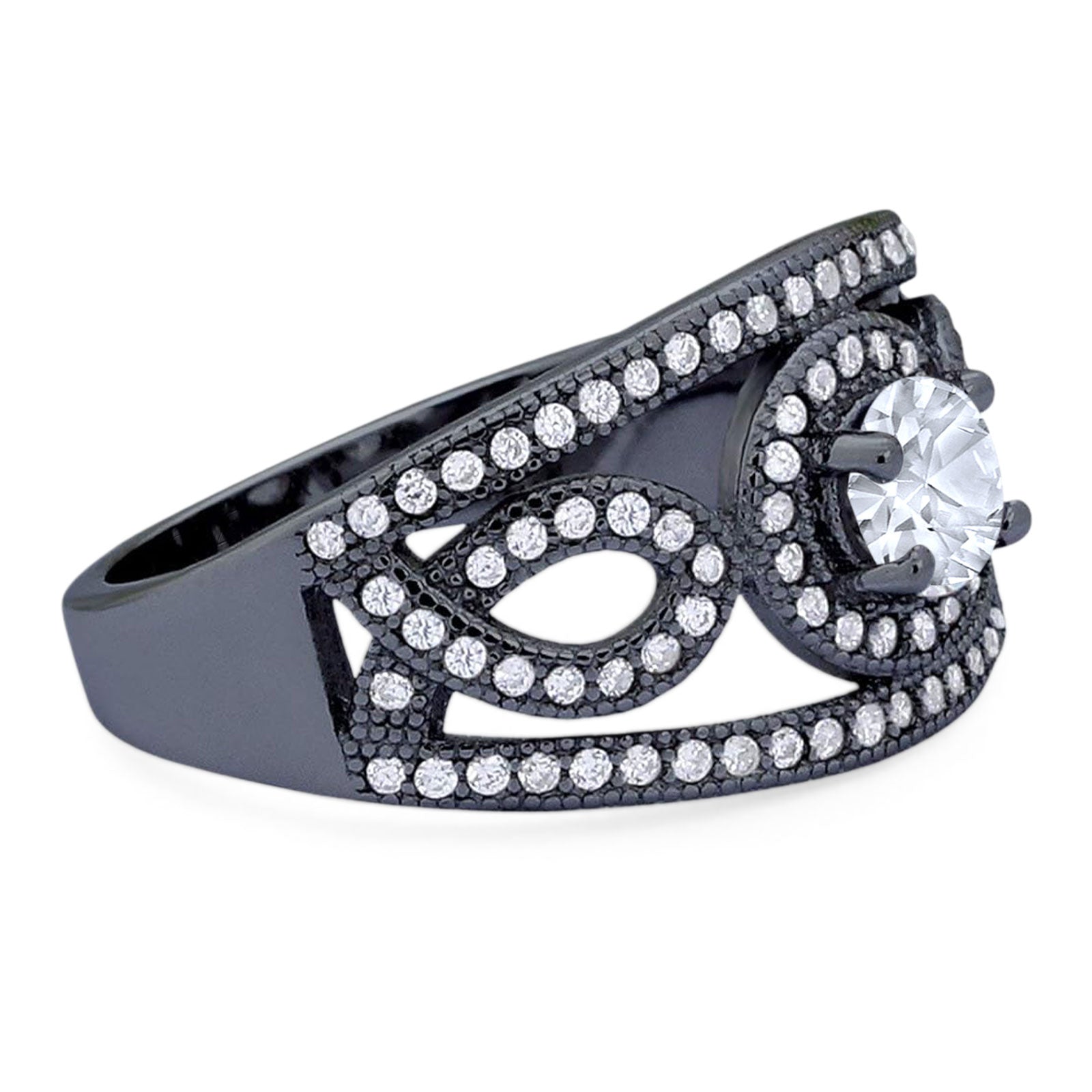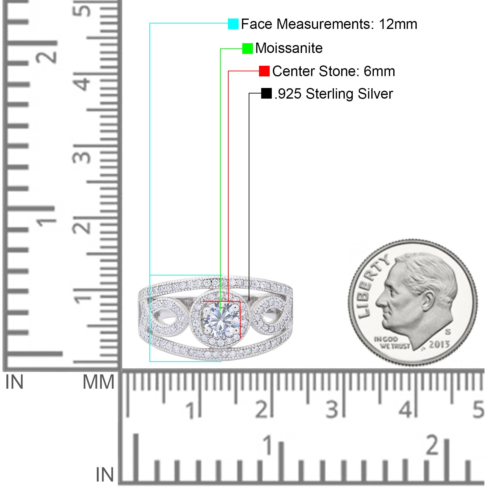 Art Deco Round Moissanite Infinity Shank Ring 925 Sterling Silver