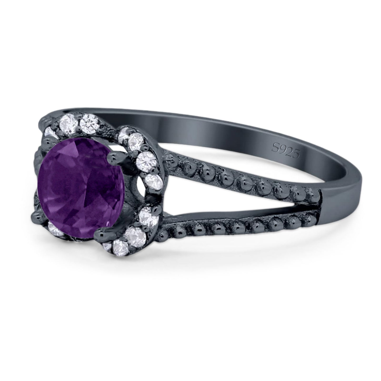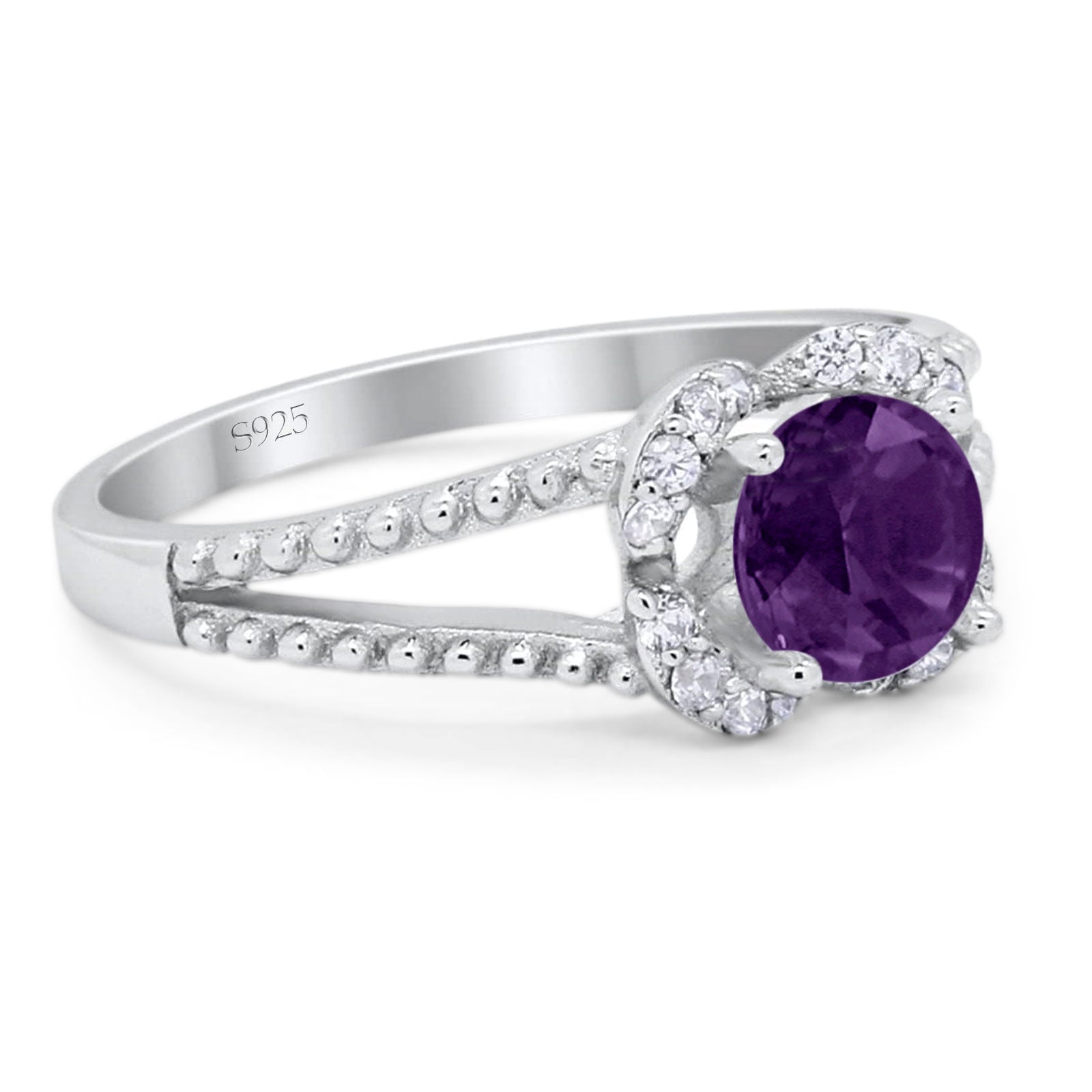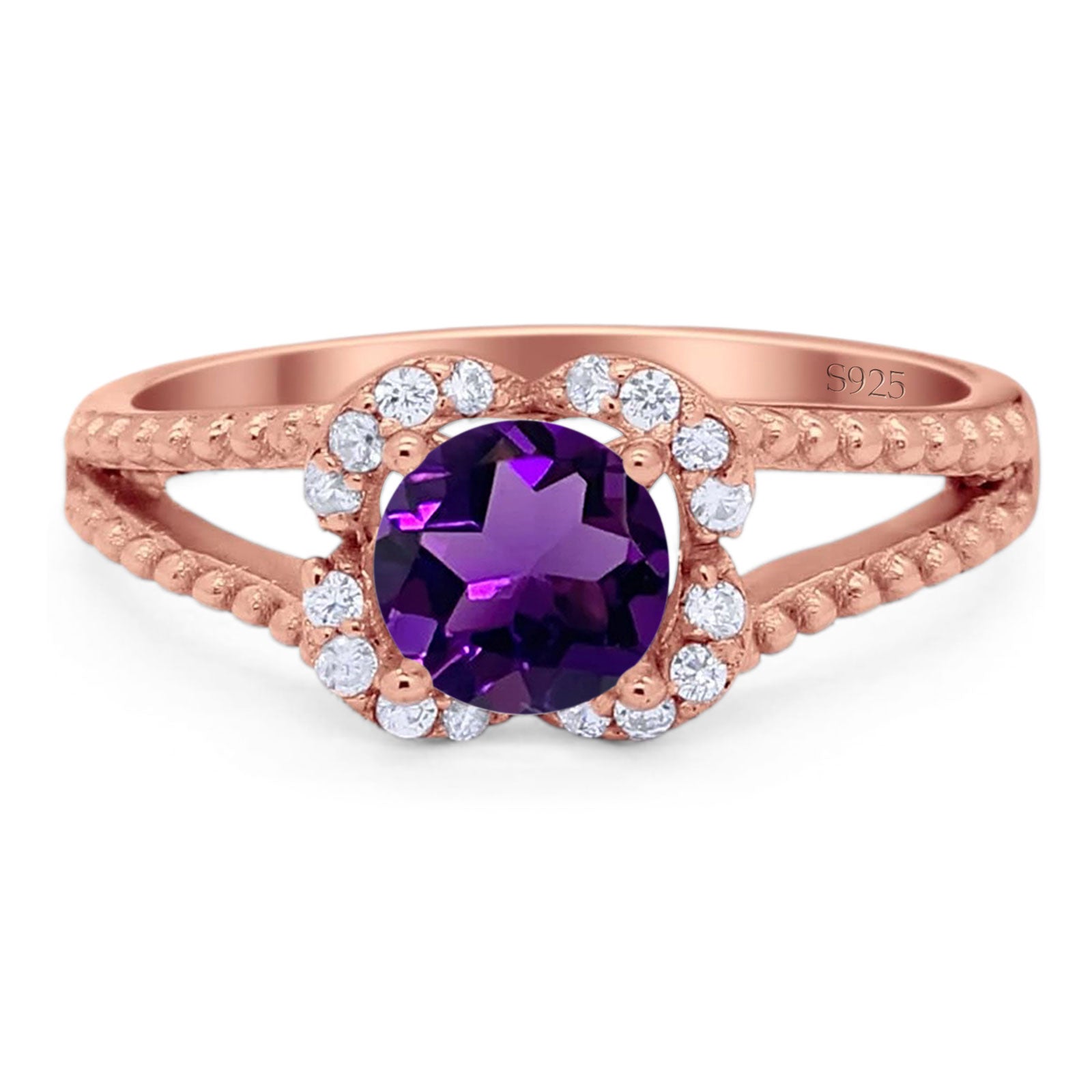 Art Deco Round Natural Amethyst Floral Ring 925 Sterling Silver