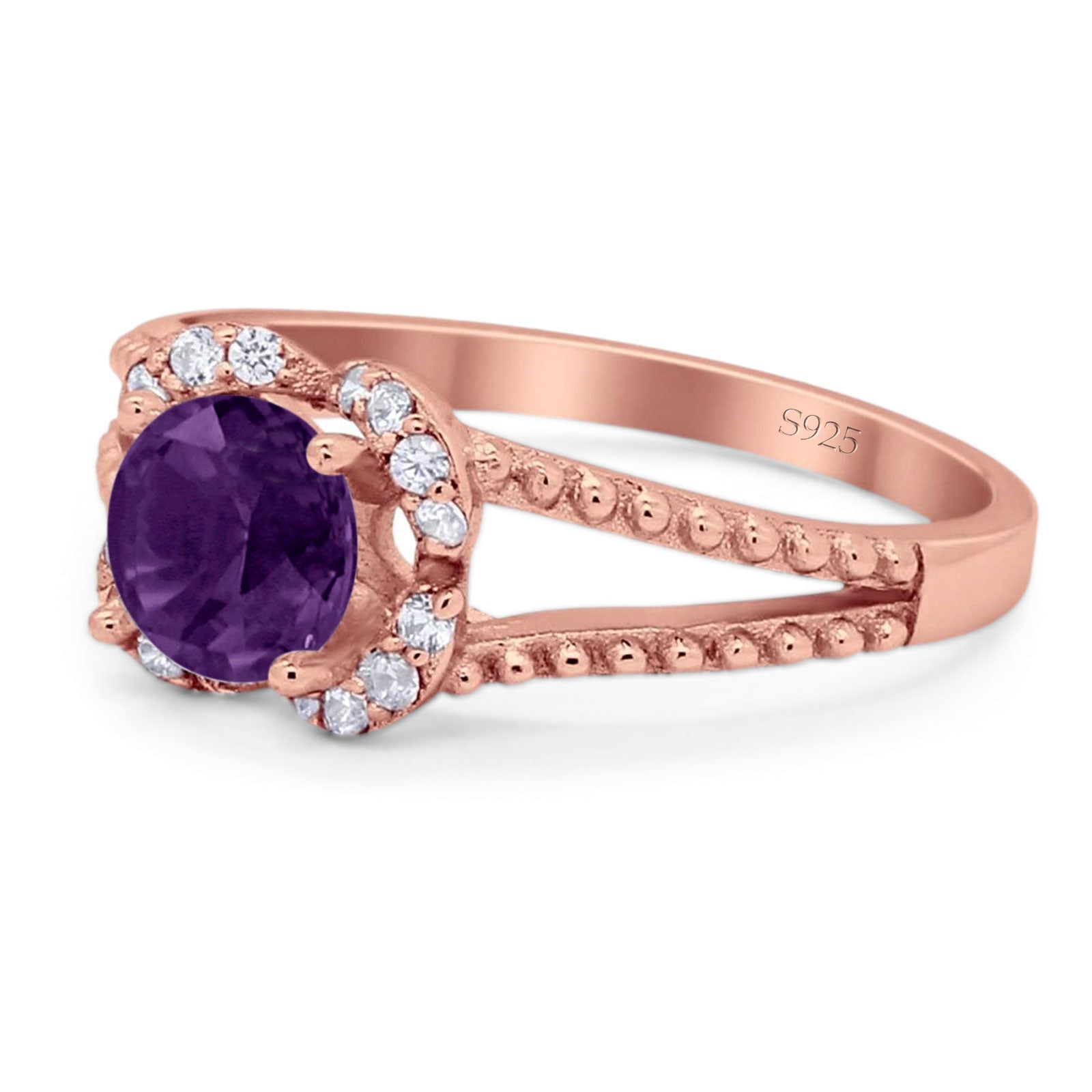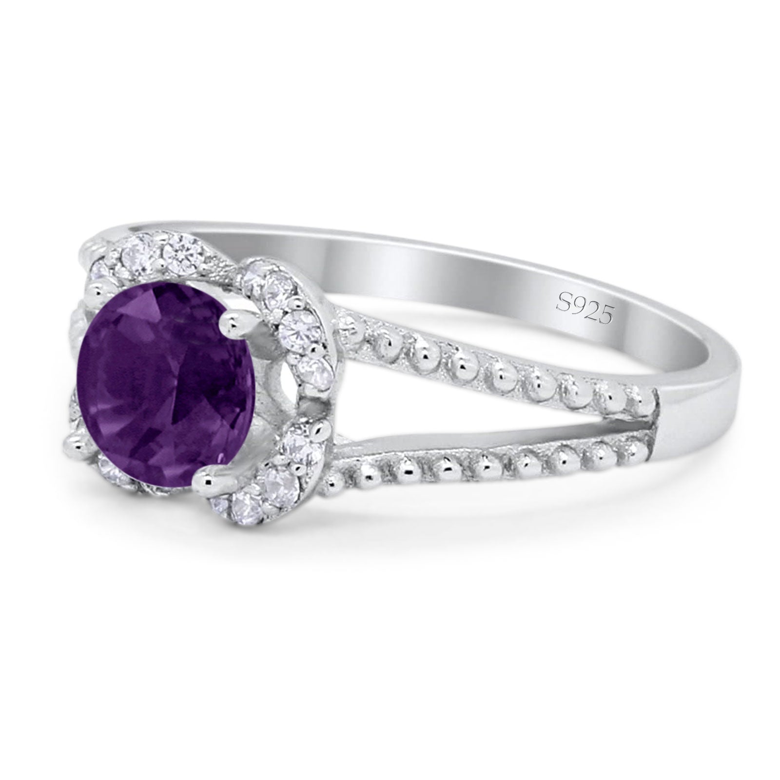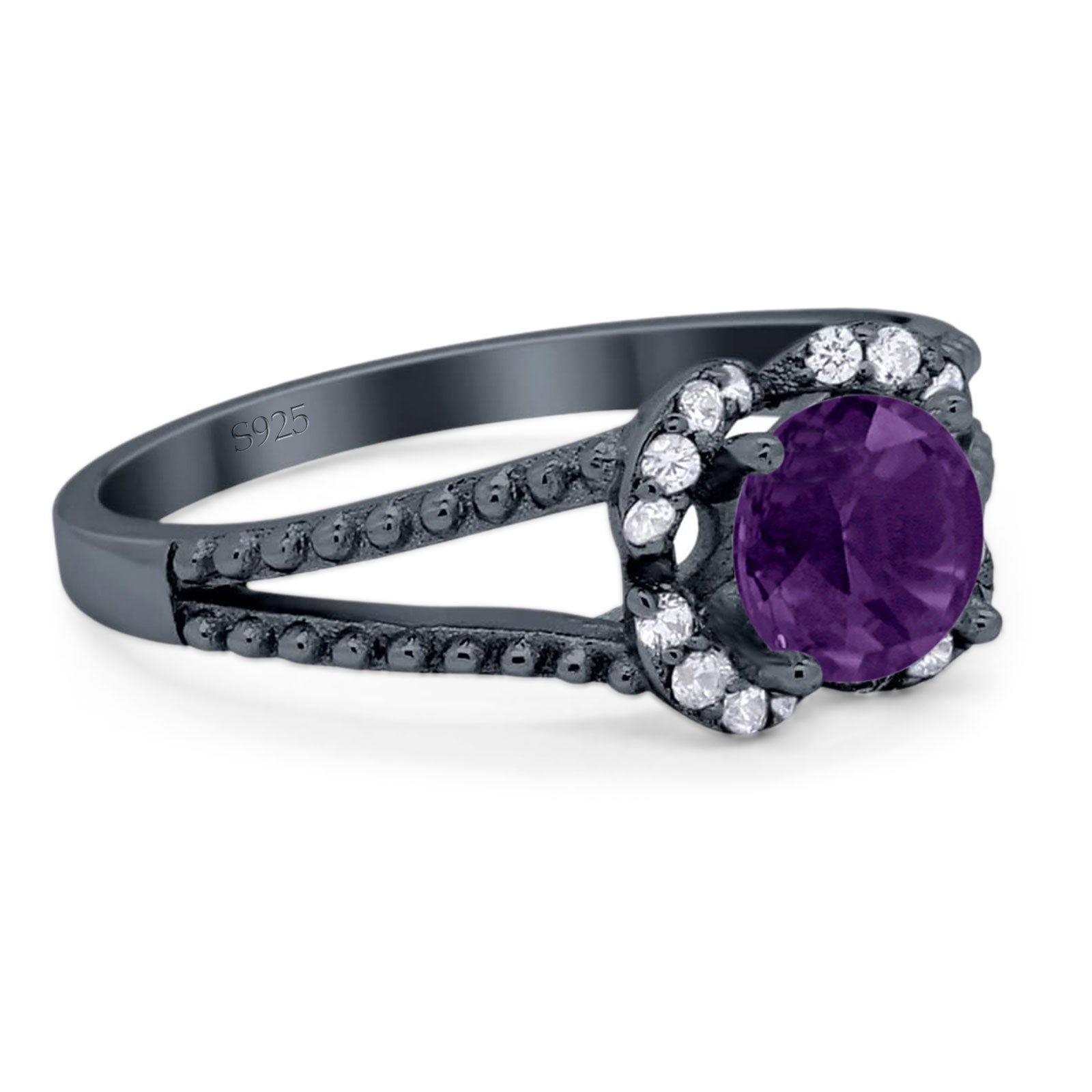 Art Deco Round Natural Amethyst Floral Ring 925 Sterling Silver