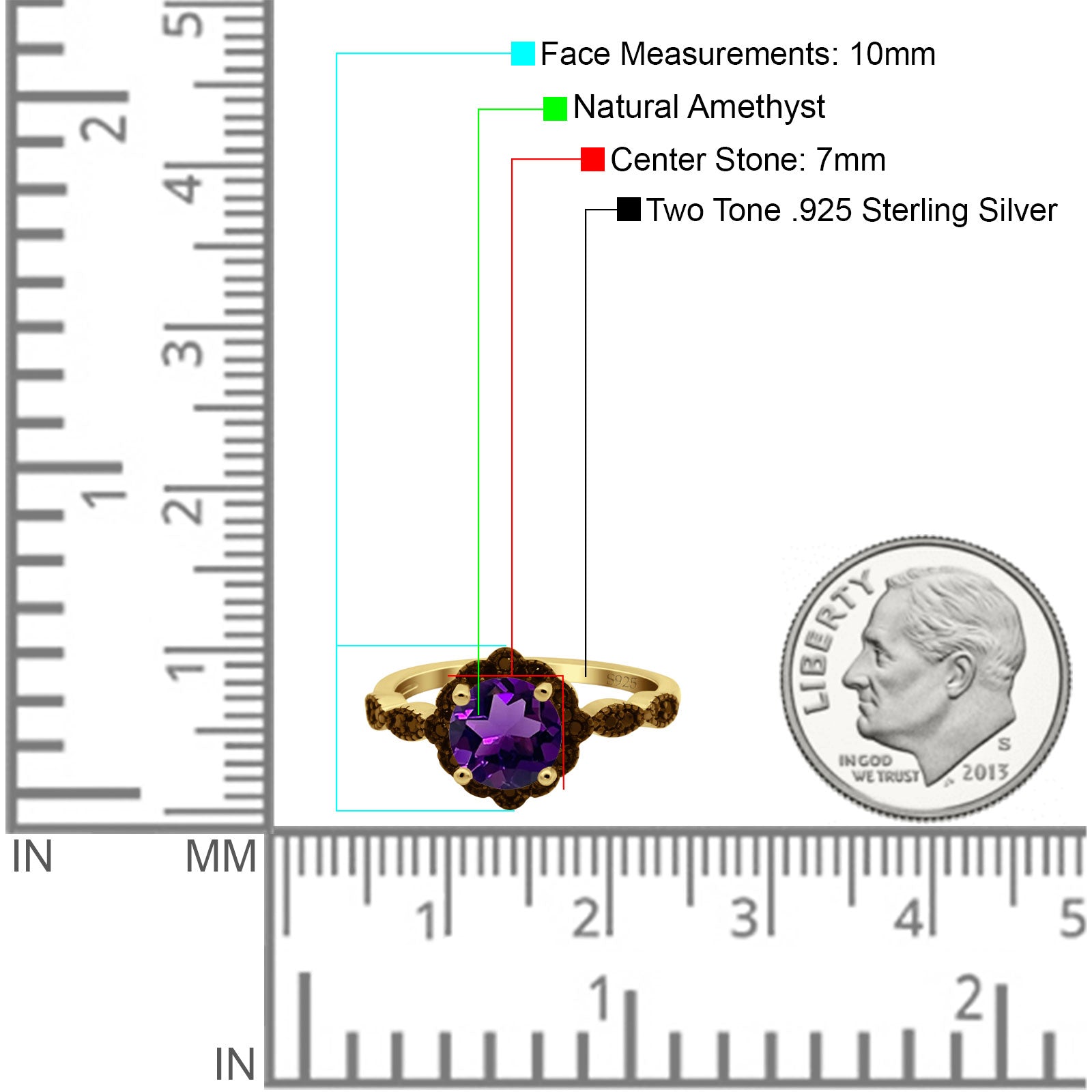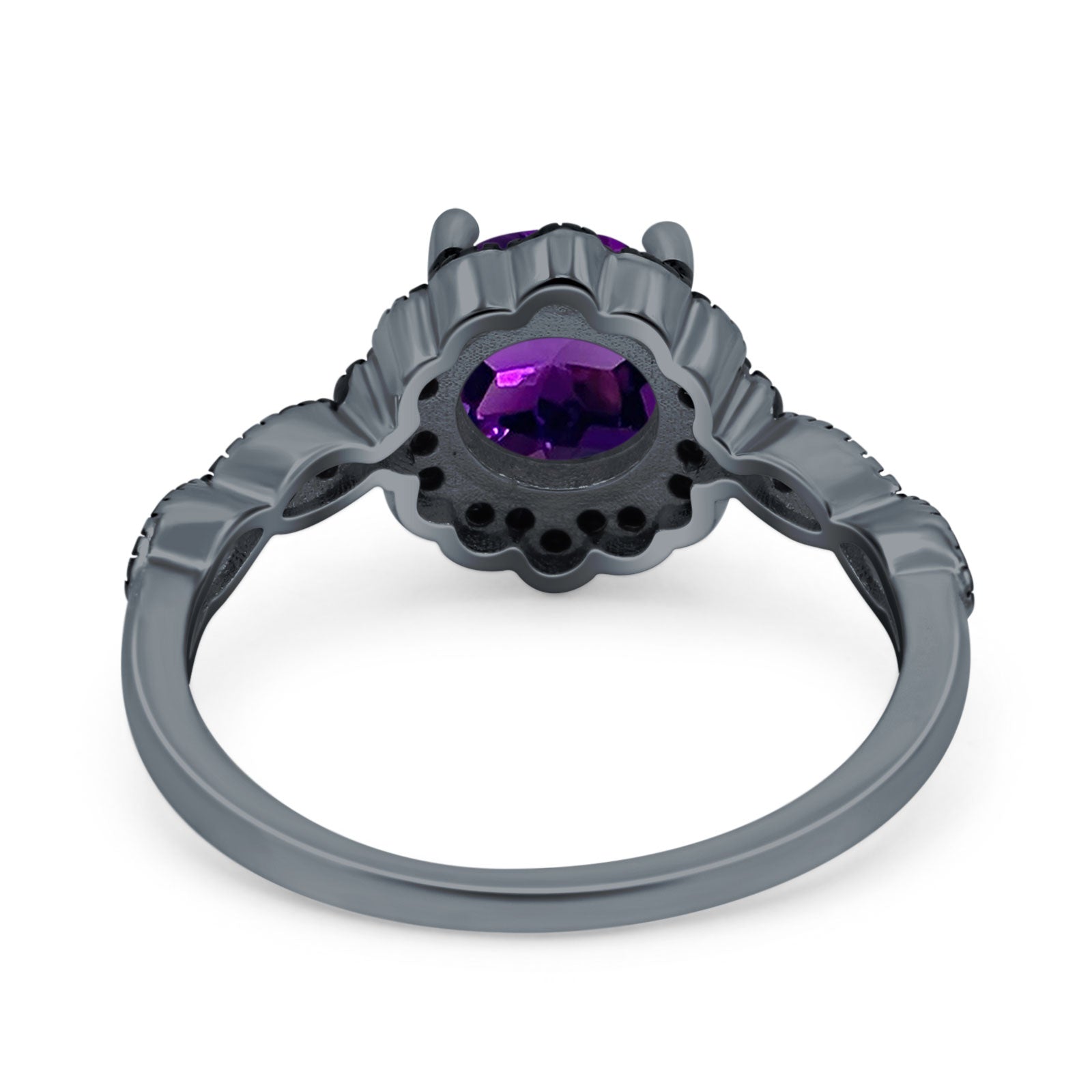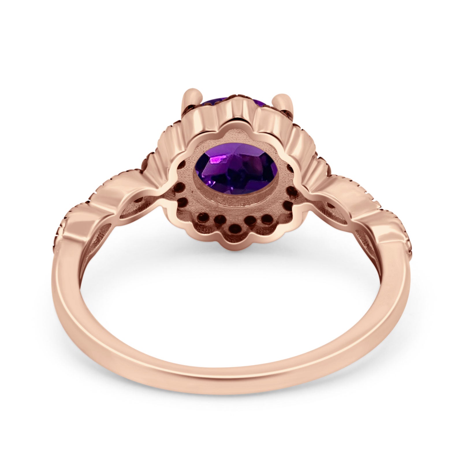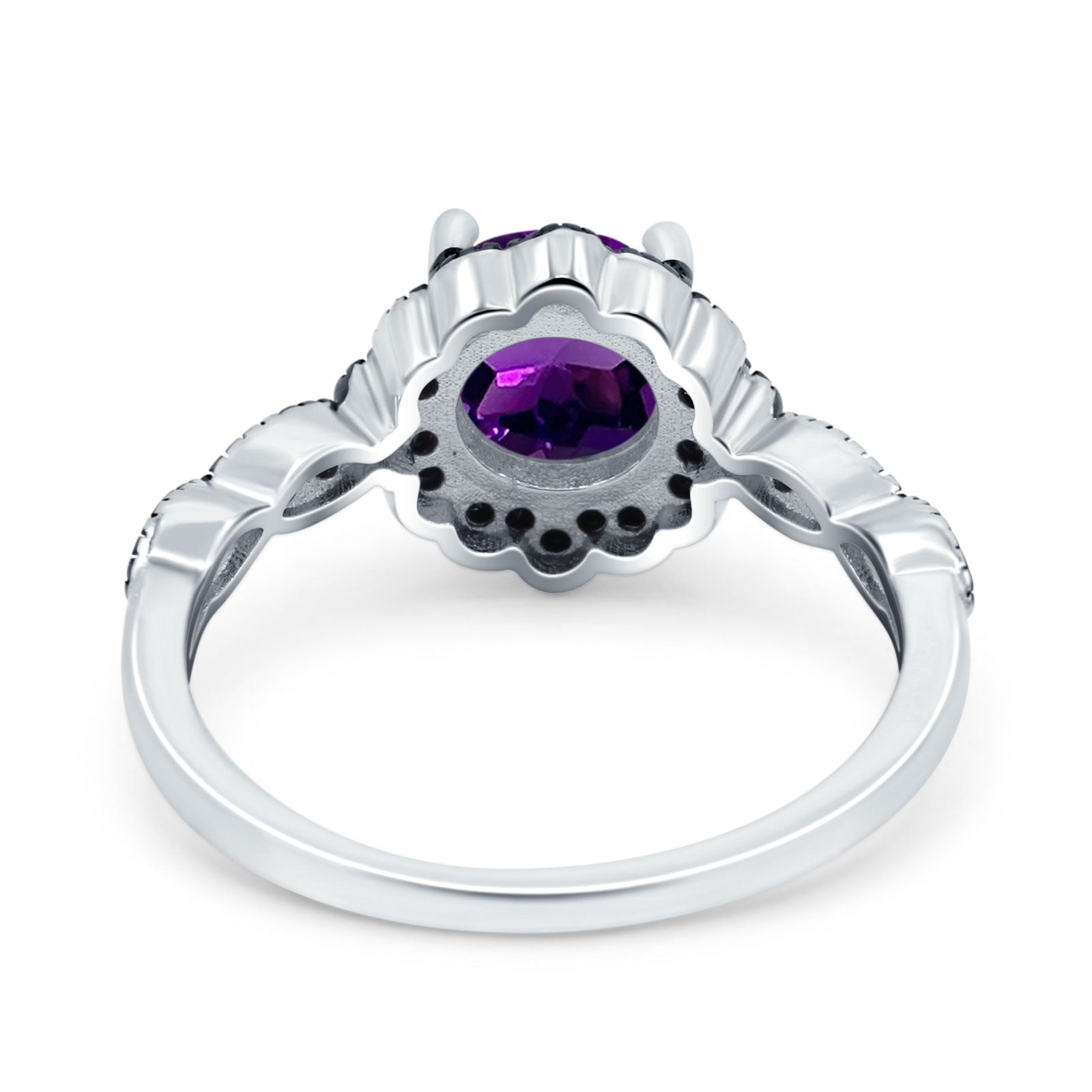 Art Deco Round Natural Amethyst Flower Ring 925 Sterling Silver
