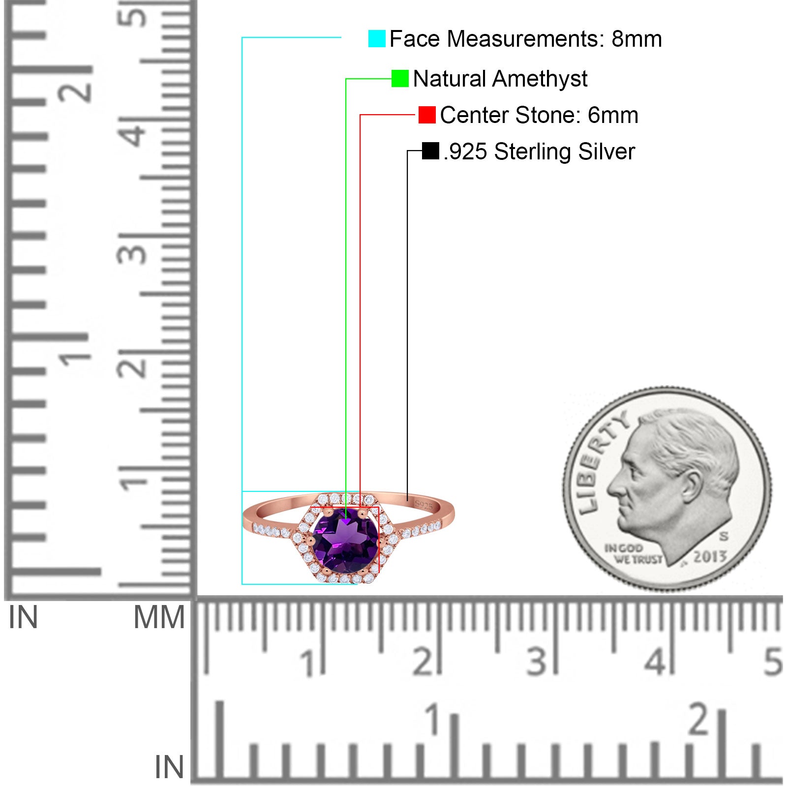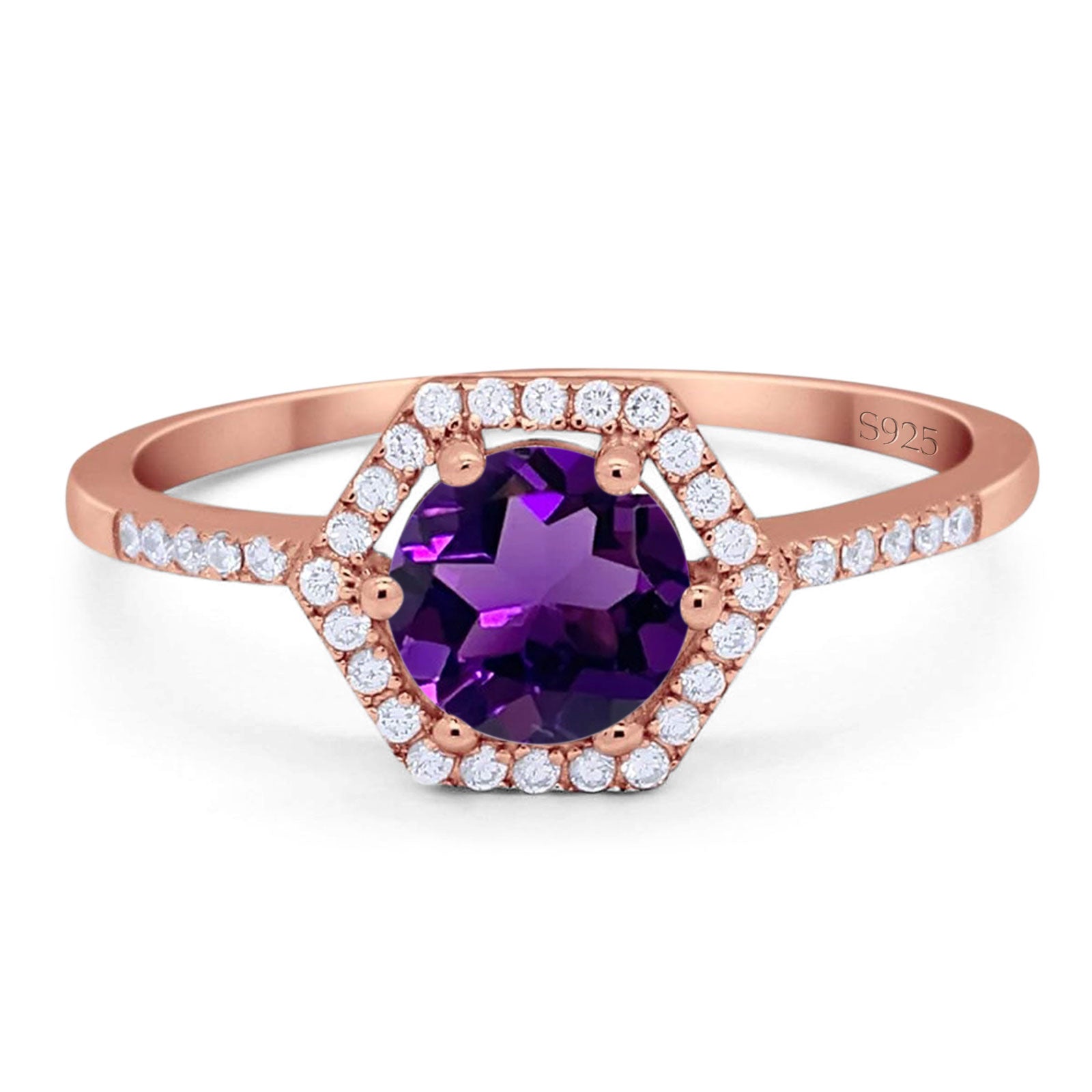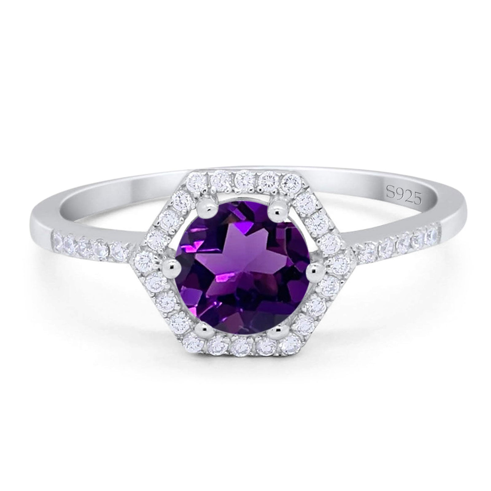 Art Deco Round Natural Amethyst Hexagonal Ring 925 Sterling Silver