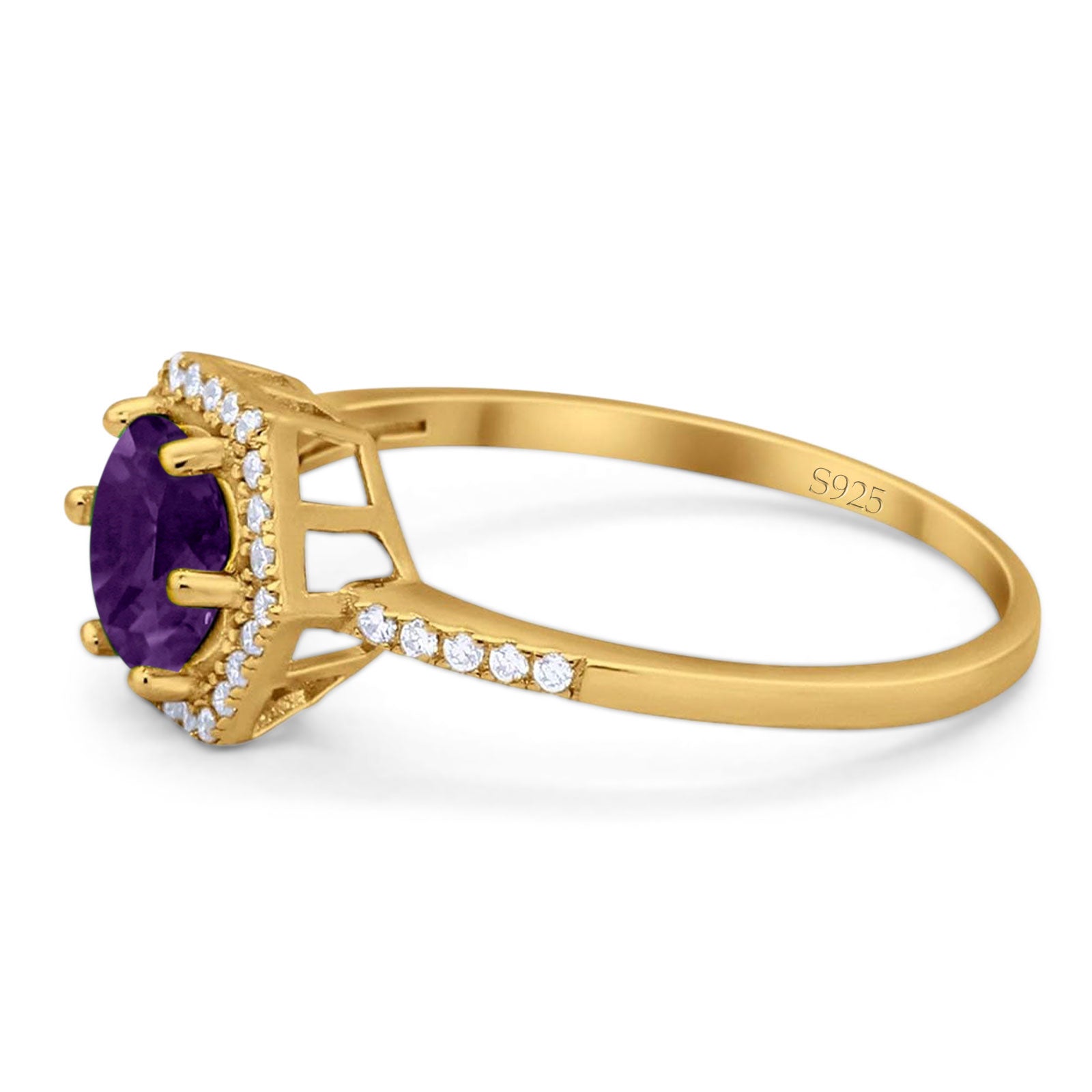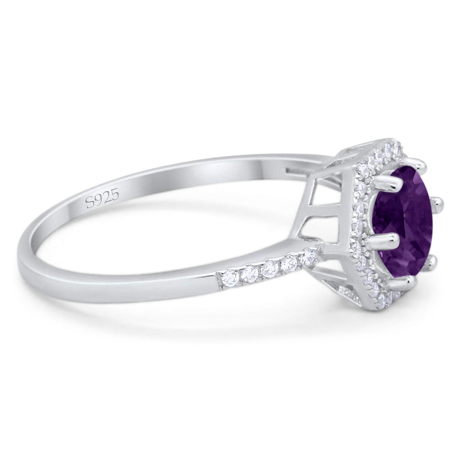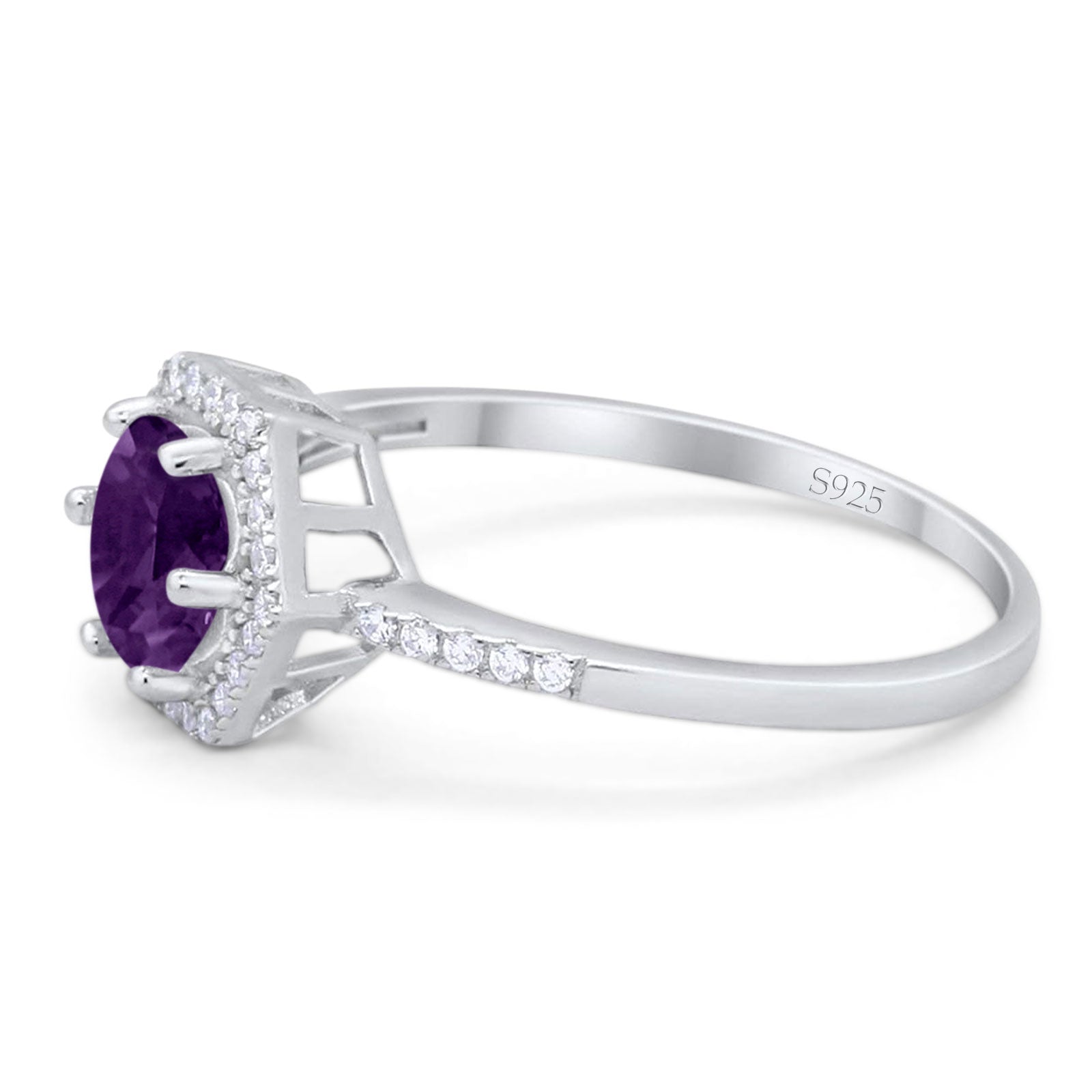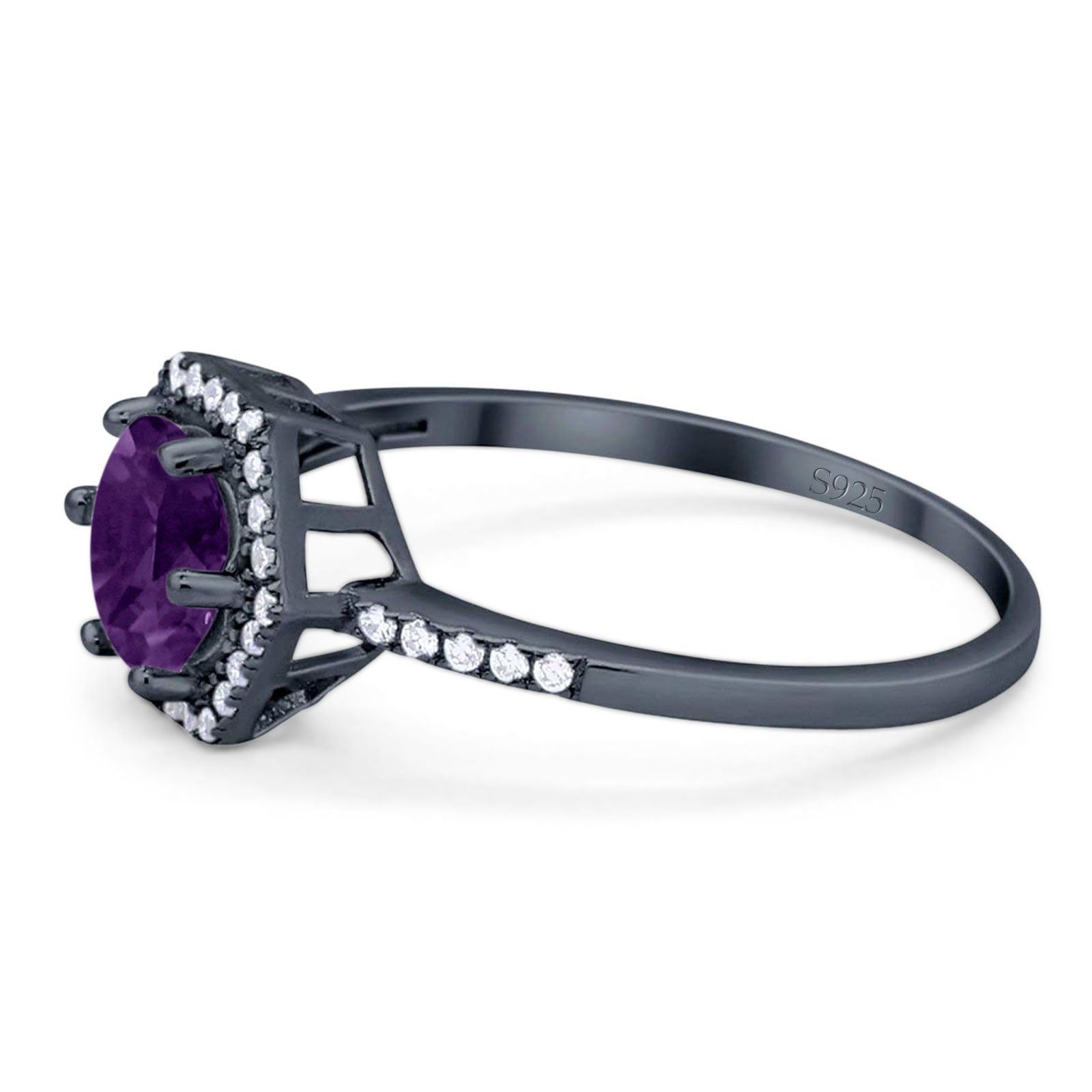 Art Deco Round Natural Amethyst Hexagonal Ring 925 Sterling Silver