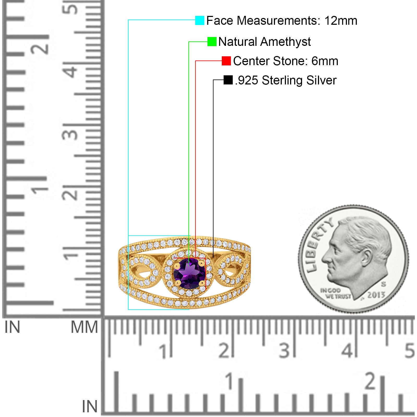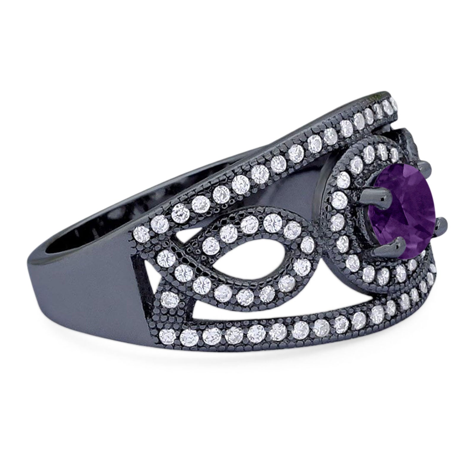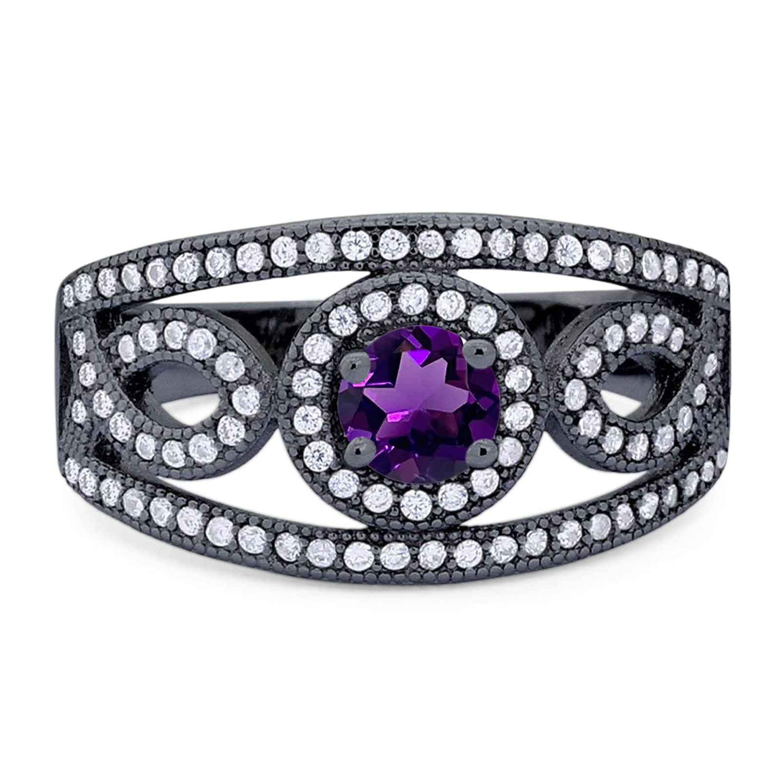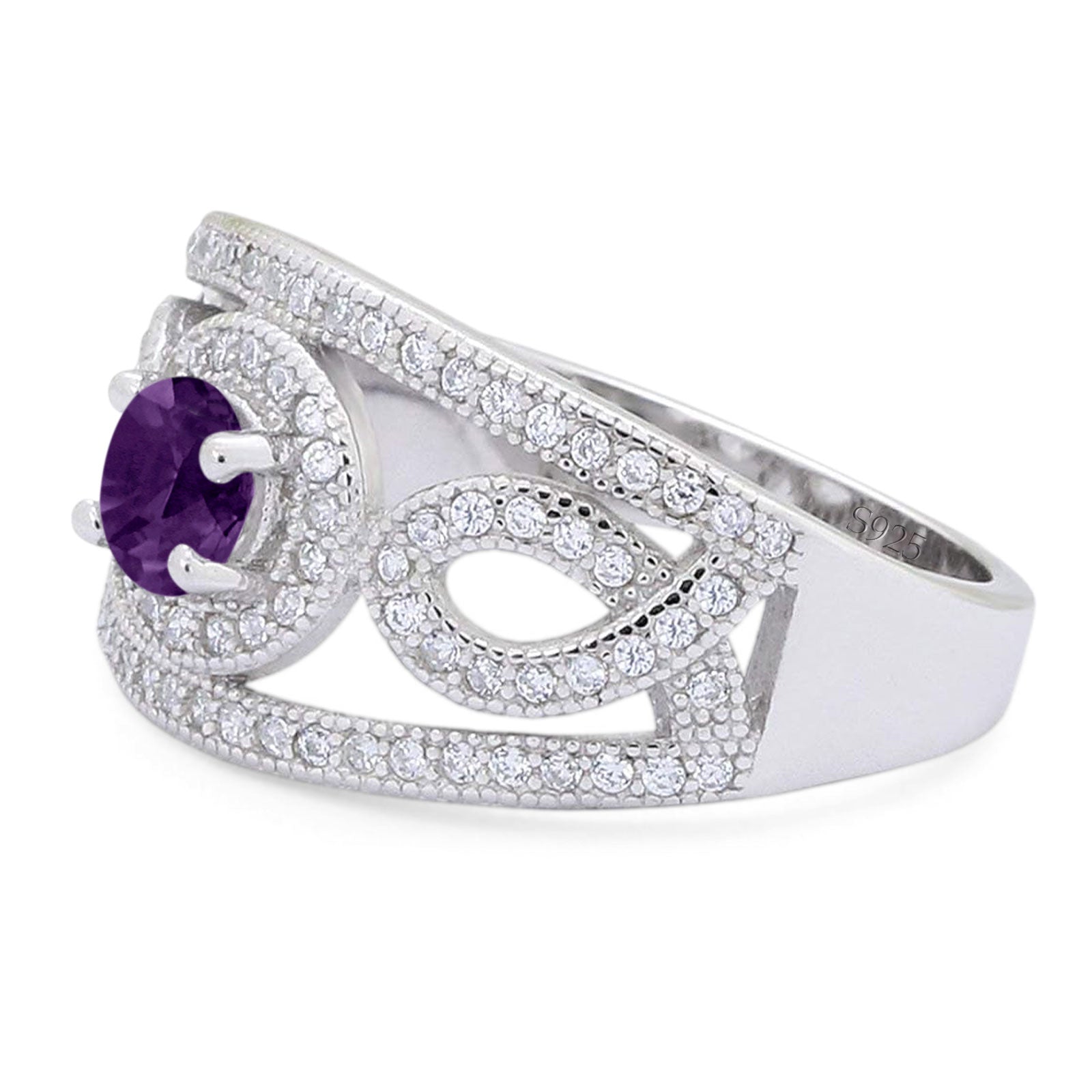 Art Deco Round Natural Amethyst Infinity Shank Ring 925 Sterling Silver
