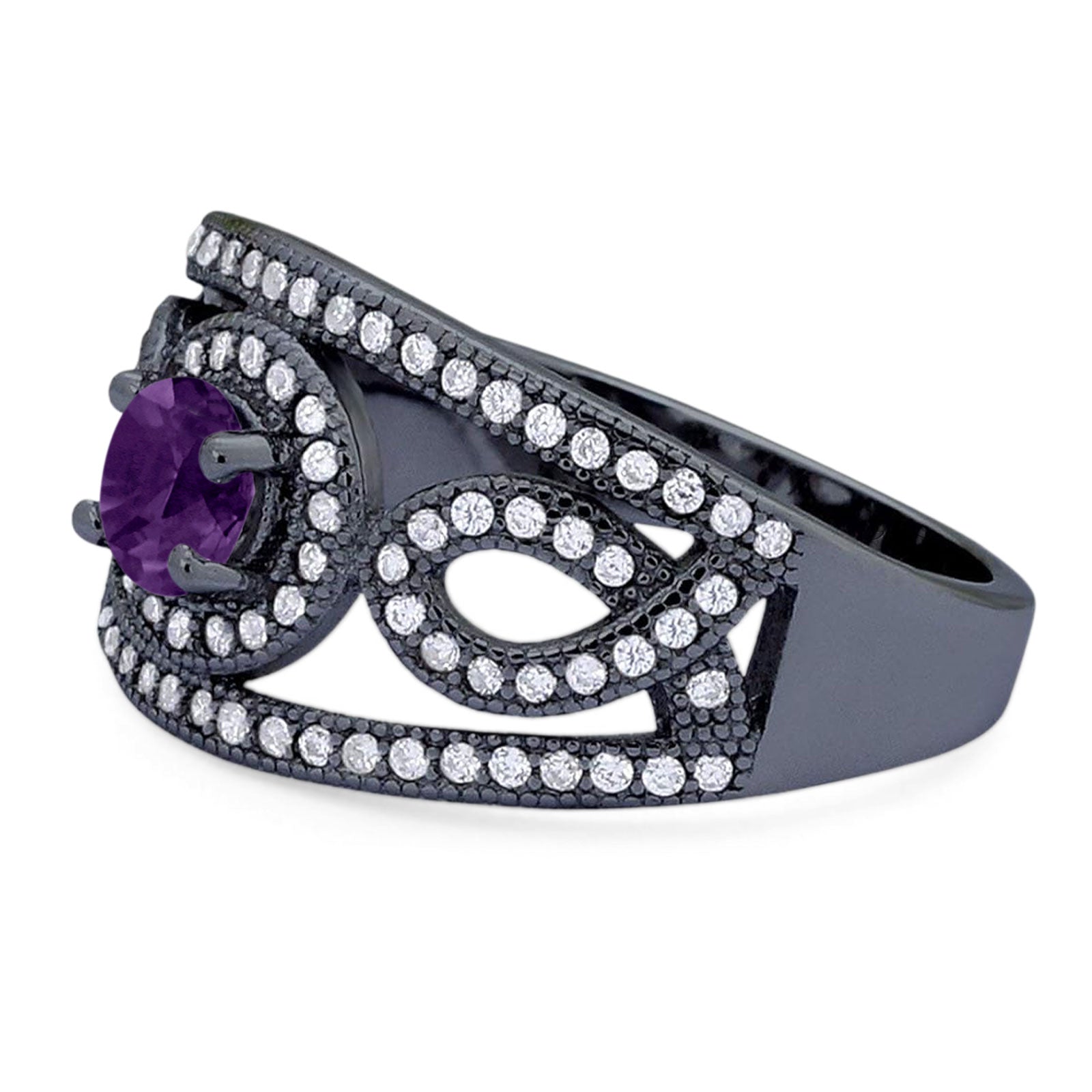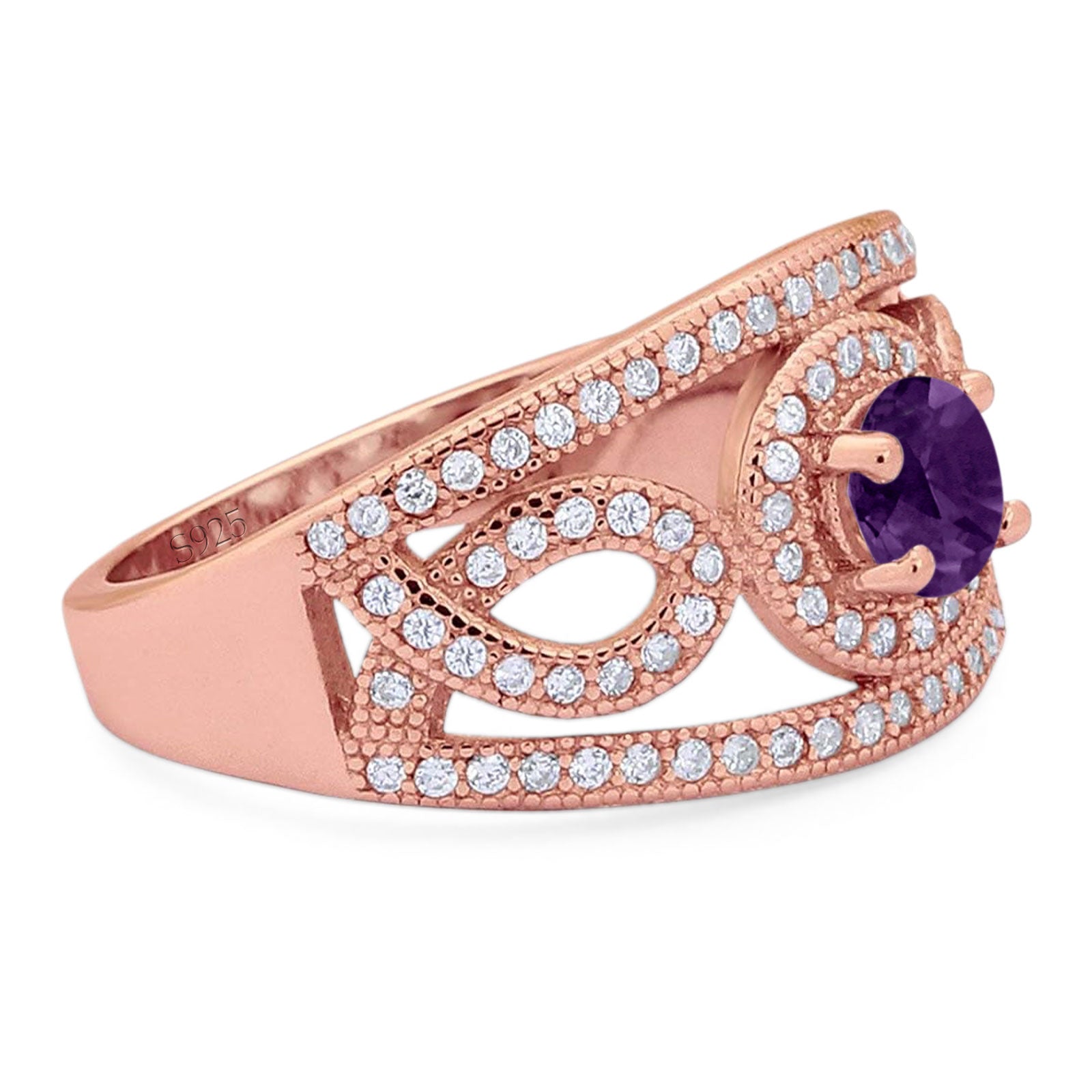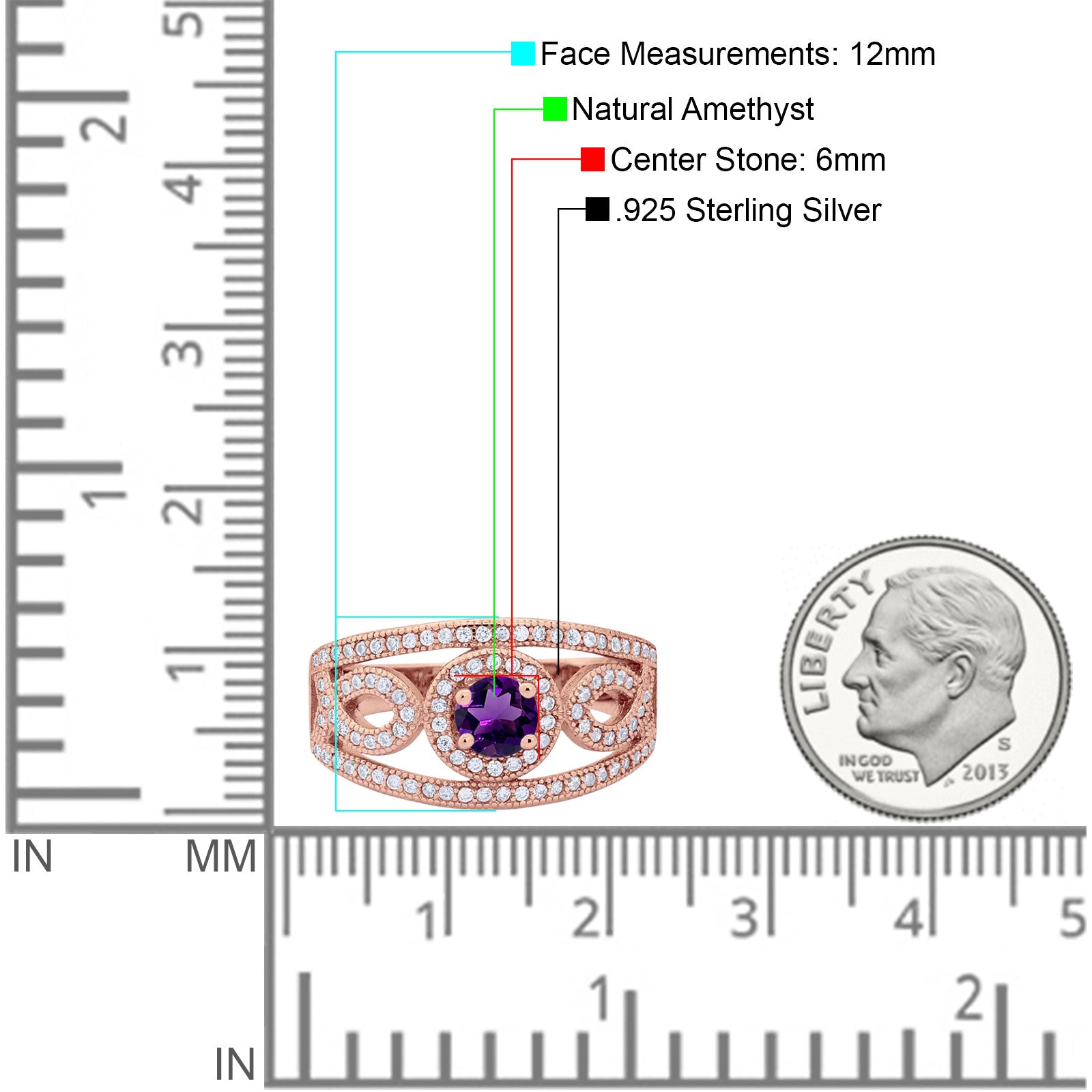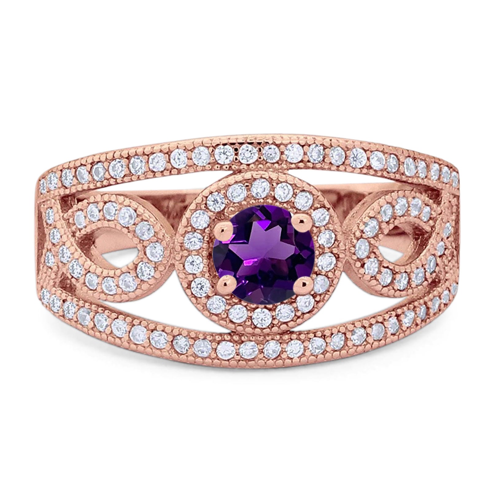 Art Deco Round Natural Amethyst Infinity Shank Ring 925 Sterling Silver