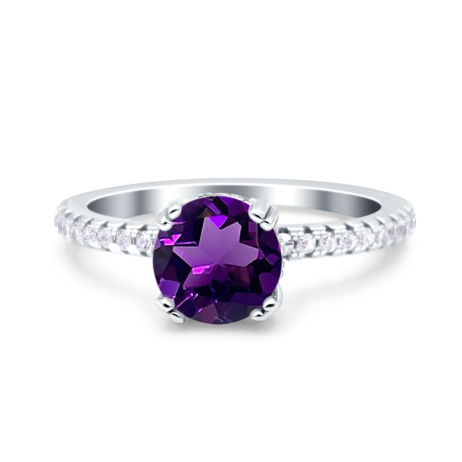 Art Deco Round Natural Amethyst Wedding Ring 925 Sterling Silver