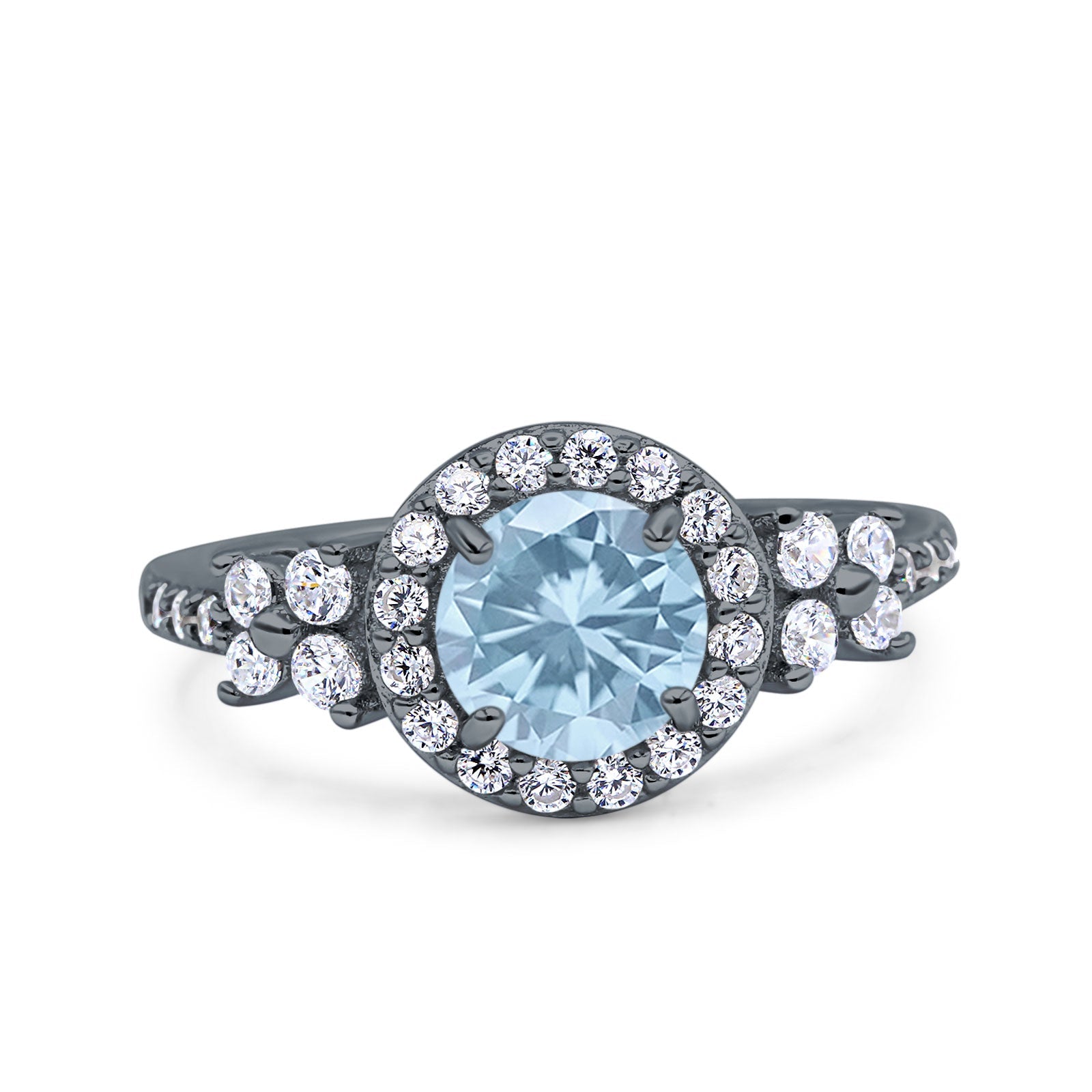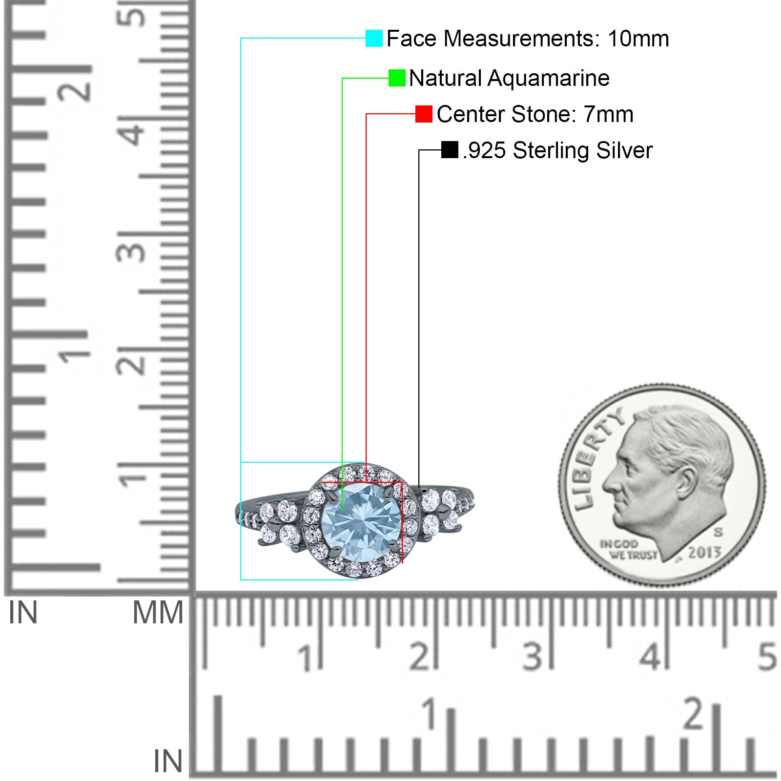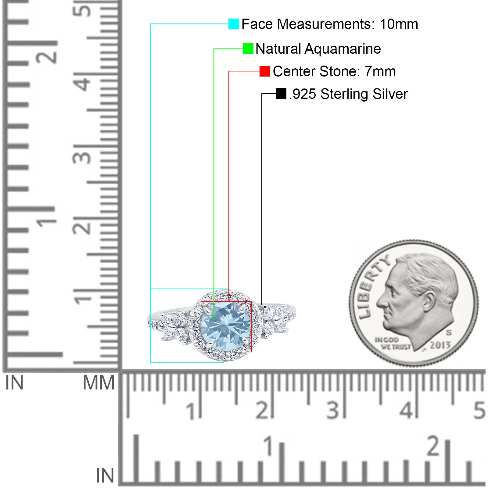 Art Deco Round Natural Aquamarine Floral Ring 925 Sterling Silver