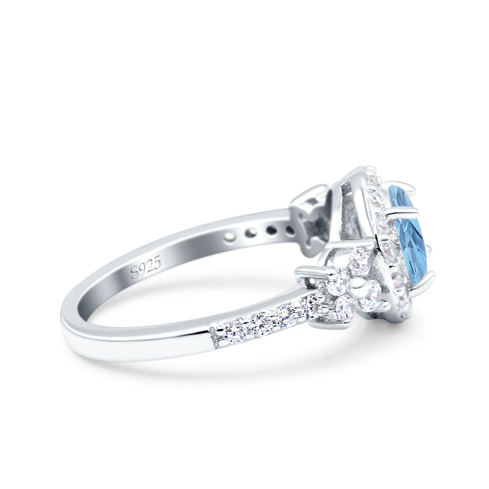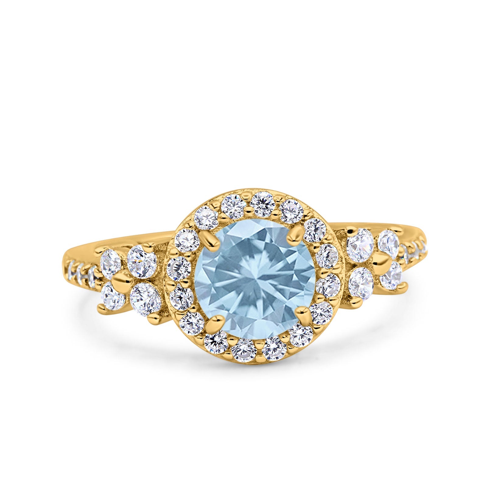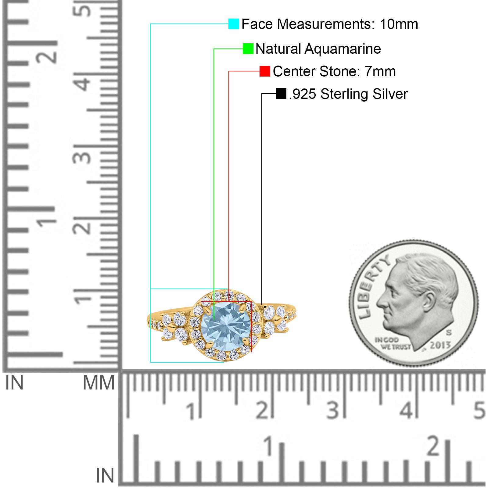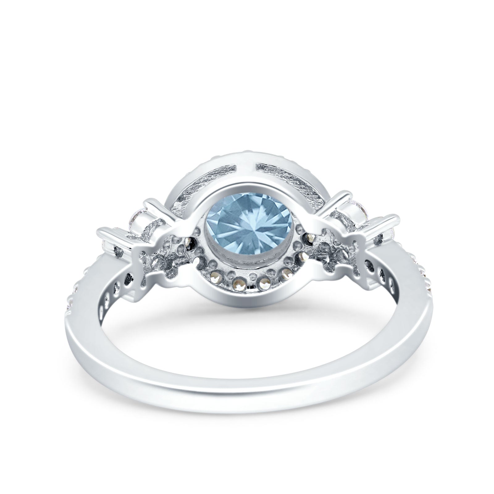Art Deco Round Natural Aquamarine Floral Ring 925 Sterling Silver