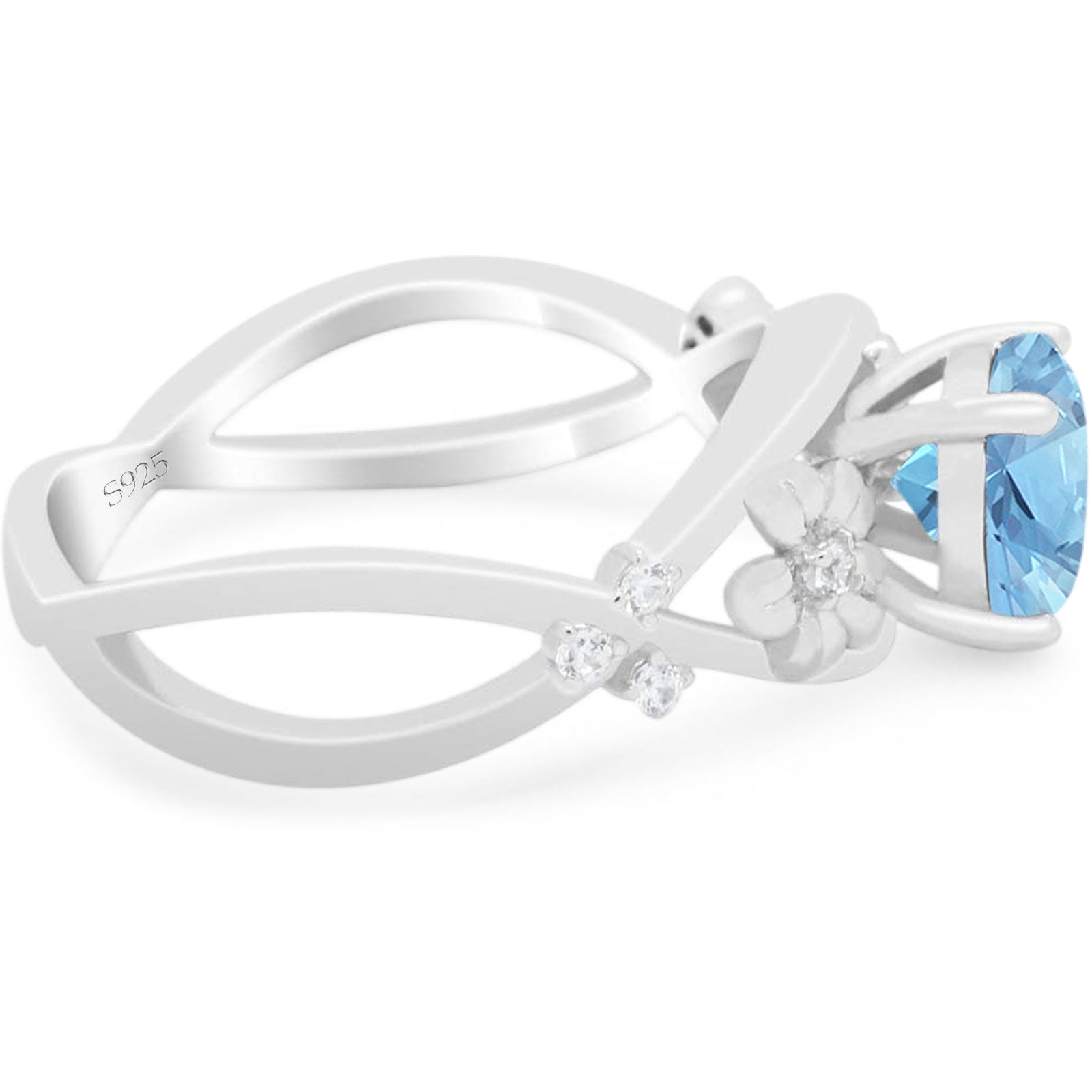 Art Deco Round Natural Aquamarine Flower Ring 925 Sterling Silver