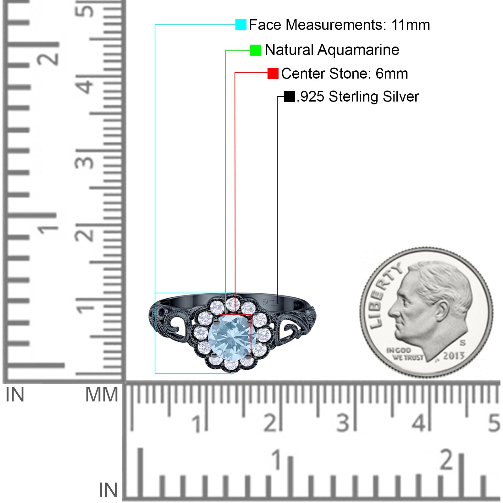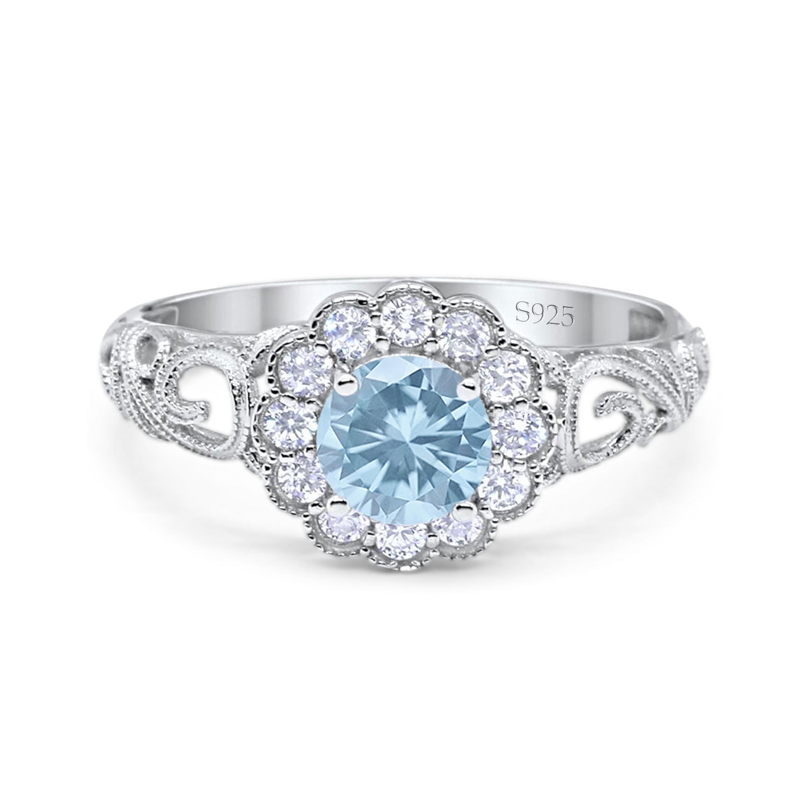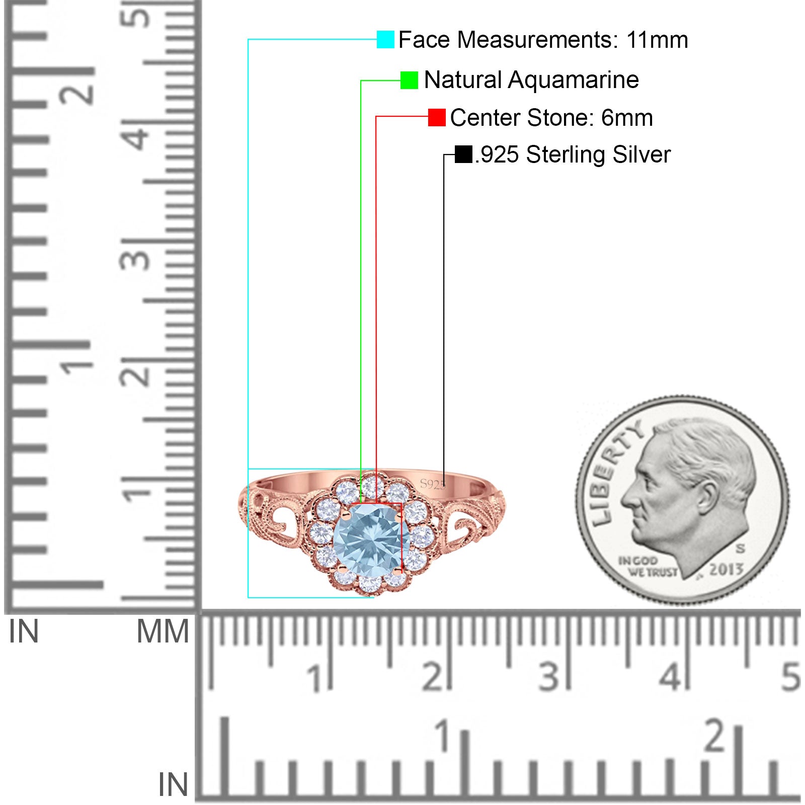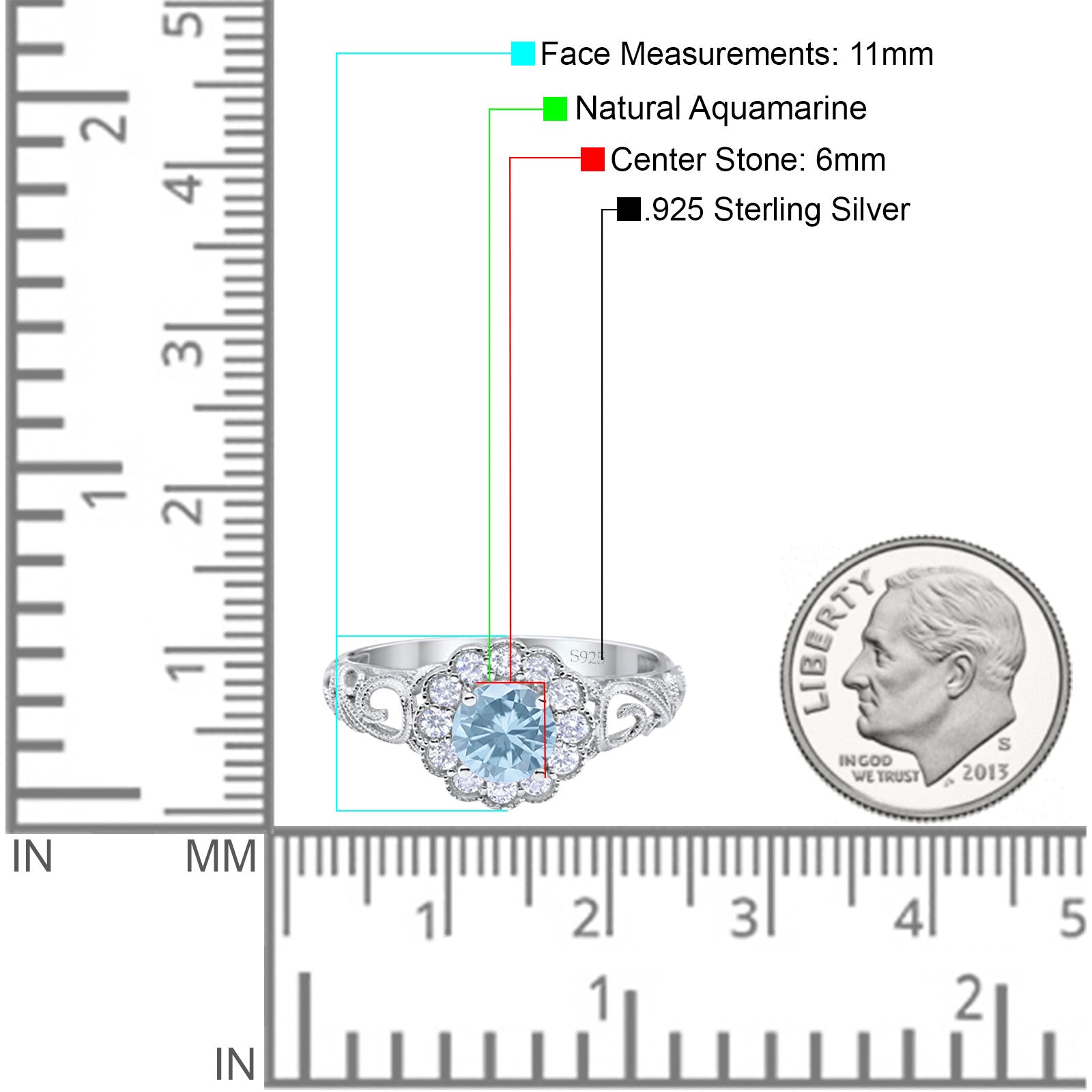 Art Deco Round Natural Aquamarine Flower Ring 925 Sterling Silver