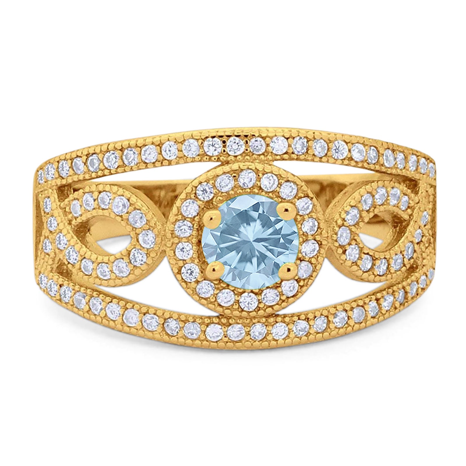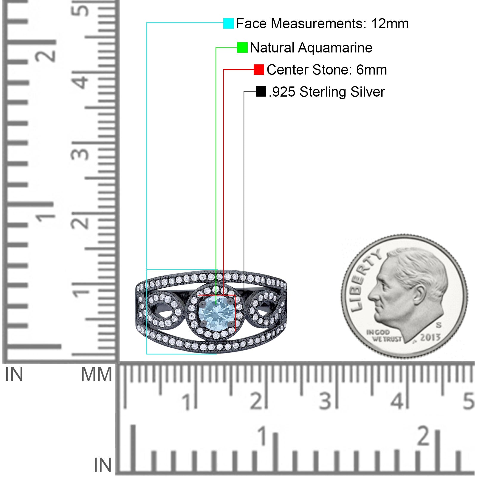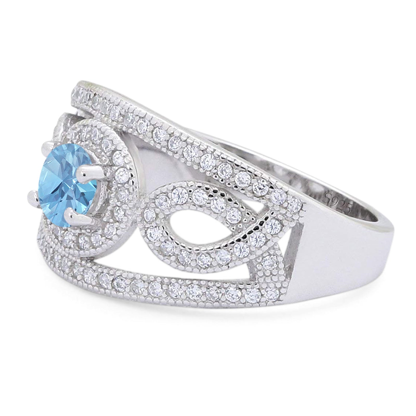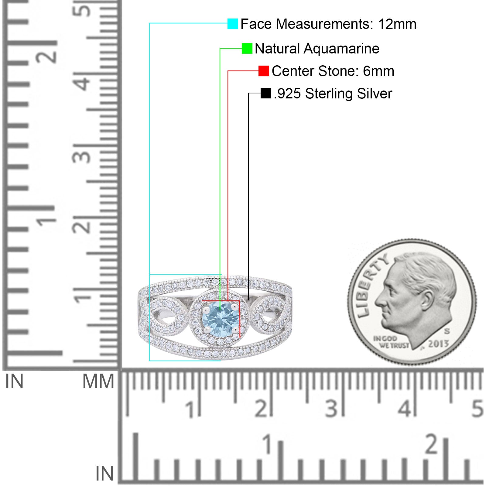 Art Deco Round Natural Aquamarine Infinity Shank Ring 925 Sterling Silver