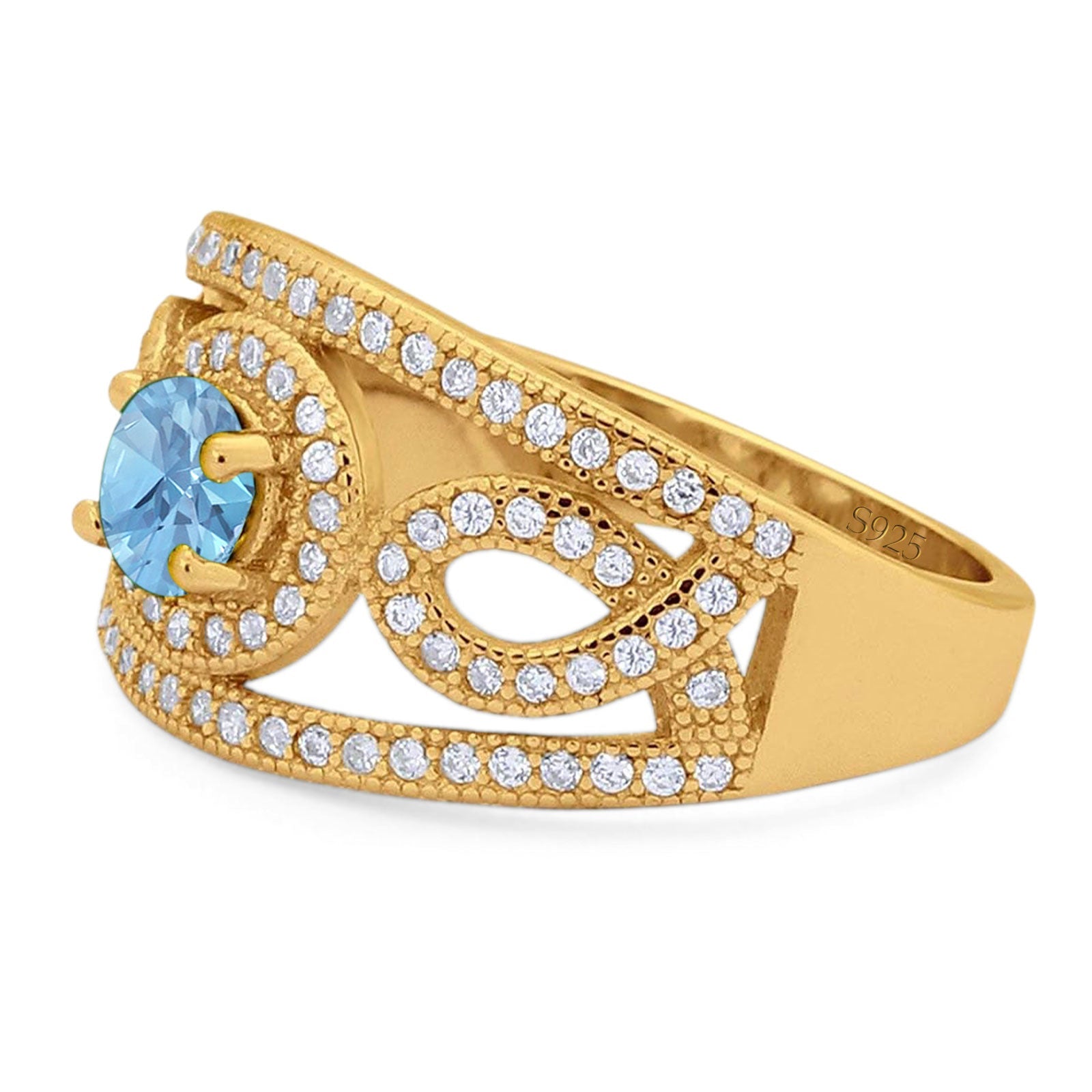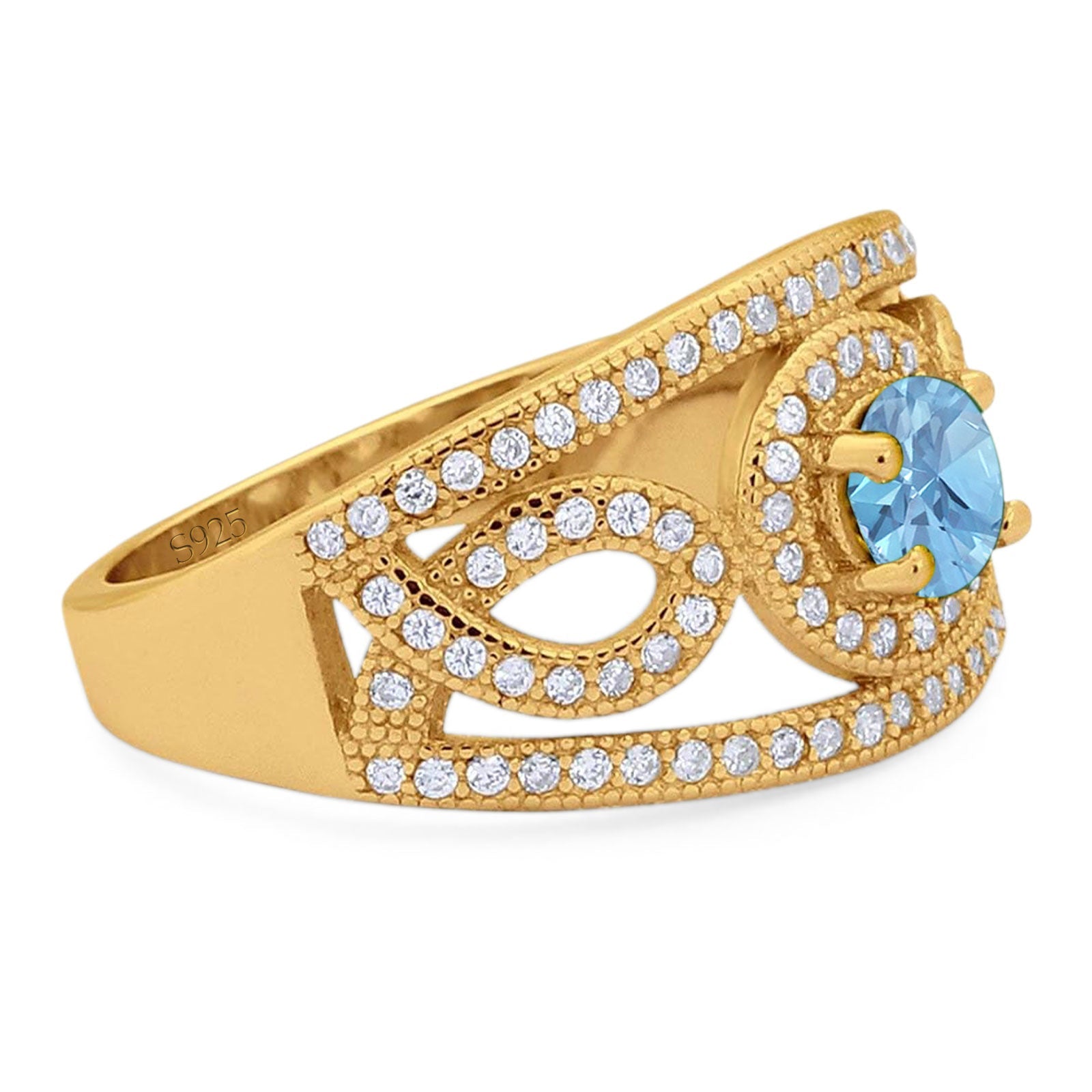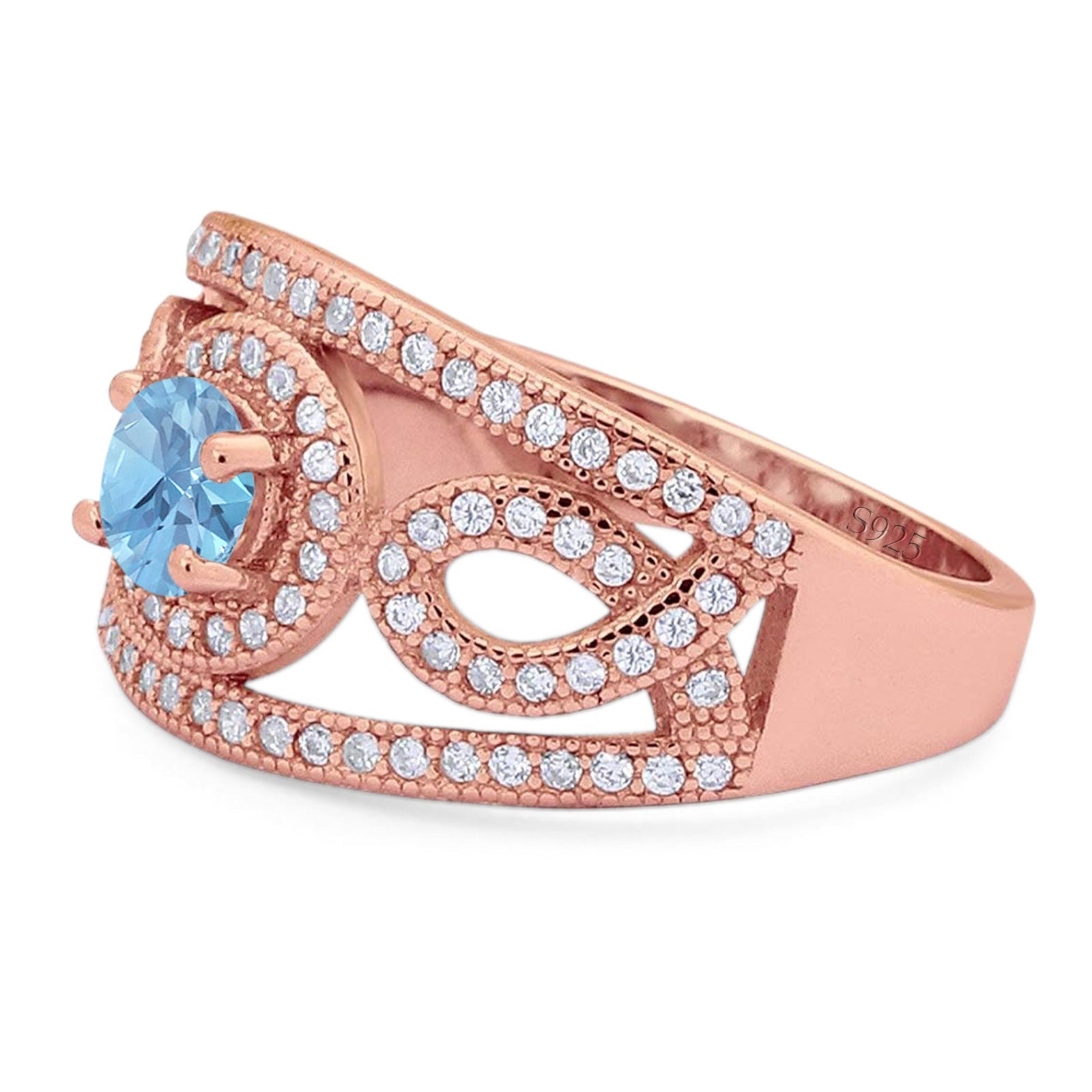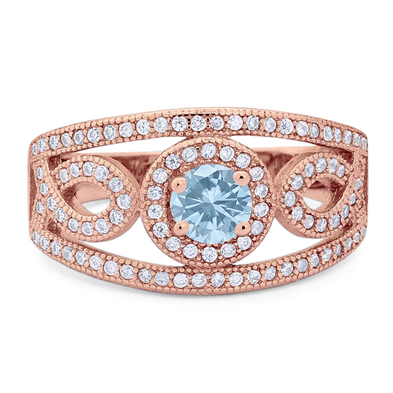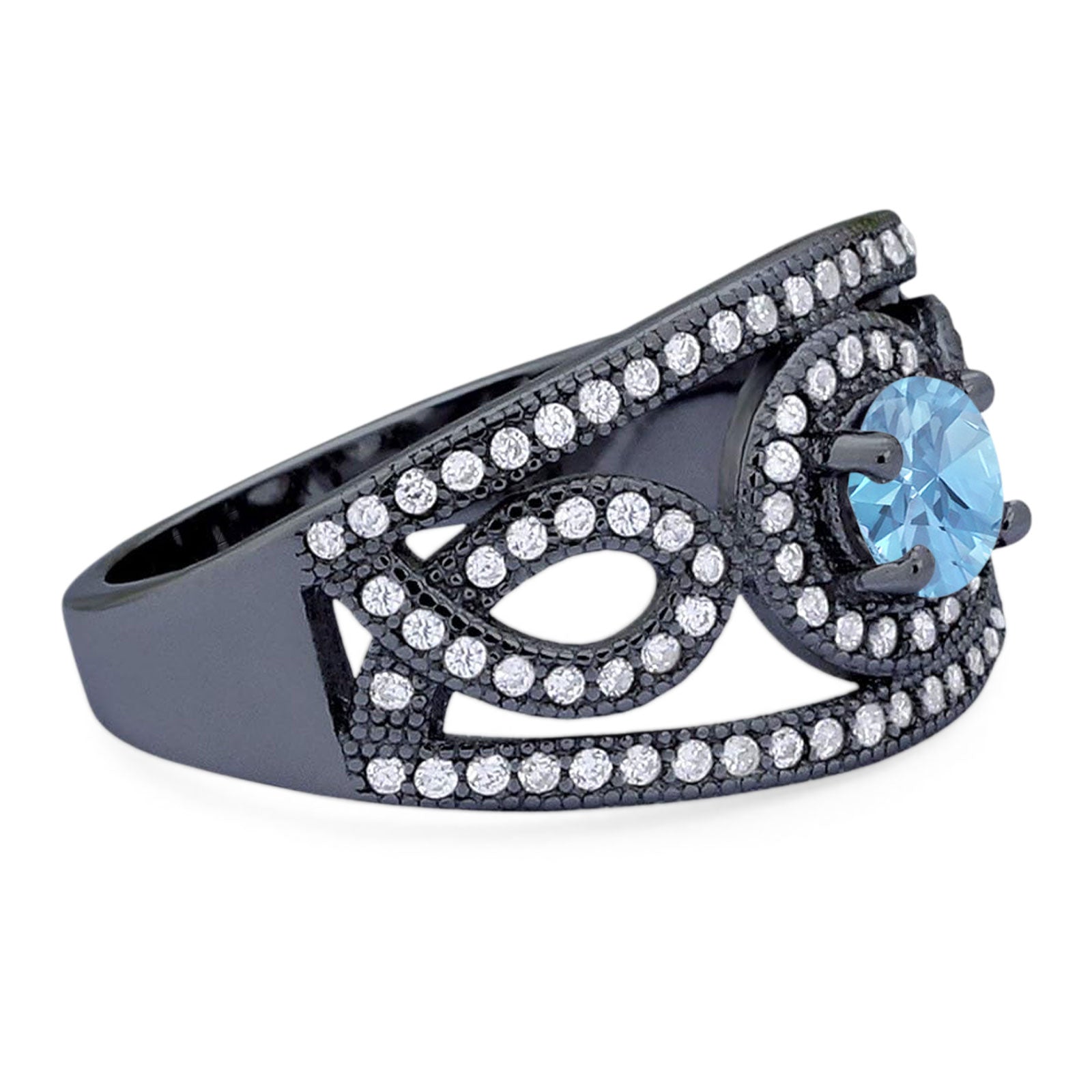Art Deco Round Natural Aquamarine Infinity Shank Ring 925 Sterling Silver