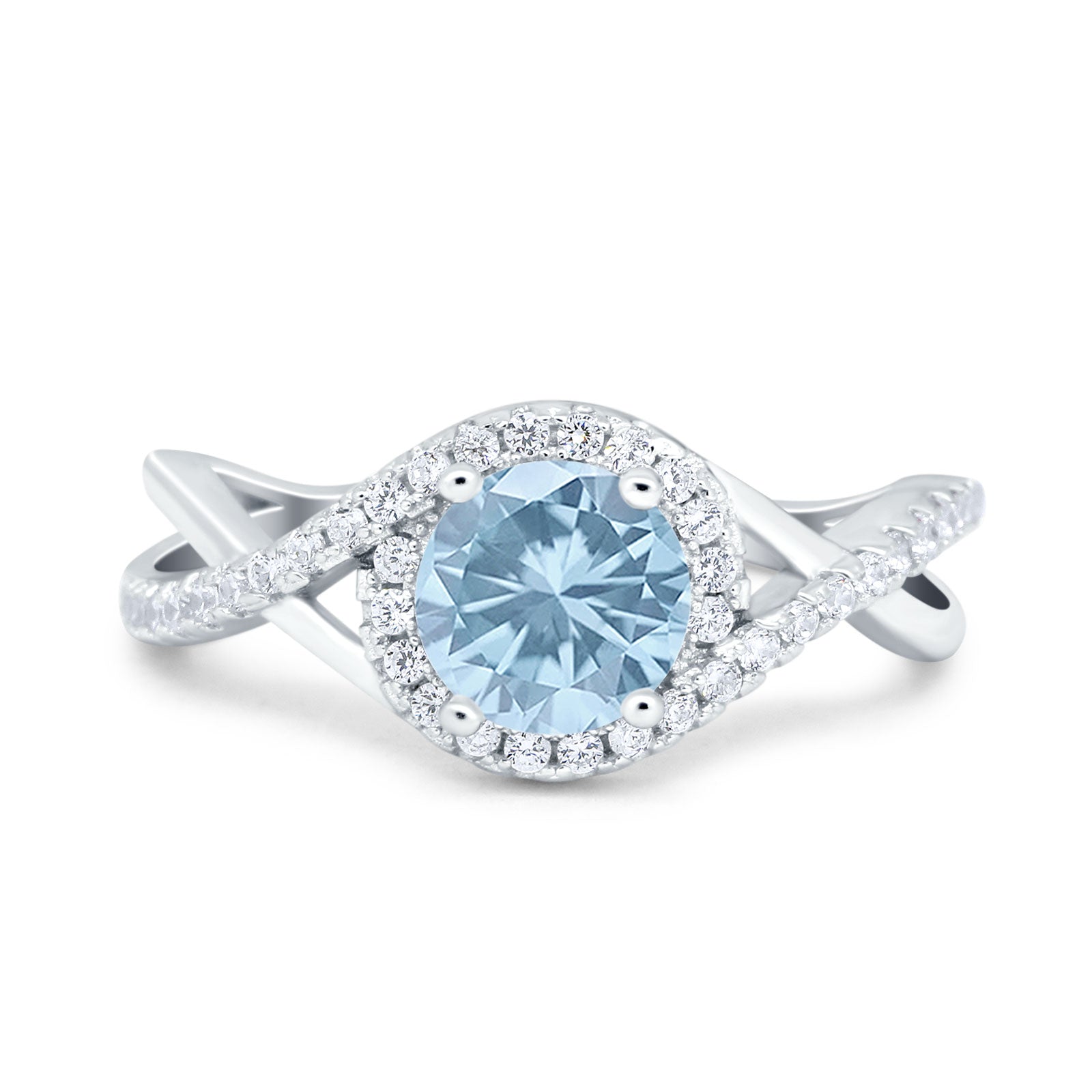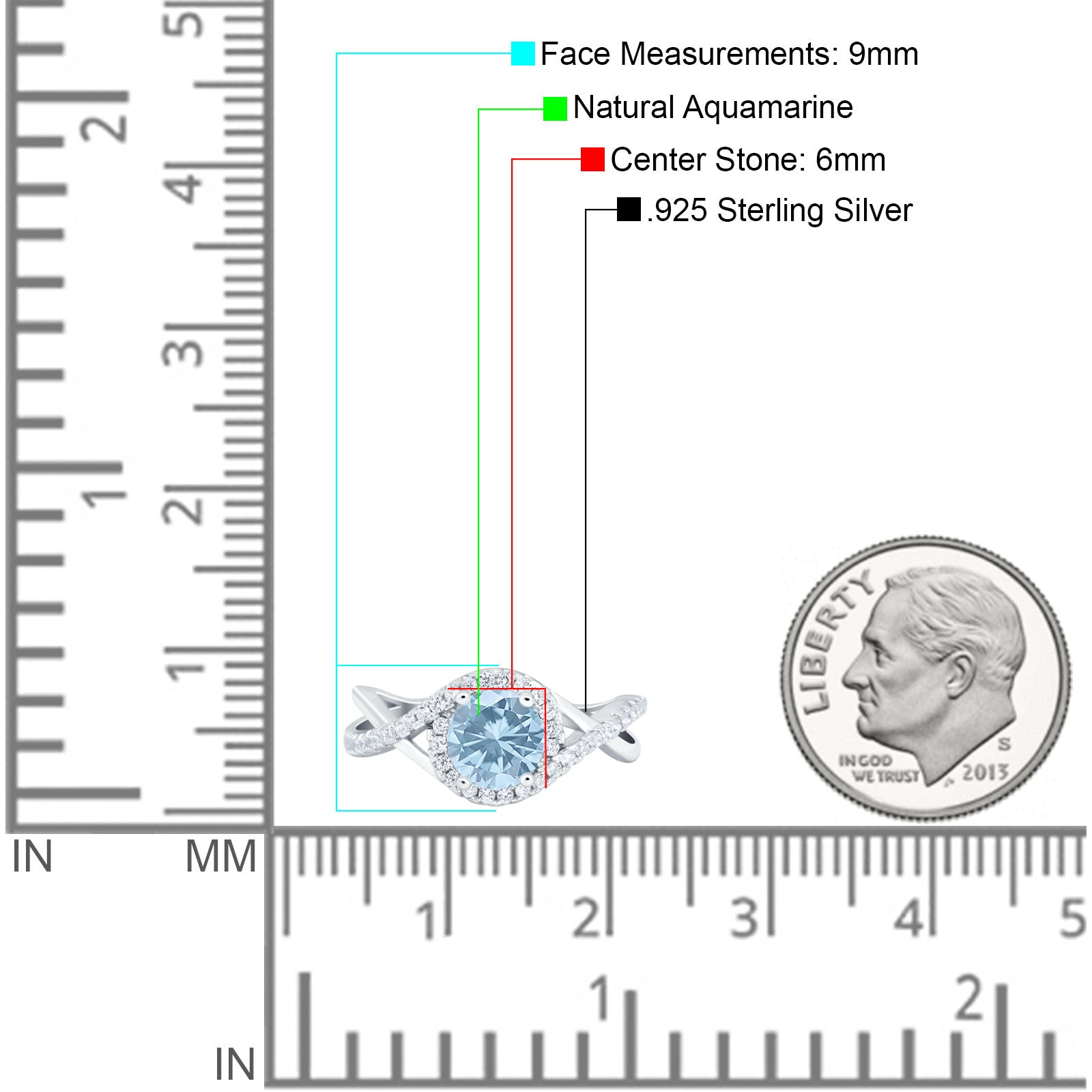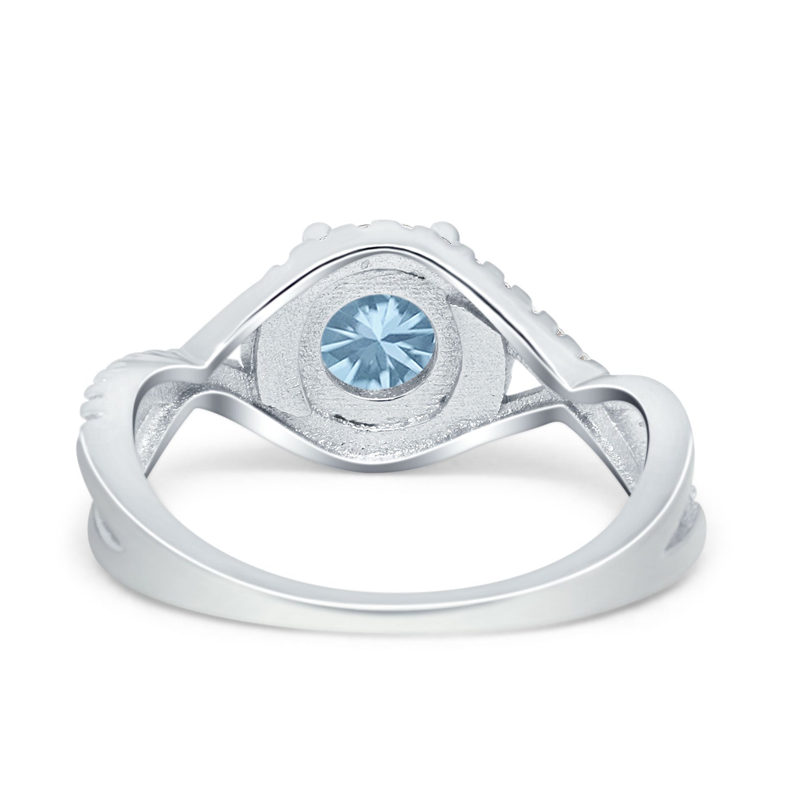 Art Deco Round Natural Aquamarine Twisted Ring 925 Sterling Silver