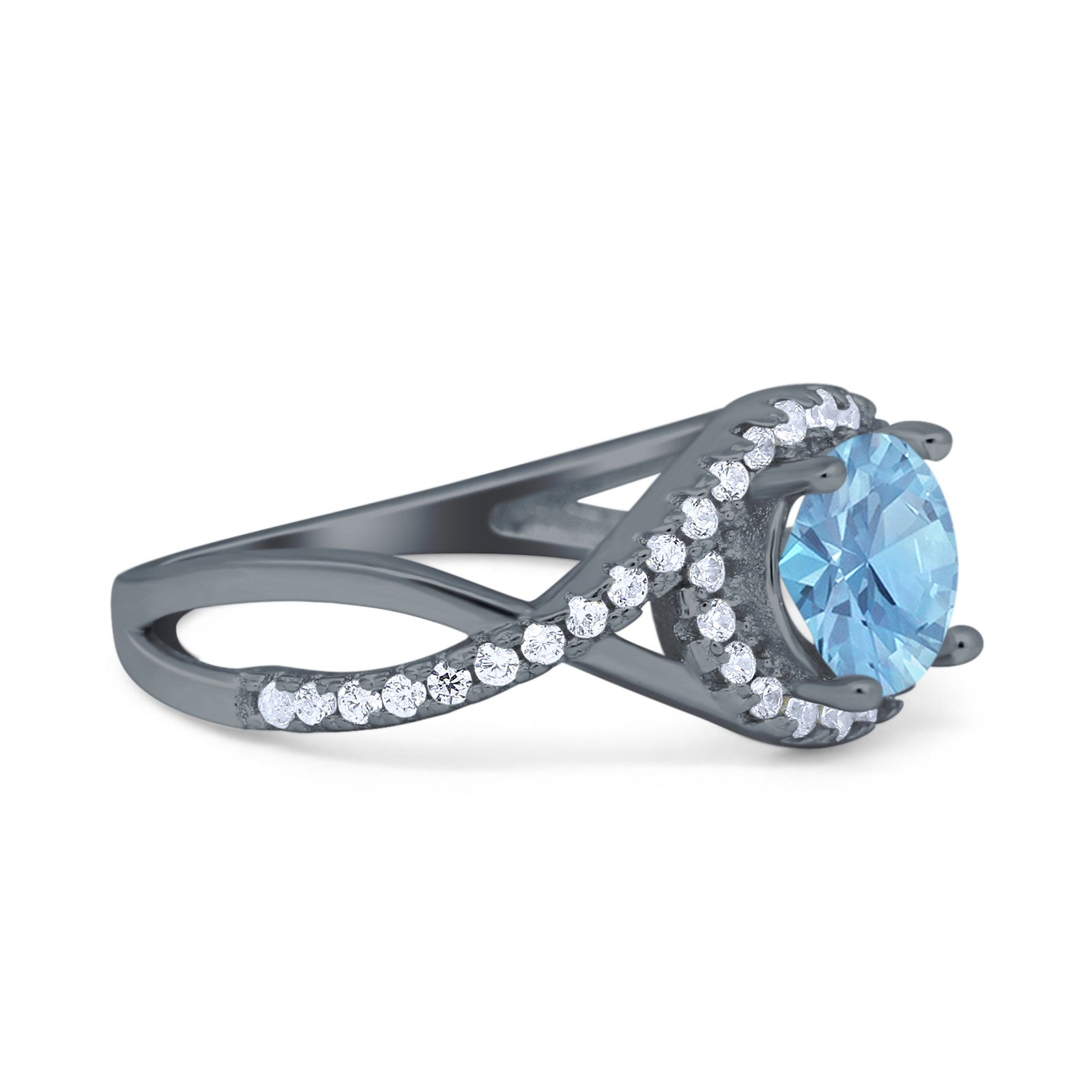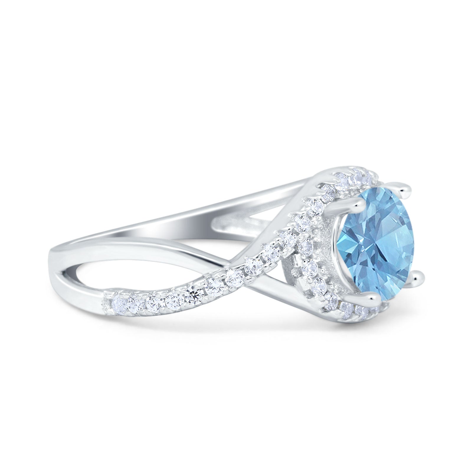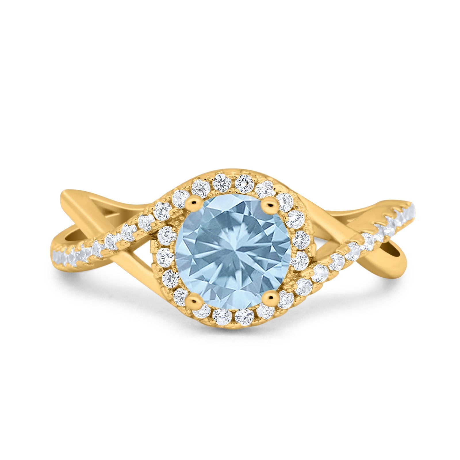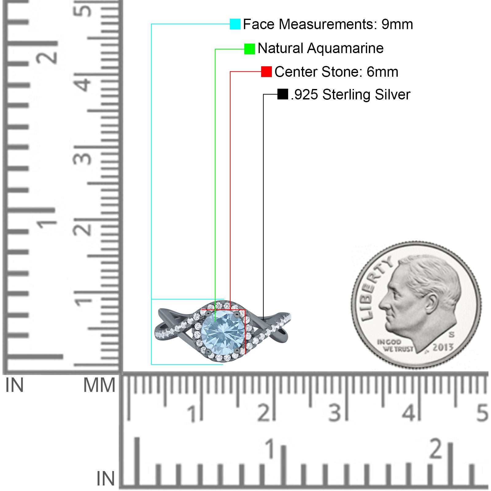 Art Deco Round Natural Aquamarine Twisted Ring 925 Sterling Silver