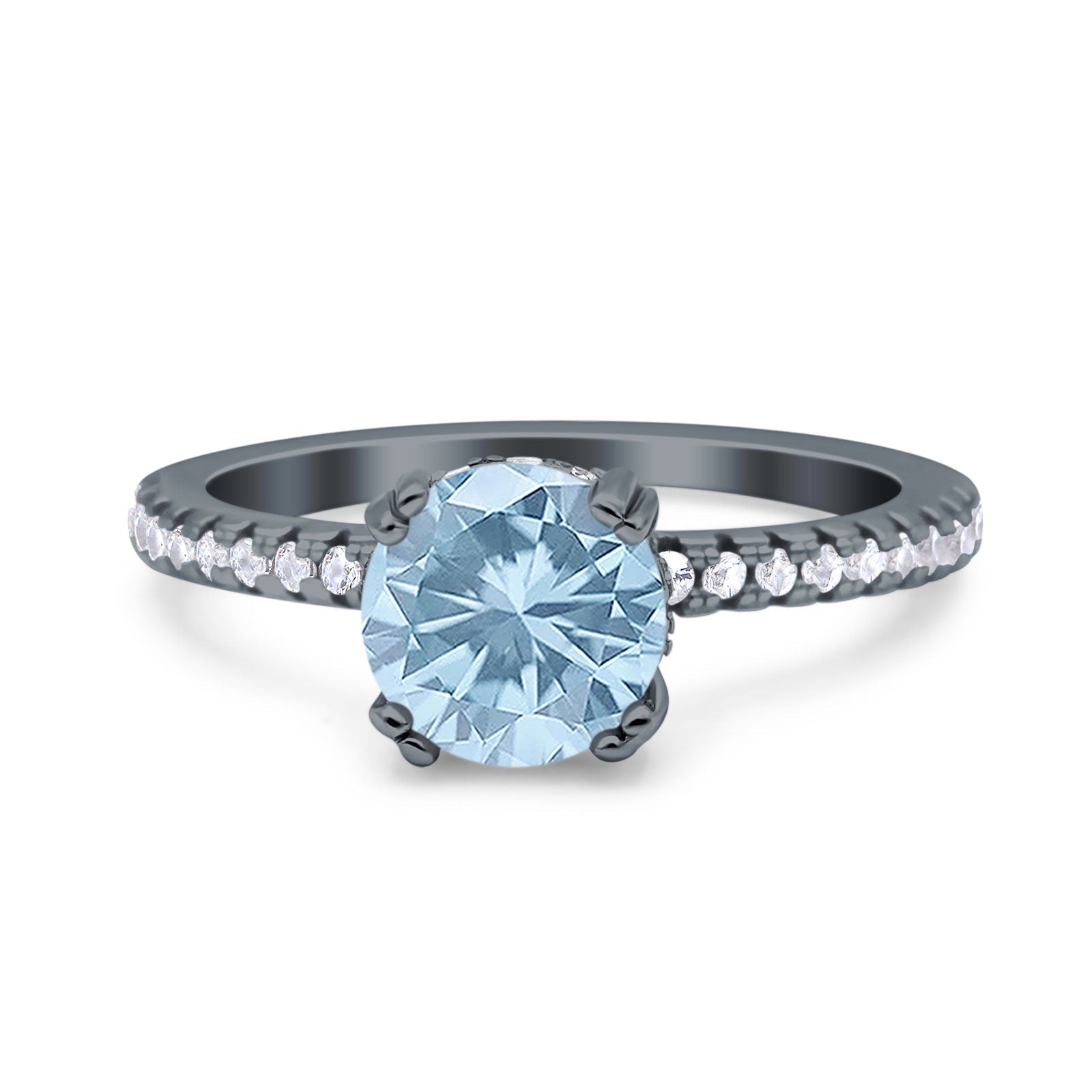 Art Deco Round Natural Aquamarine Wedding Ring 925 Sterling Silver